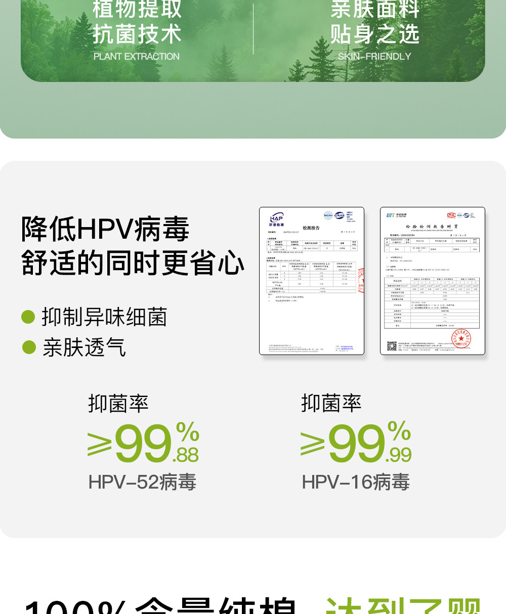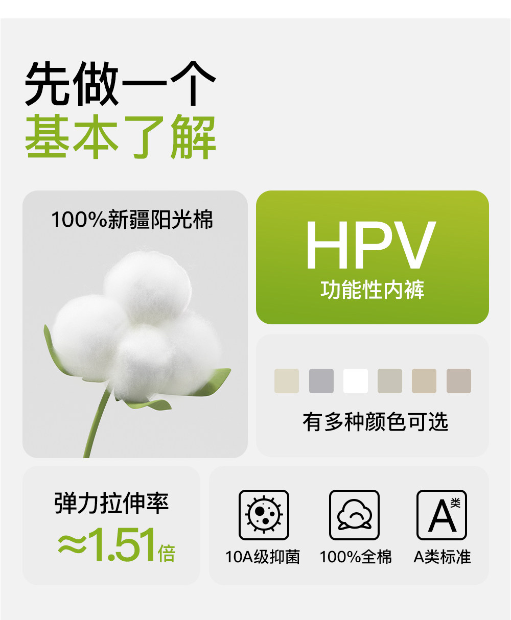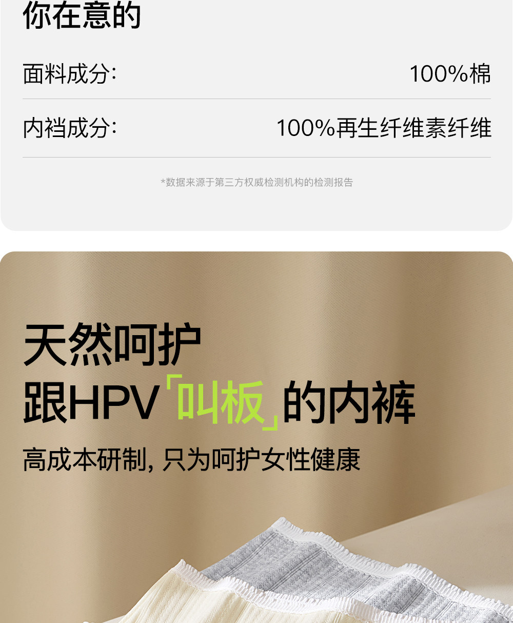 可降低HPV內褲女純棉10A抑菌加長襠中腰透氣100%全棉女士三角褲