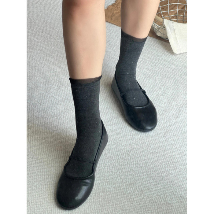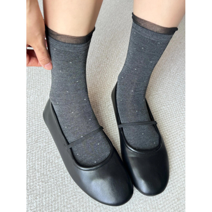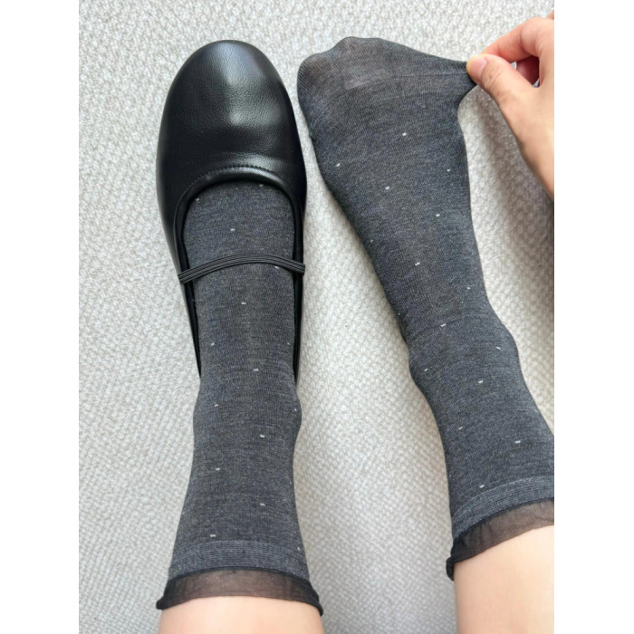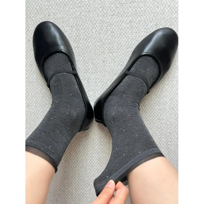 夏日千金感!復古深灰波點襪滿滿的高級感~薄款襪子女堆堆灰色