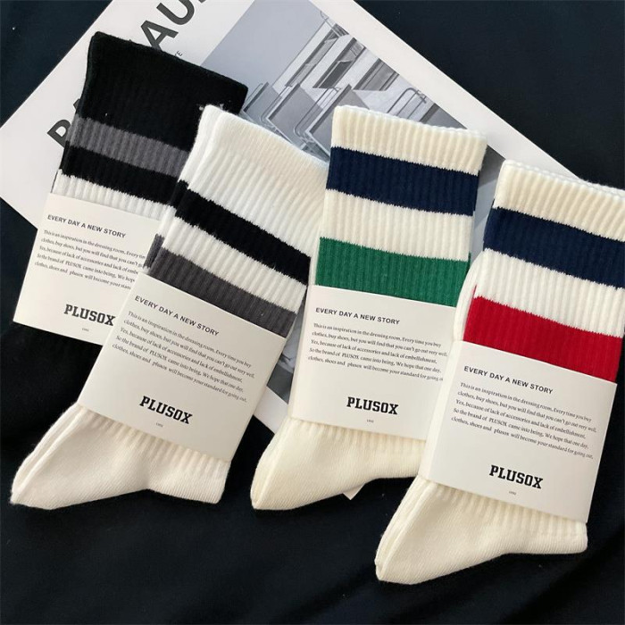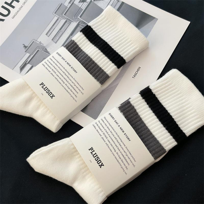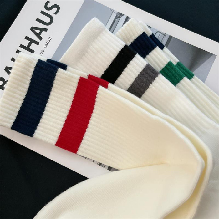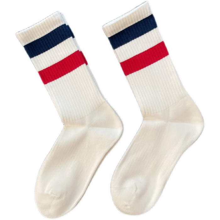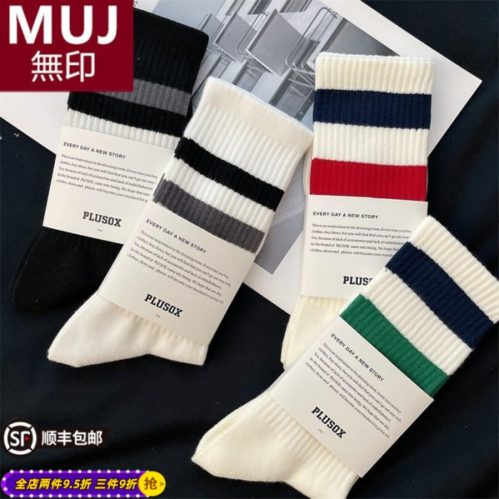 日本MUl純棉男女中長筒襪潮牌撞色條紋長襪男足球運動襪抗菌防臭