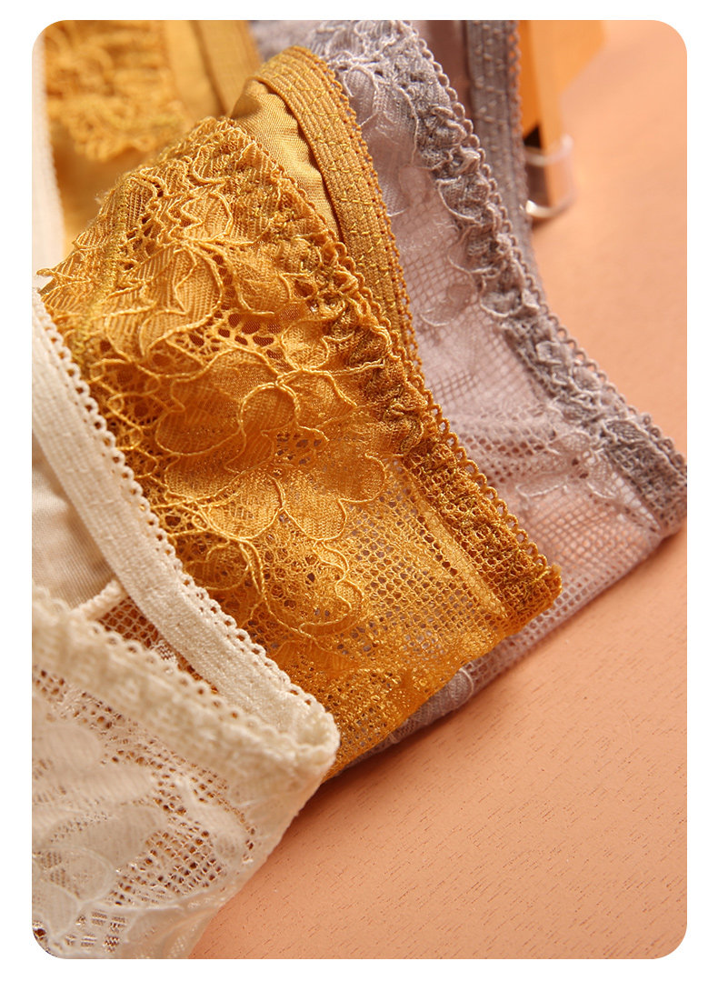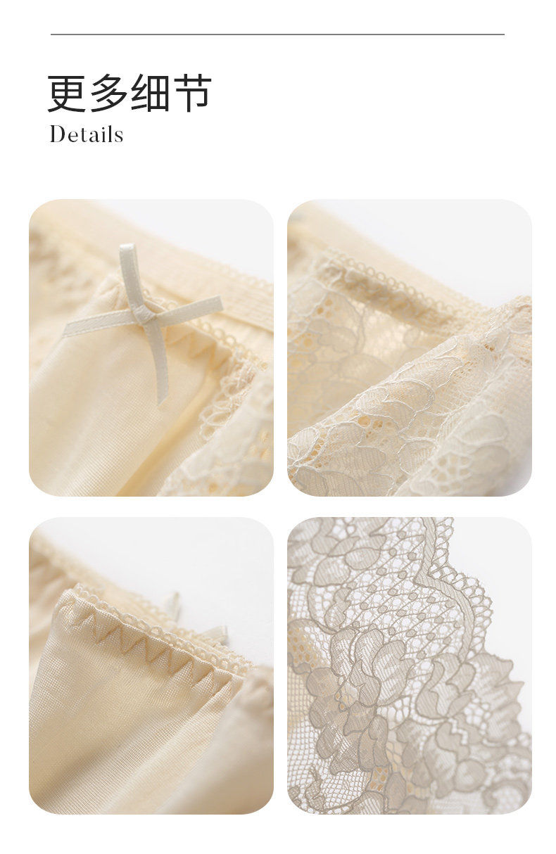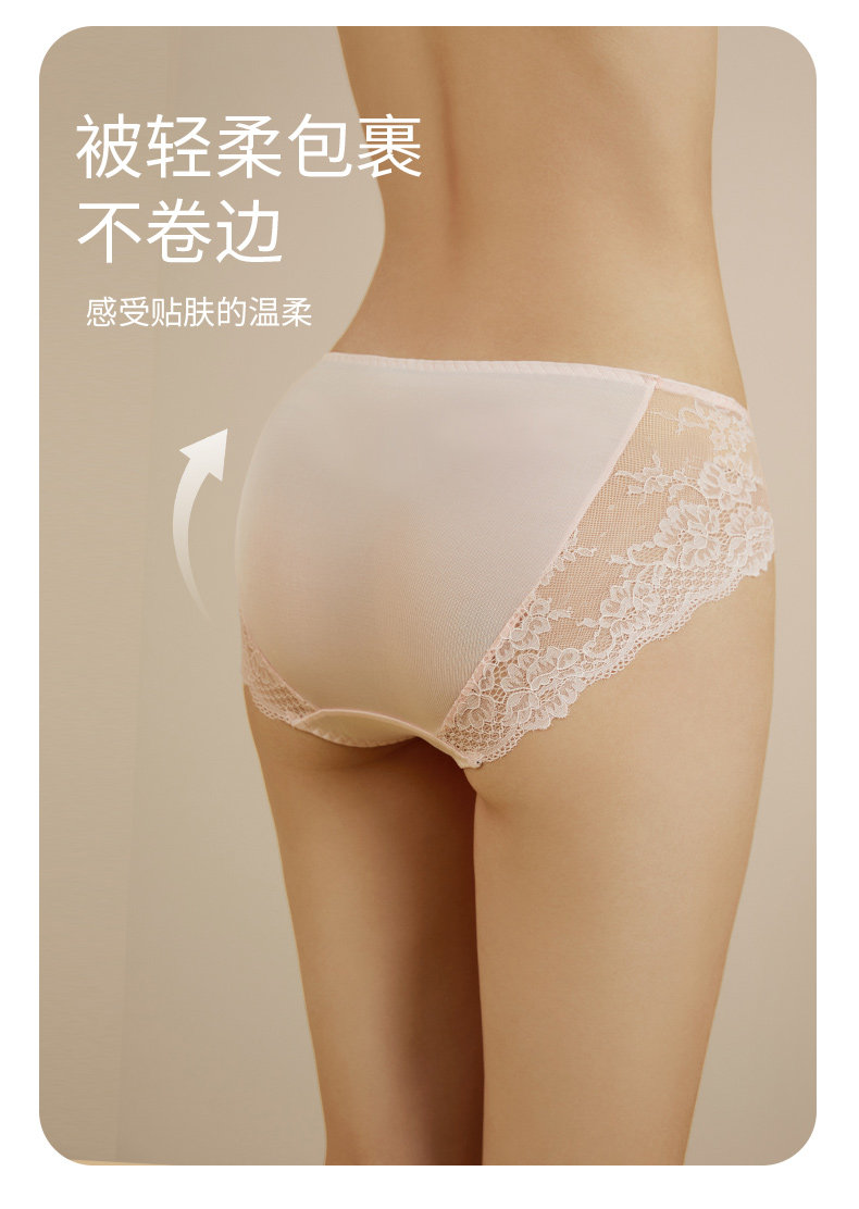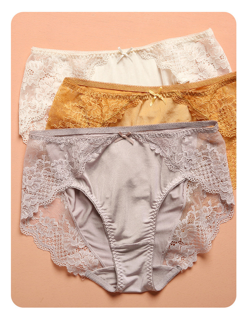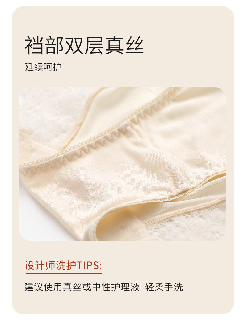 金三塔真絲中腰內褲 舒適透氣蠶絲拼蕾絲三角褲100%桑蠶絲內衣女