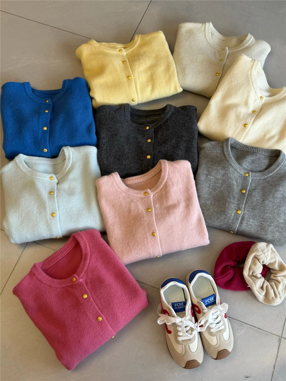 2025春秋新款純色百搭針織小開衫外套女簡約氣質短款上衣