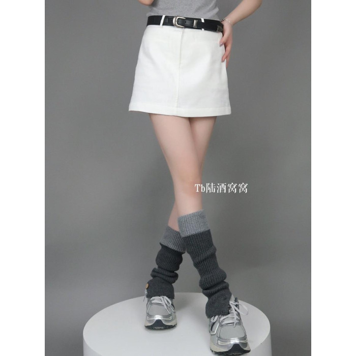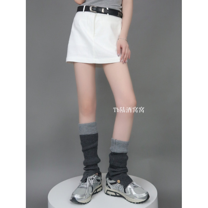 陸甜茶 針織撞色腿套美式辣妹百搭顯瘦高級感秋冬中筒堆堆襪