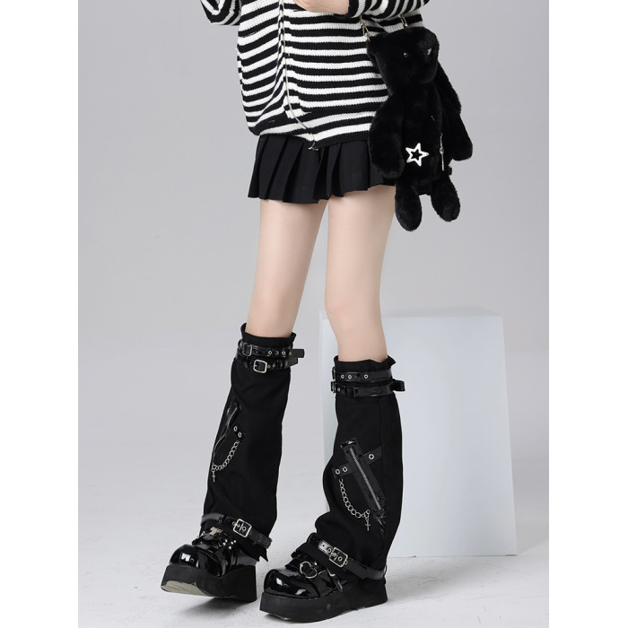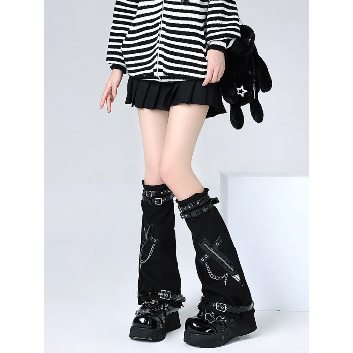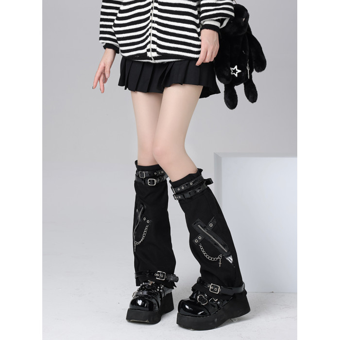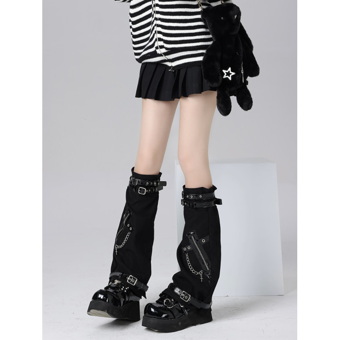y2k十字架鏈條皮釦腿套女辣妹個性暗黑龐克皮帶堆堆襪套jk亞文化