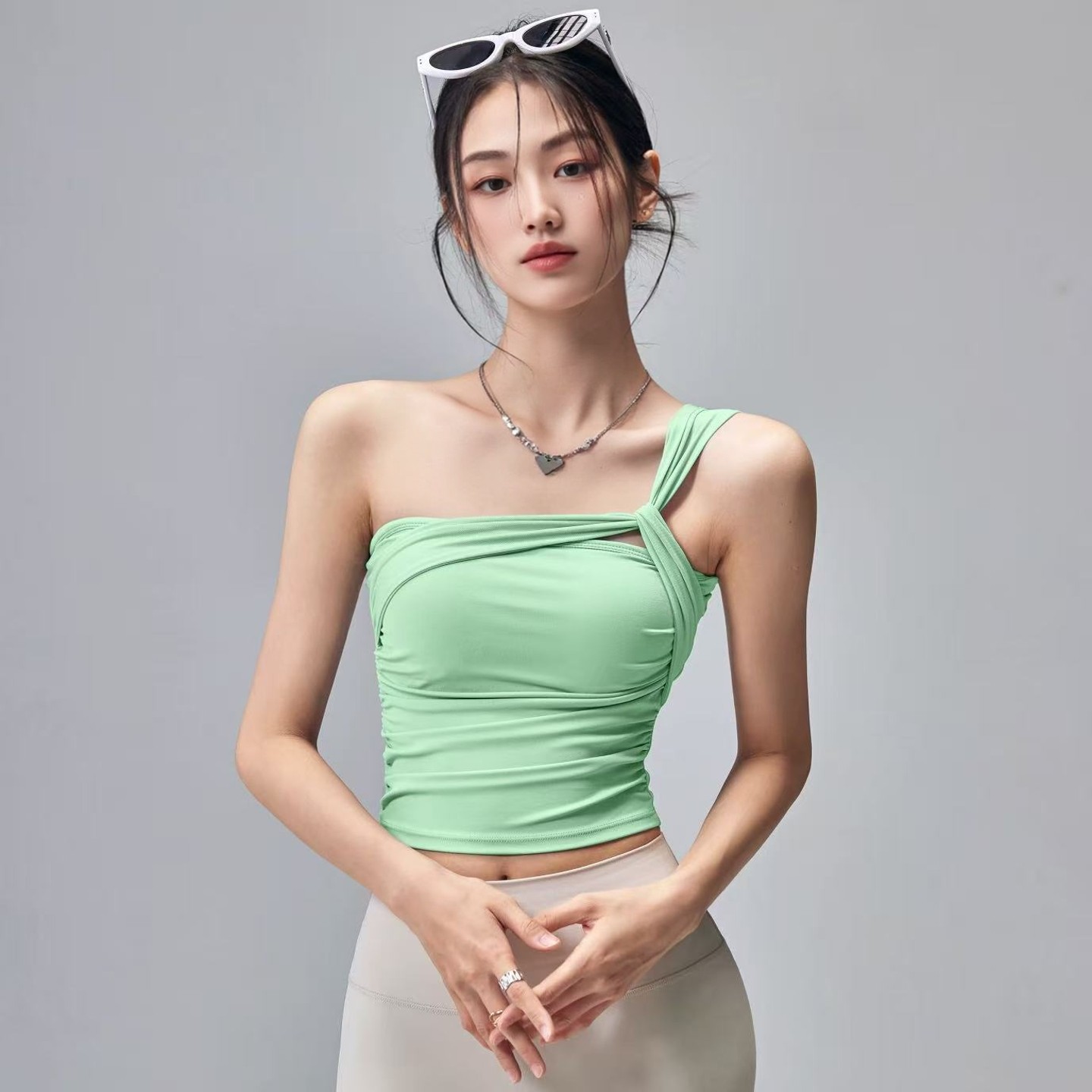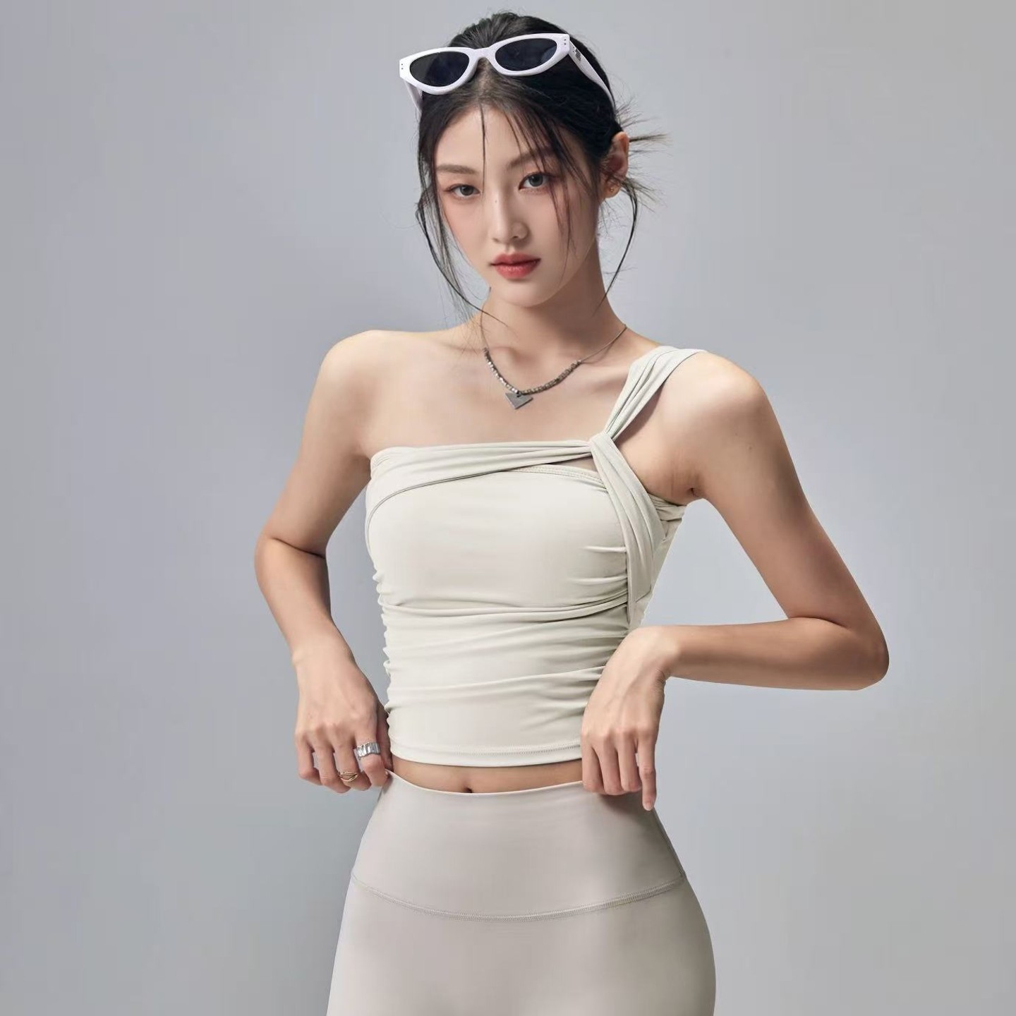 悠美YOGA運動內衣一體式防震單肩瑜珈背心外穿美背普拉提訓練文胸