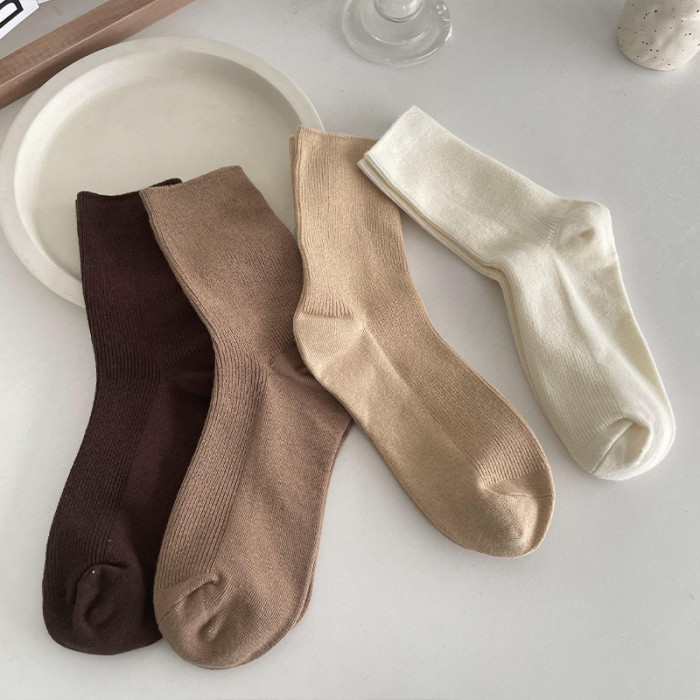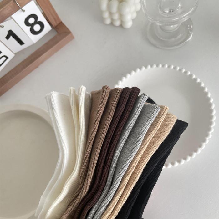白色堆堆襪女夏季薄款襪子女中筒襪純棉純色搭配小皮鞋韓版長筒襪