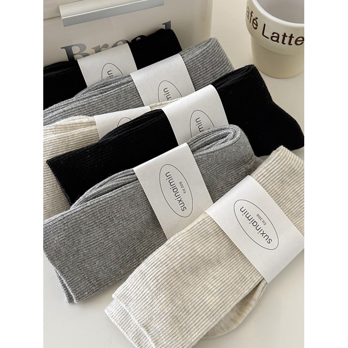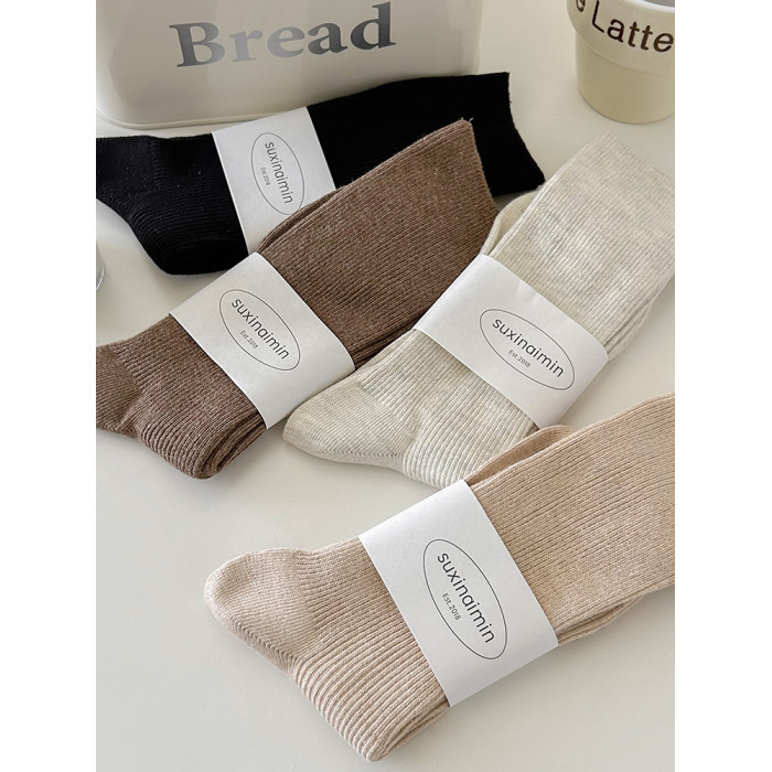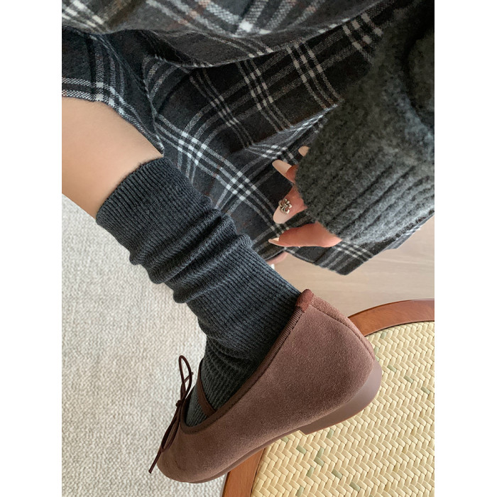 堆堆襪子女中筒襪春秋款純色日系ins韓版竪紋顯瘦咖色秋冬中長筒