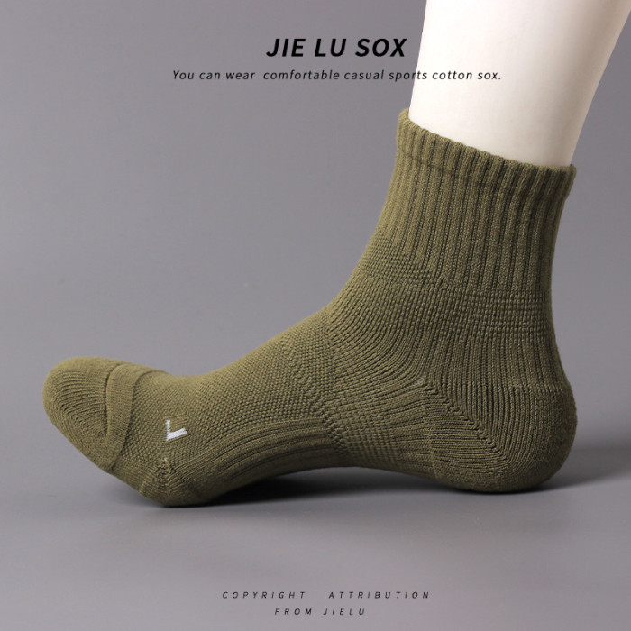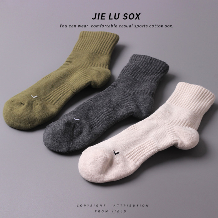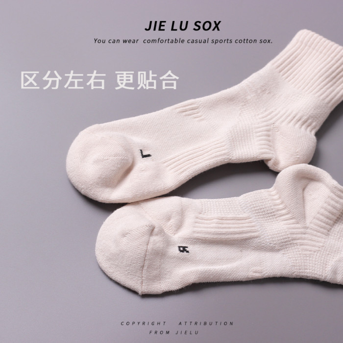 春秋男士運動頭跟毛圈跑步健身襪子羽毛球中筒棉襪分左右腳純棉