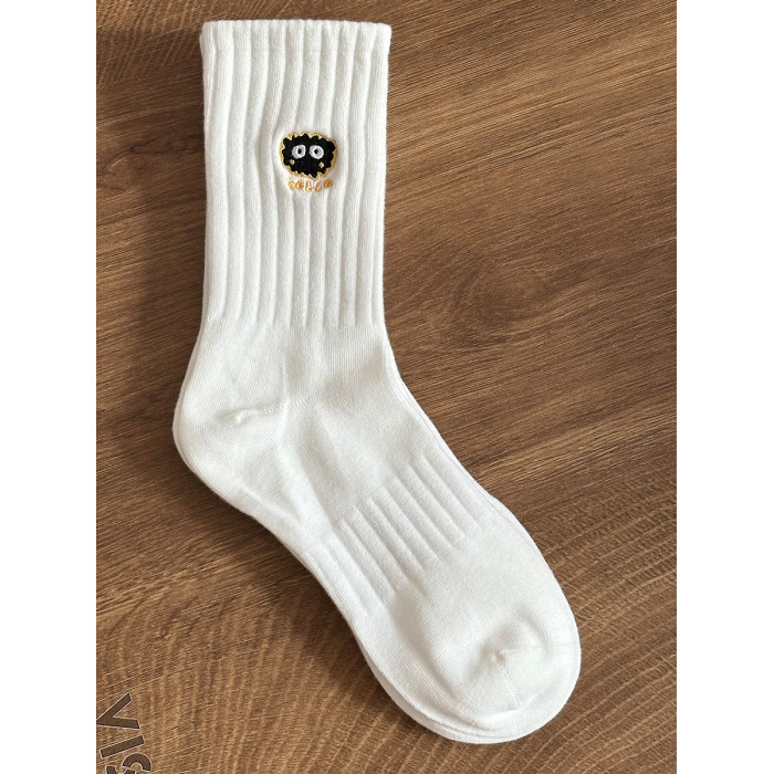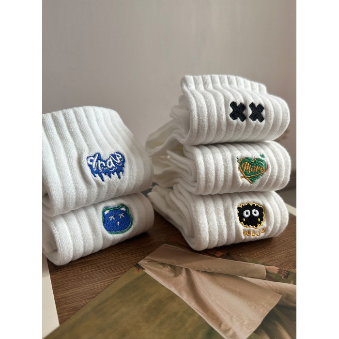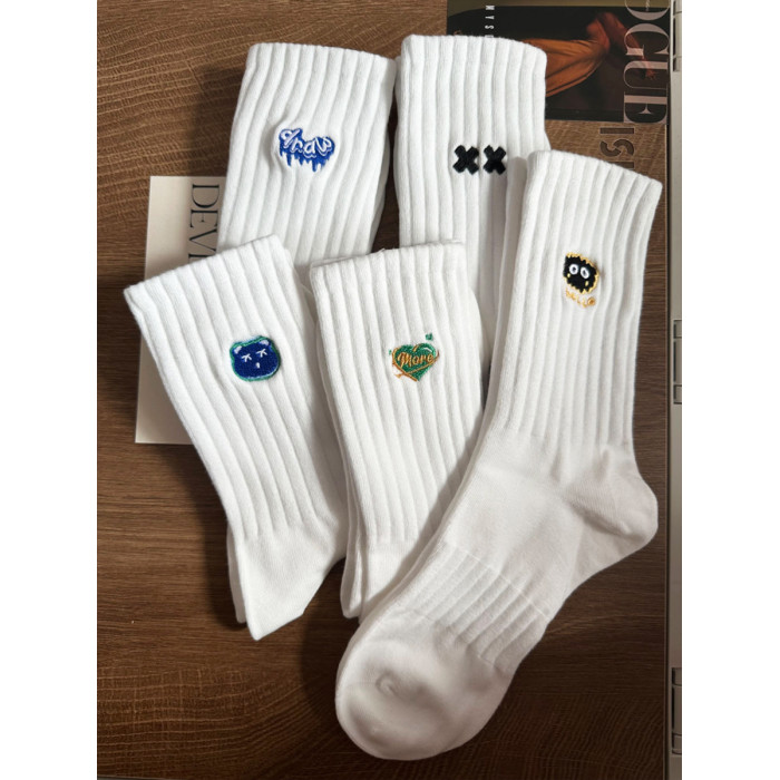 襪子男 春秋長襪純棉無骨刺綉中筒襪ins潮吸汗防臭白色運動長筒襪