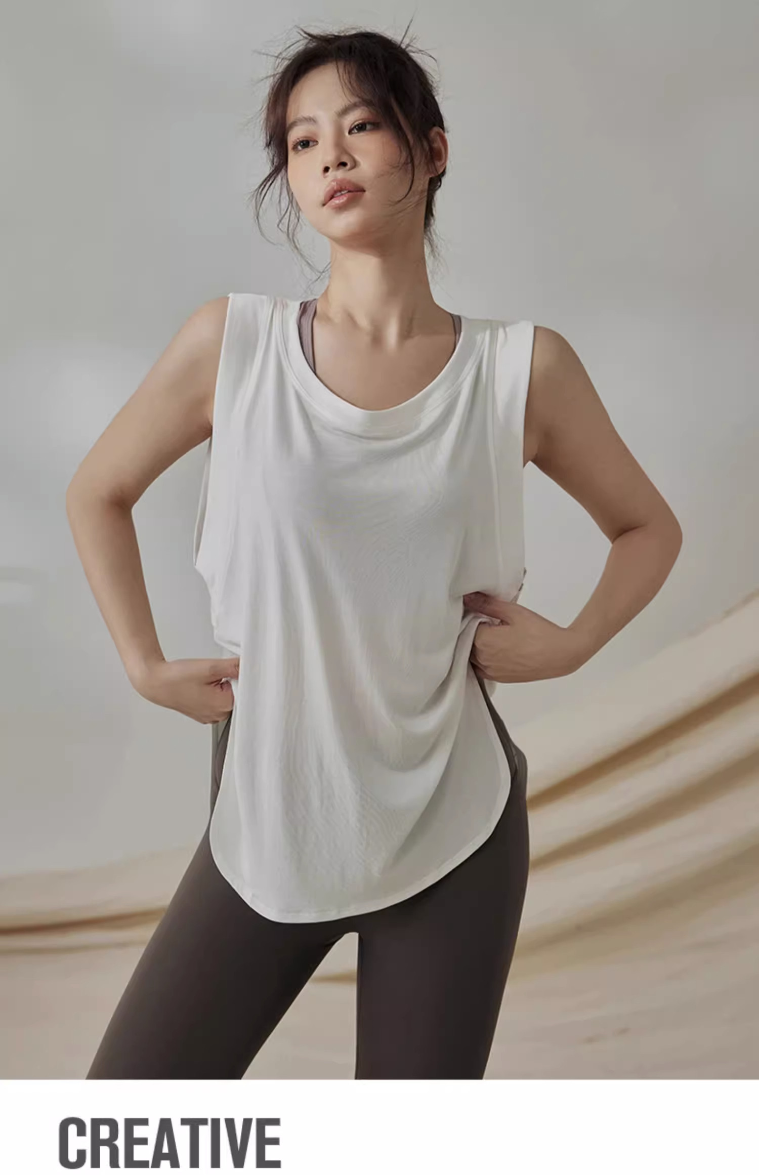 無袖跑步長款遮臀瑜珈T恤戶外寬松運動背心女顯瘦透氣健身訓練上
