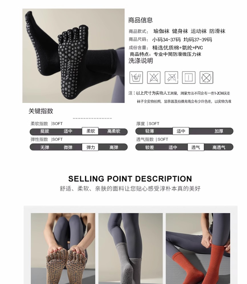 兩雙瑜珈中筒襪子WKUW高級健身運動防滑襪五指分趾跳繩跳操專用襪