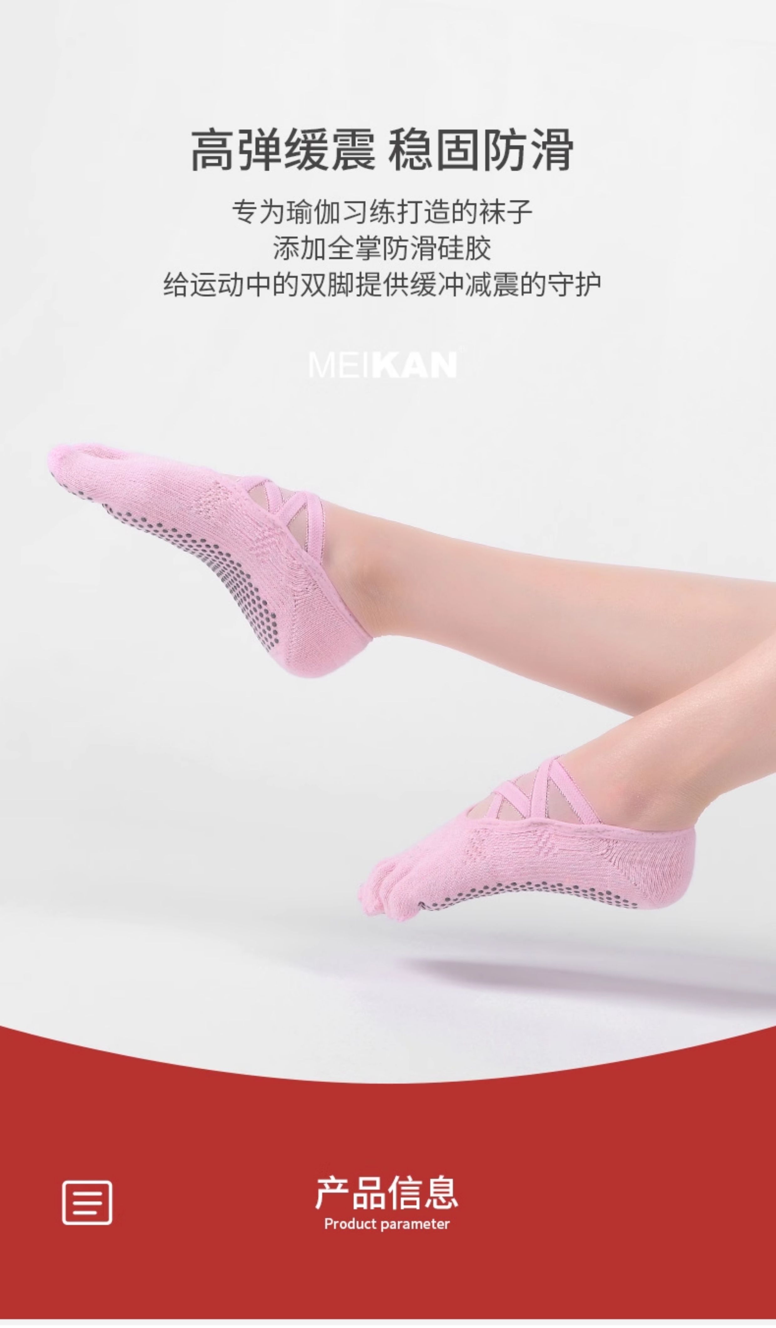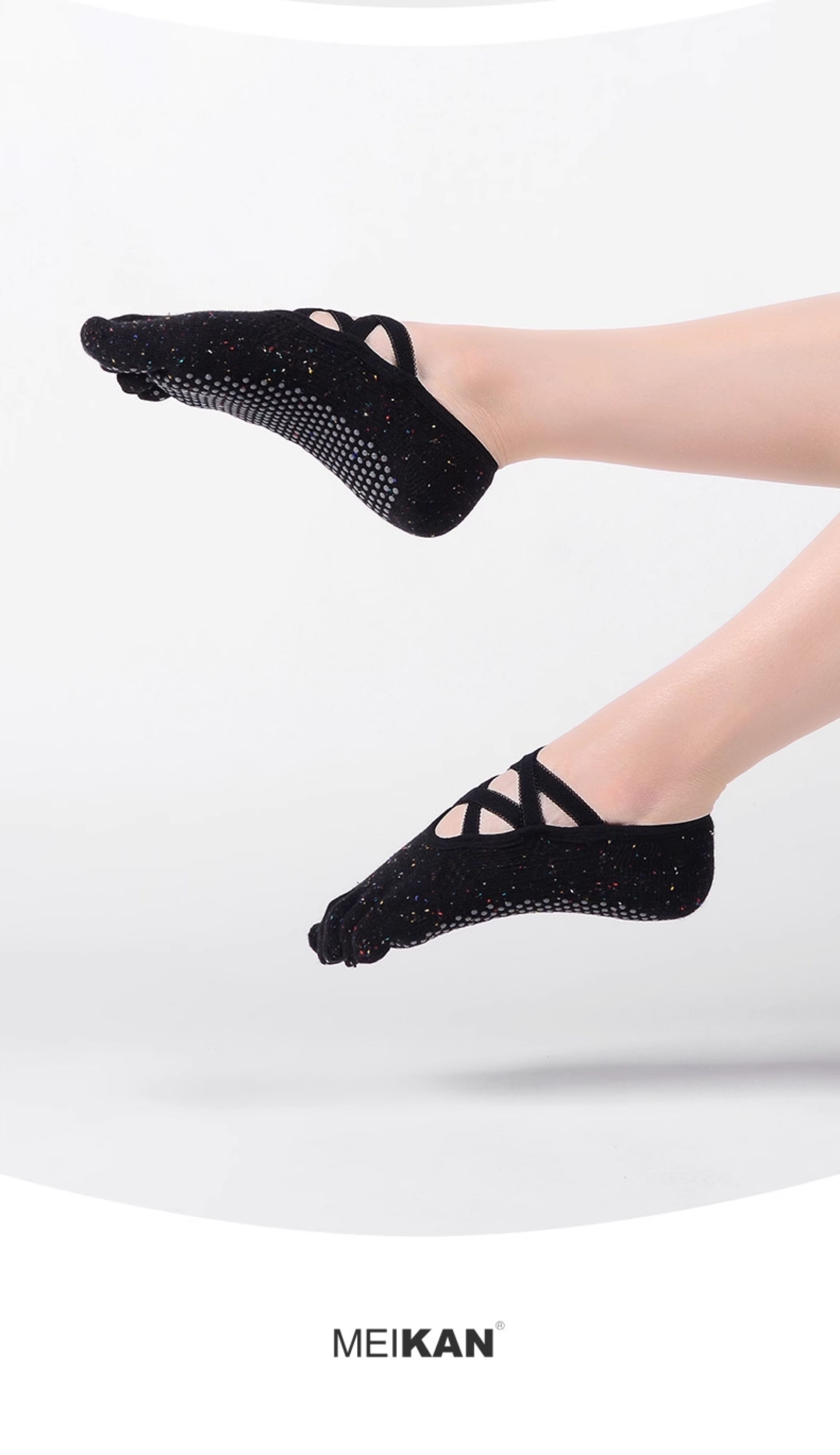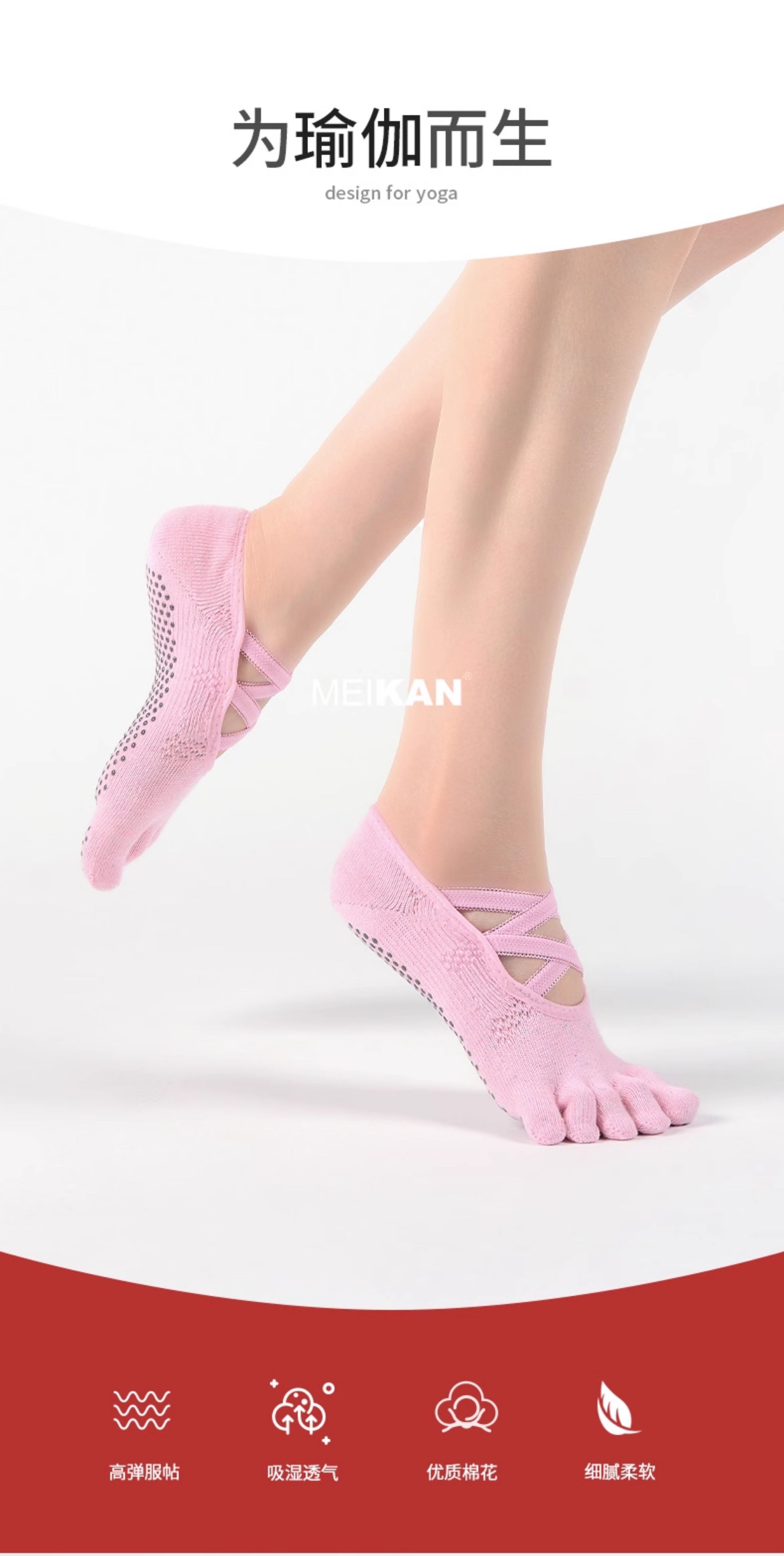 MEIKAN美看瑜珈襪子五指襪棉綁帶防滑襪地板襪專業普拉提襪分趾襪