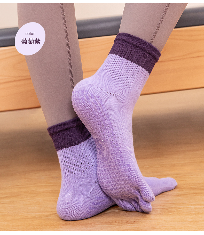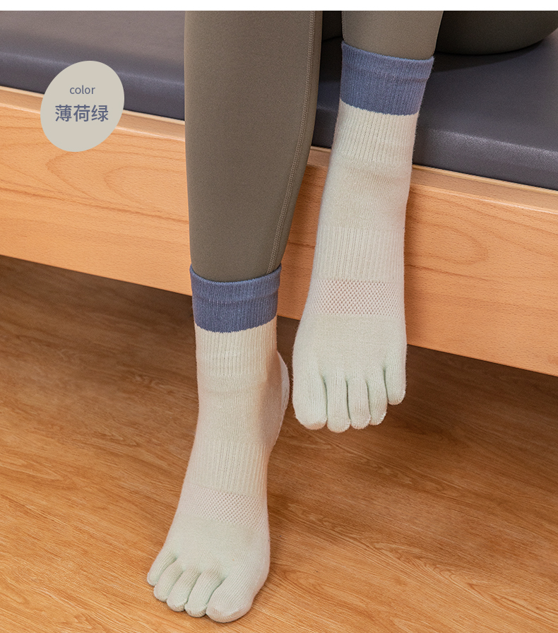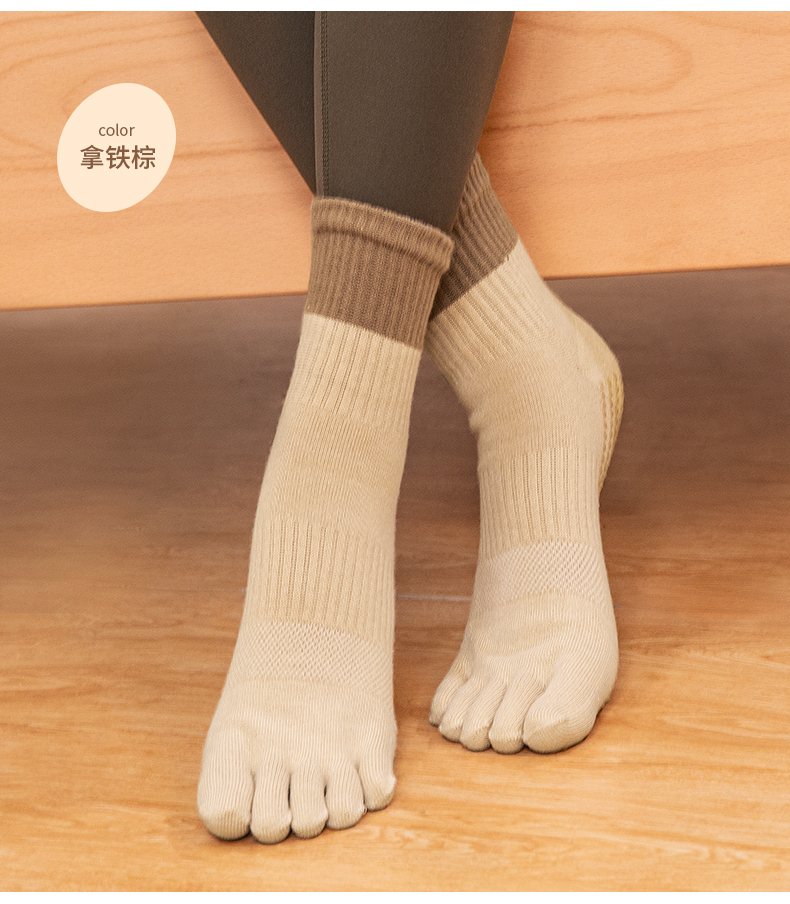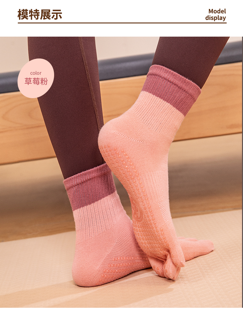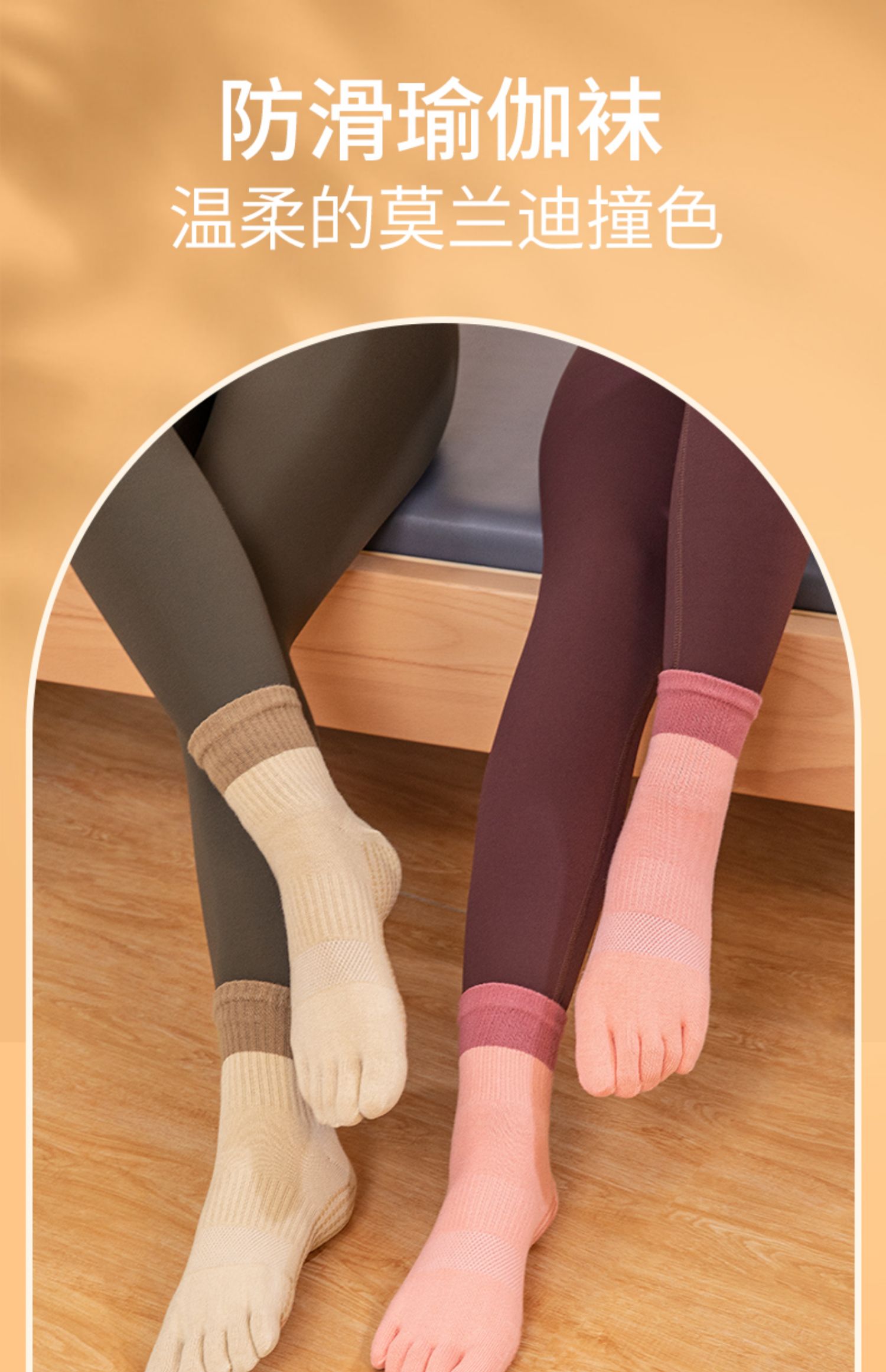 美愫撞色瑜珈襪子中筒普拉提精梳棉室內運動防滑五指襪瑜珈長襪女