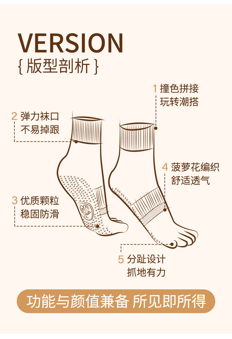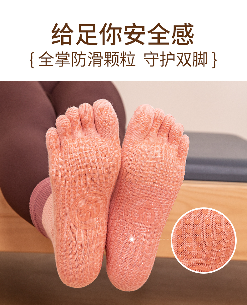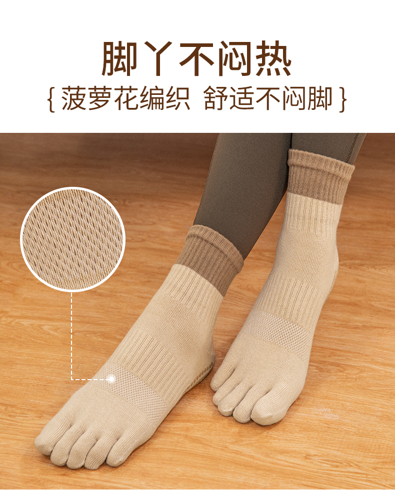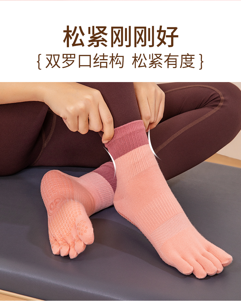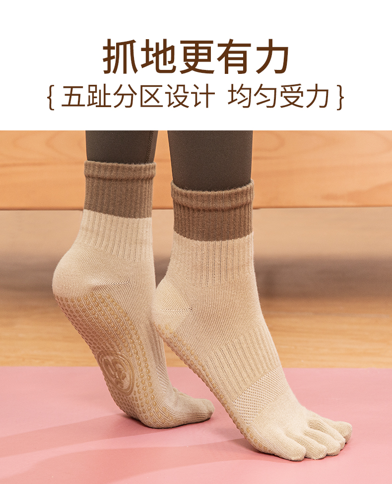 美愫撞色瑜珈襪子中筒普拉提精梳棉室內運動防滑五指襪瑜珈長襪女