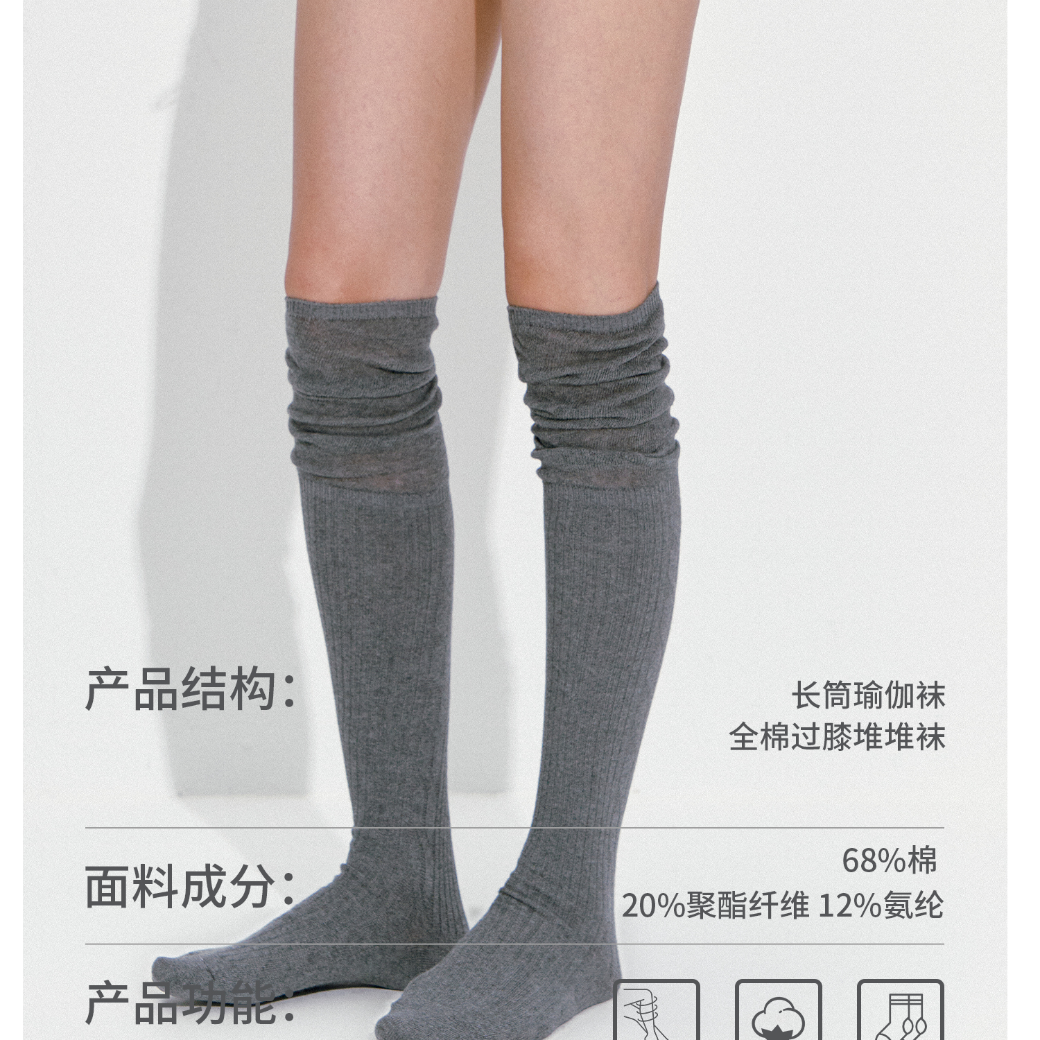 miu系過膝襪堆堆襪女瑜珈普拉提專業訓練灰色運動健身長筒襪秋季