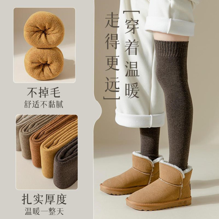護膝襪套女過膝加厚毛圈外穿長筒襪高彈力保暖護膝襪套春秋加絨