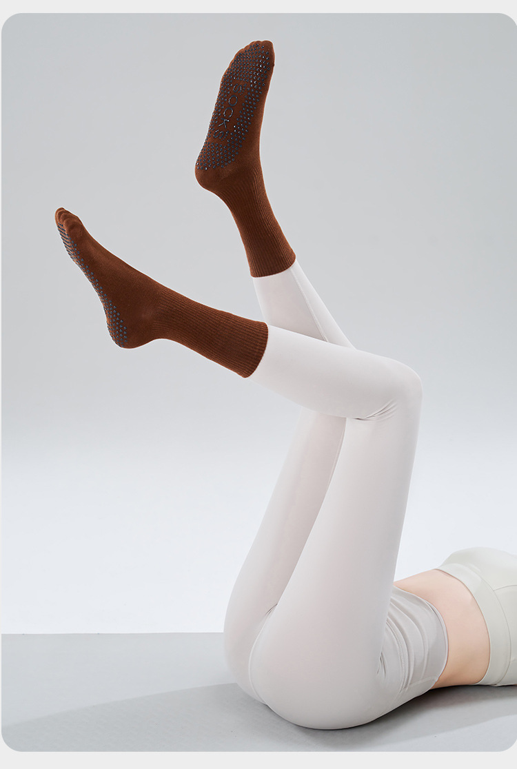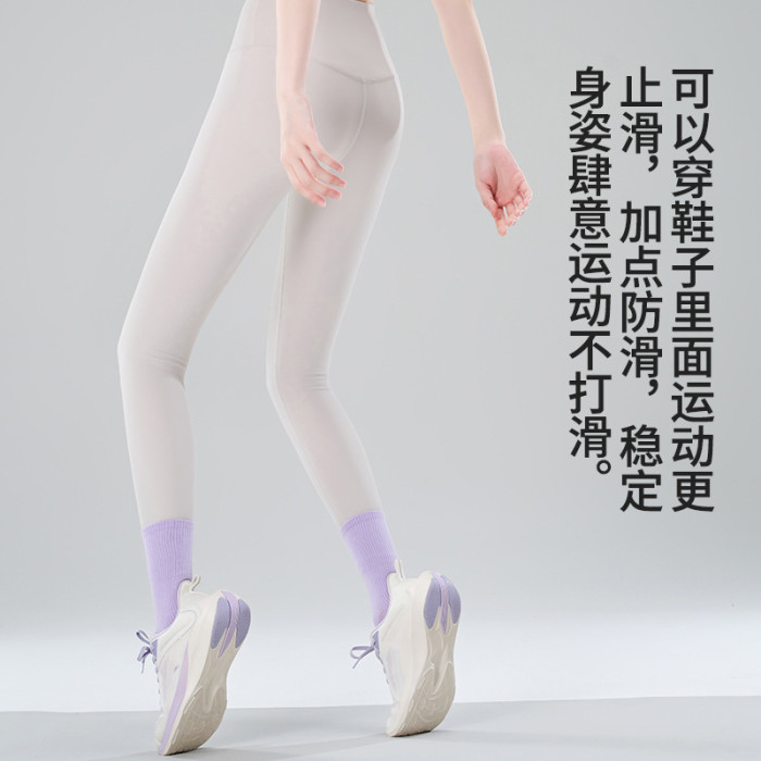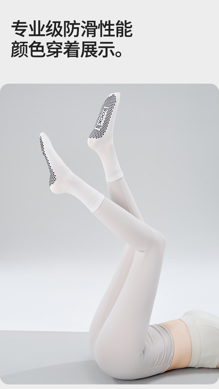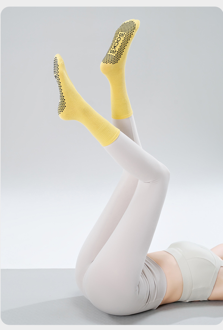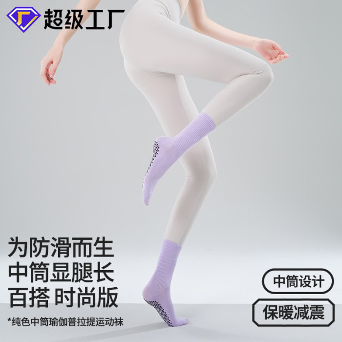 中筒秋冬瑜珈襪子女室內專業健身透氣地板襪純色棉普拉提襪子