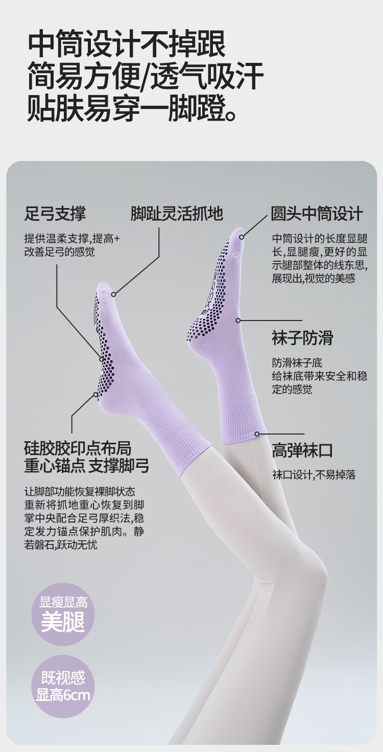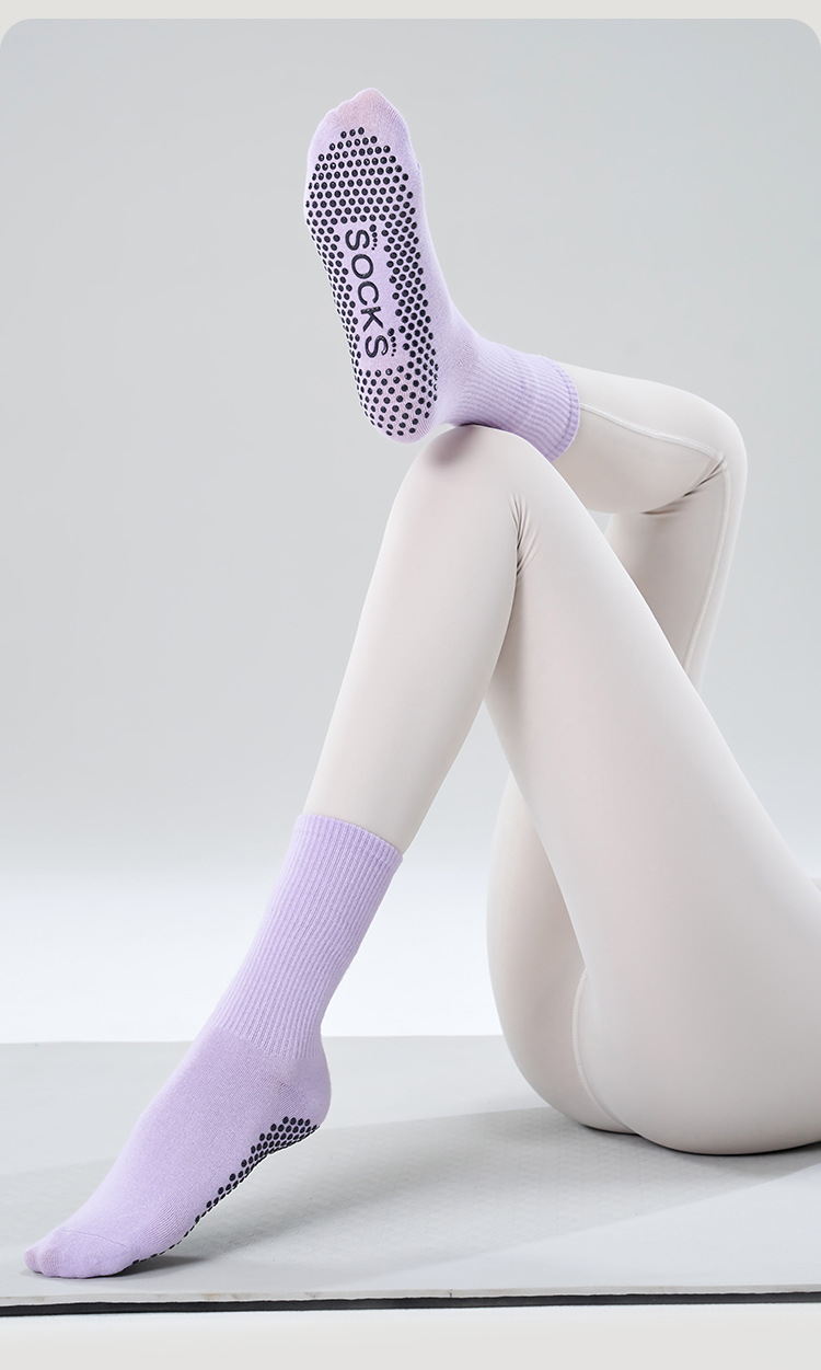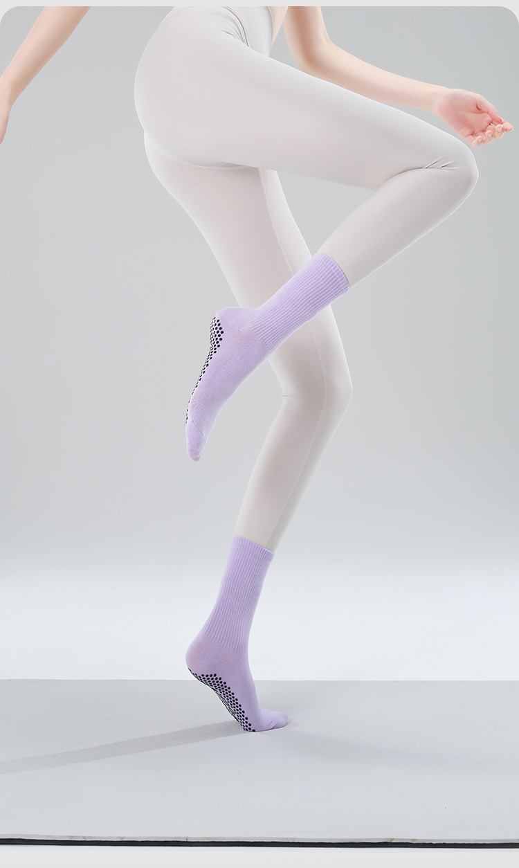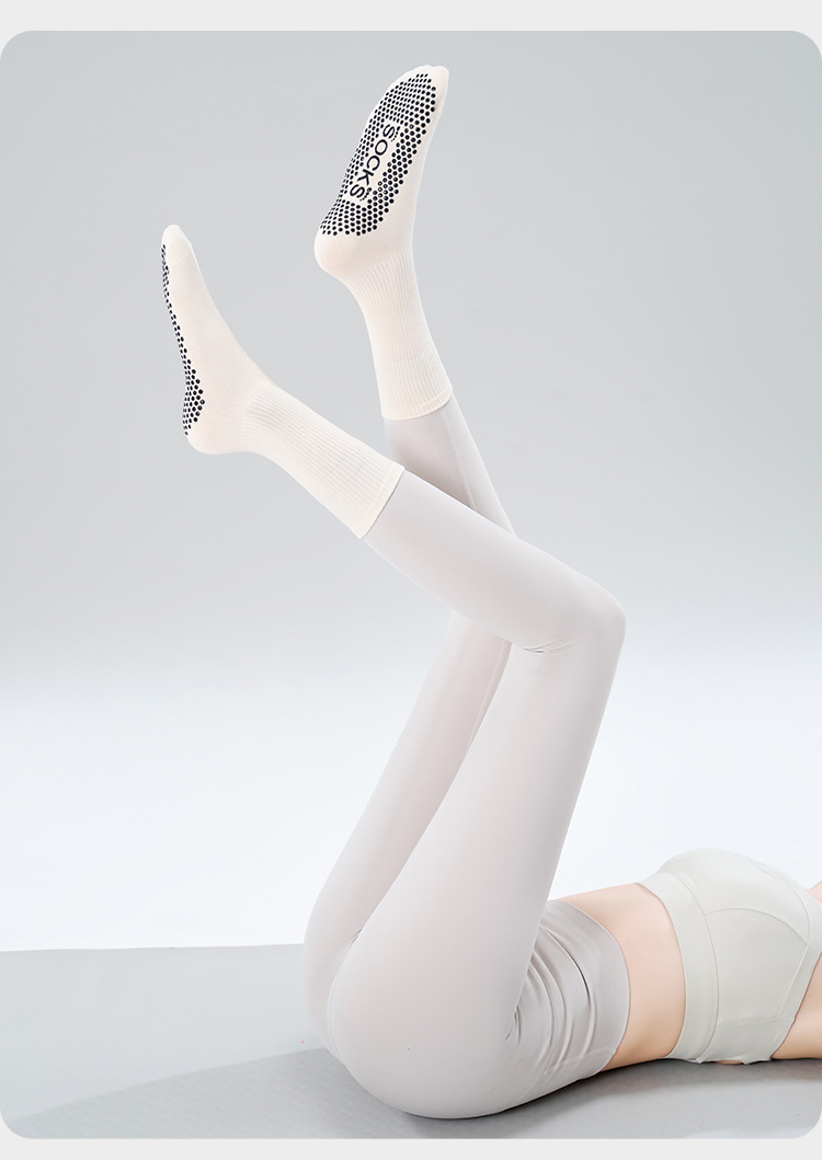 中筒秋冬瑜珈襪子女室內專業健身透氣地板襪純色棉普拉提襪子