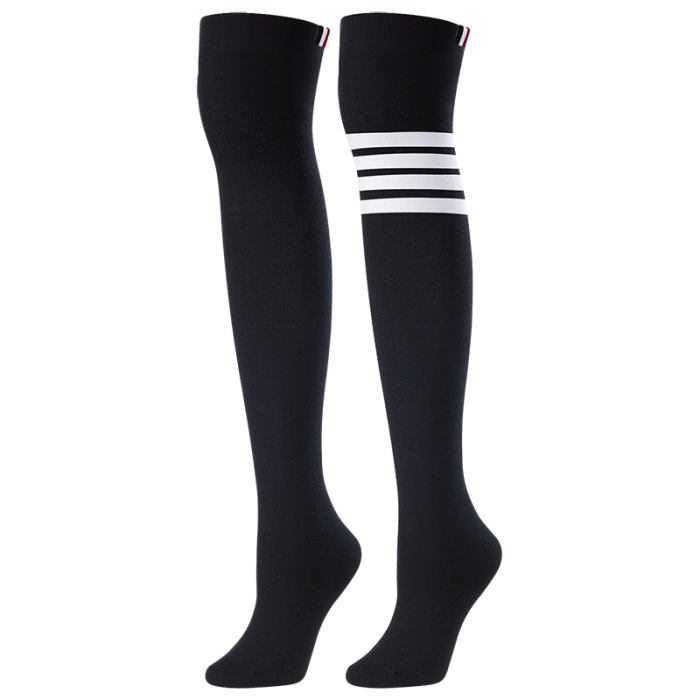 2雙可 高爾夫球襪子女士過膝中筒長襪四條杠百搭長筒運動棉襪