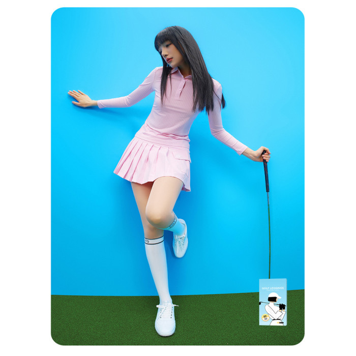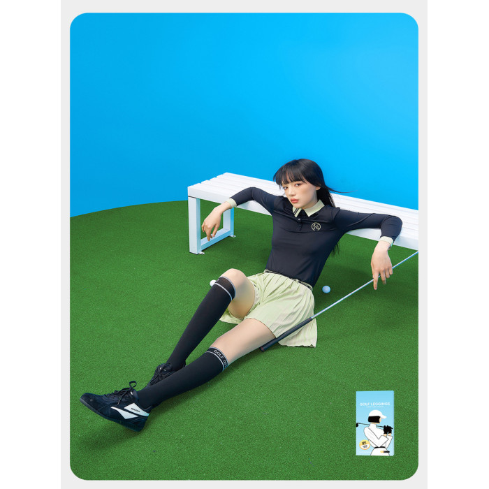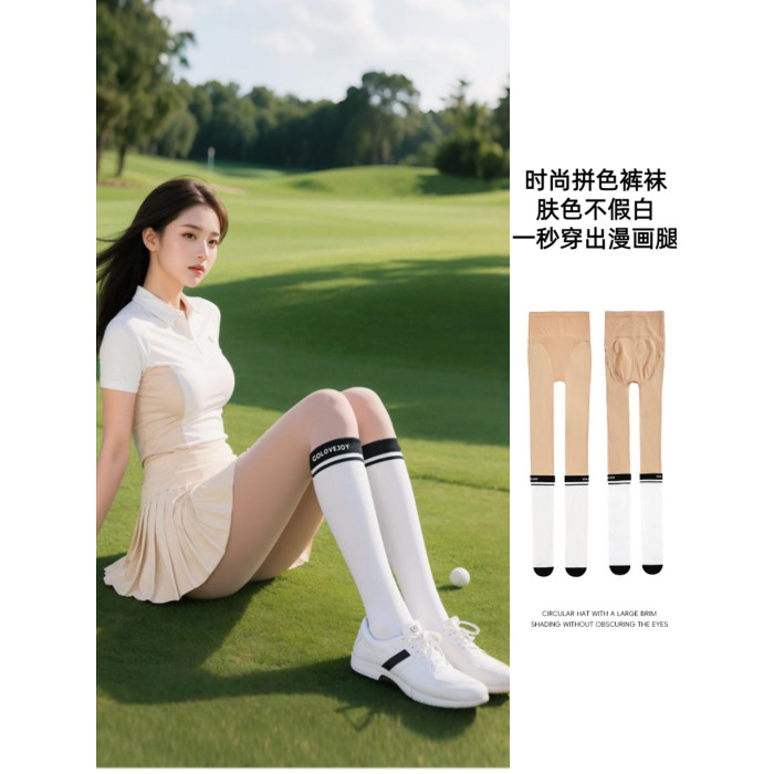 高爾夫絲襪女士連體襪褲防曬拼接白色條紋小腿golf彈力運動女襪子
