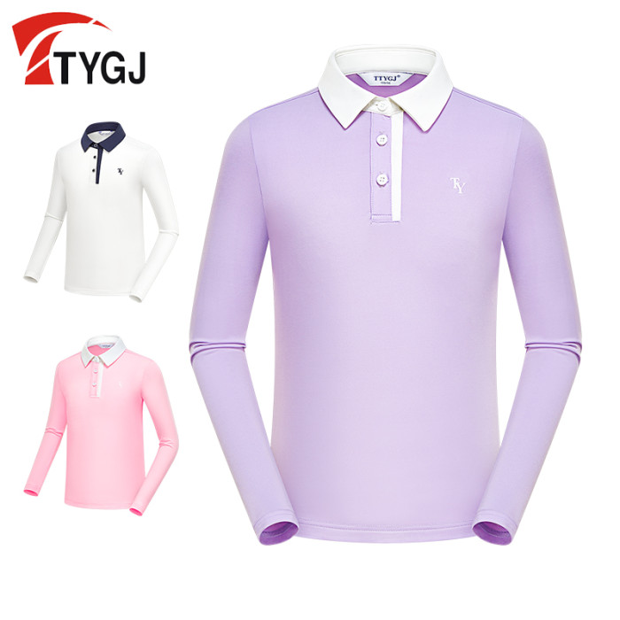 高爾夫兒童服裝春夏男女童長袖柔軟親膚簡約時尚運動休閒上衣服飾