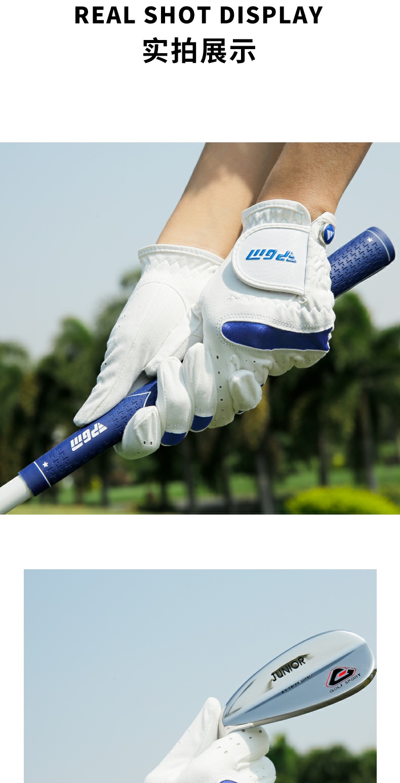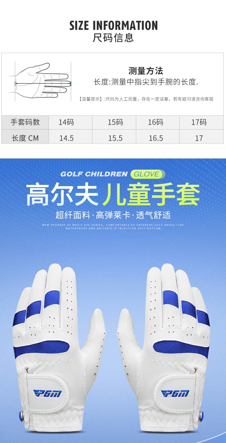 PGM高爾夫手套兒童馬克男童女童耐磨防滑少年雙手超纖布透氣手套