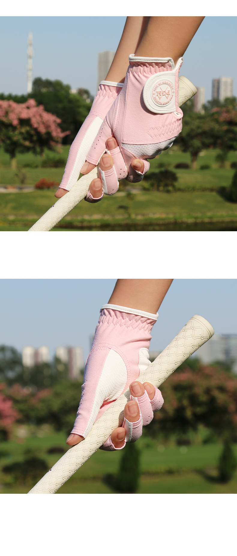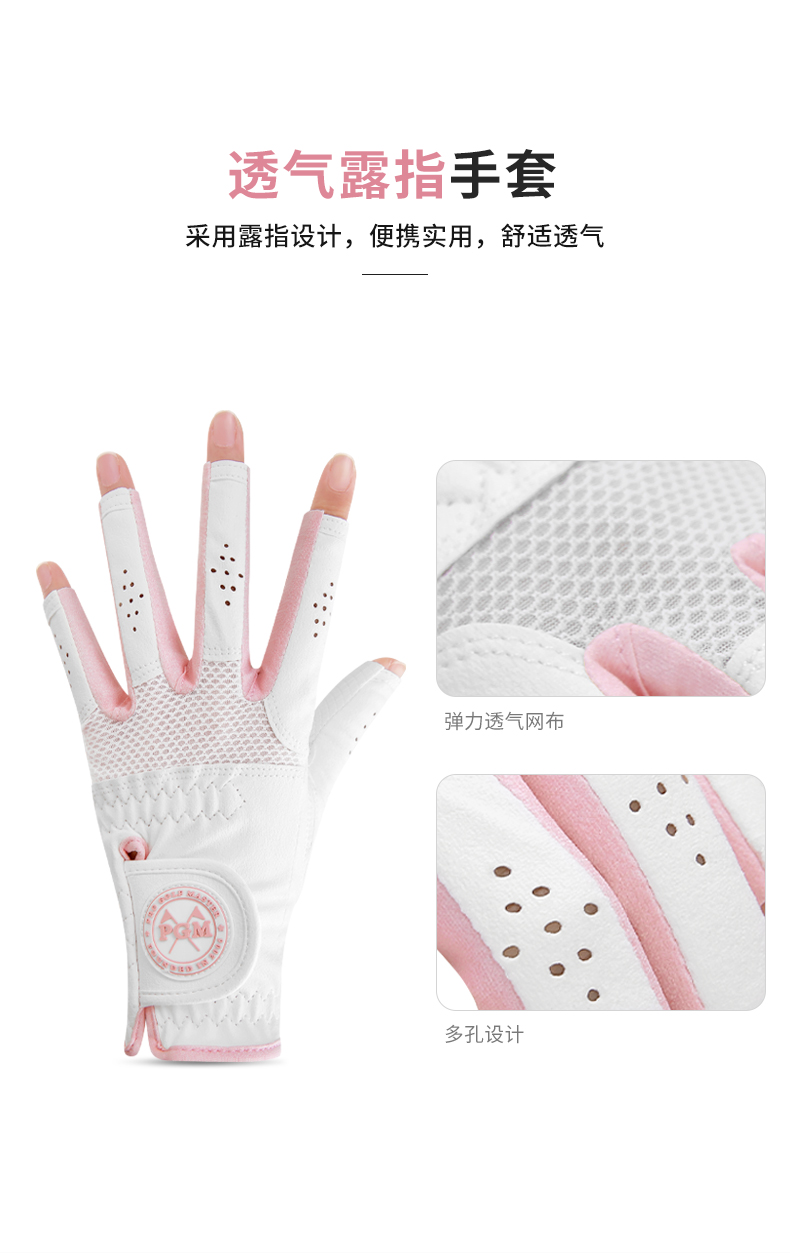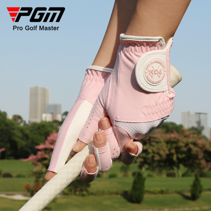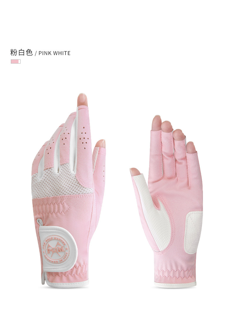 新款PGM高爾夫手套女士粉色透氣露手指半截手套 可觸控螢幕 雙手耐磨