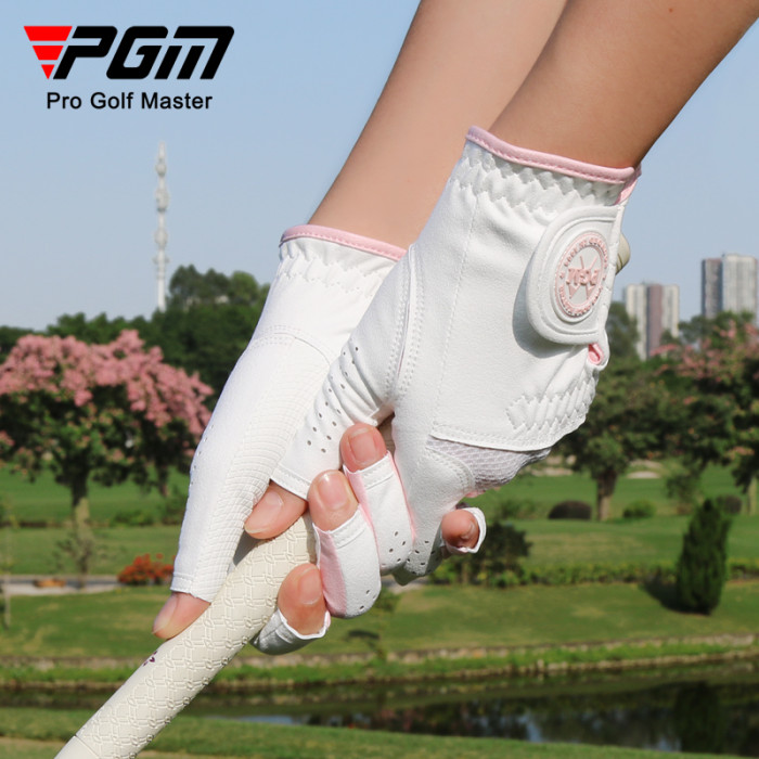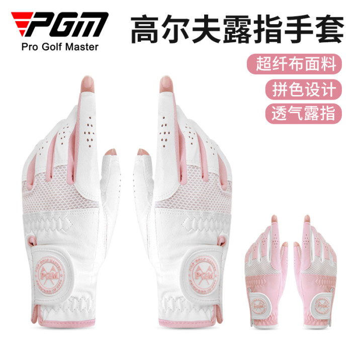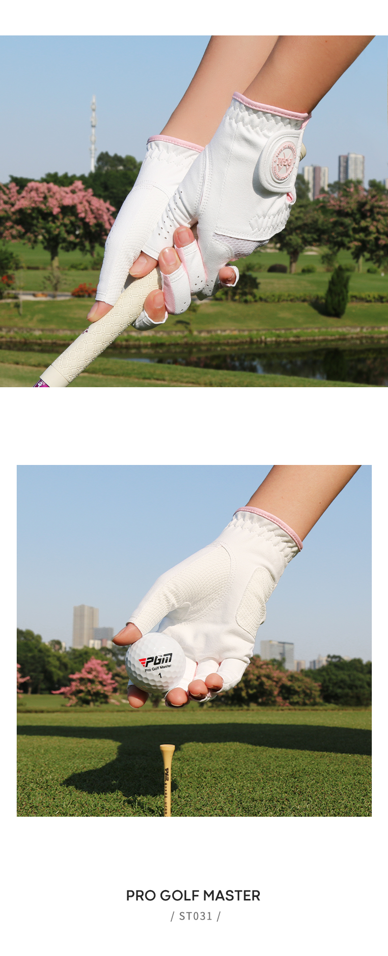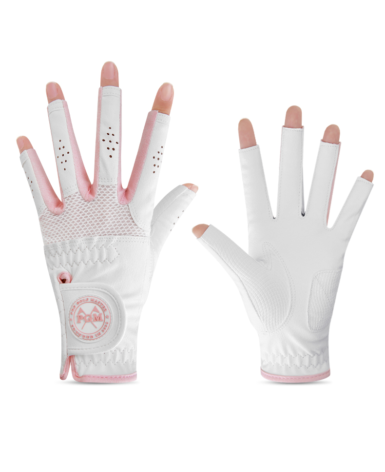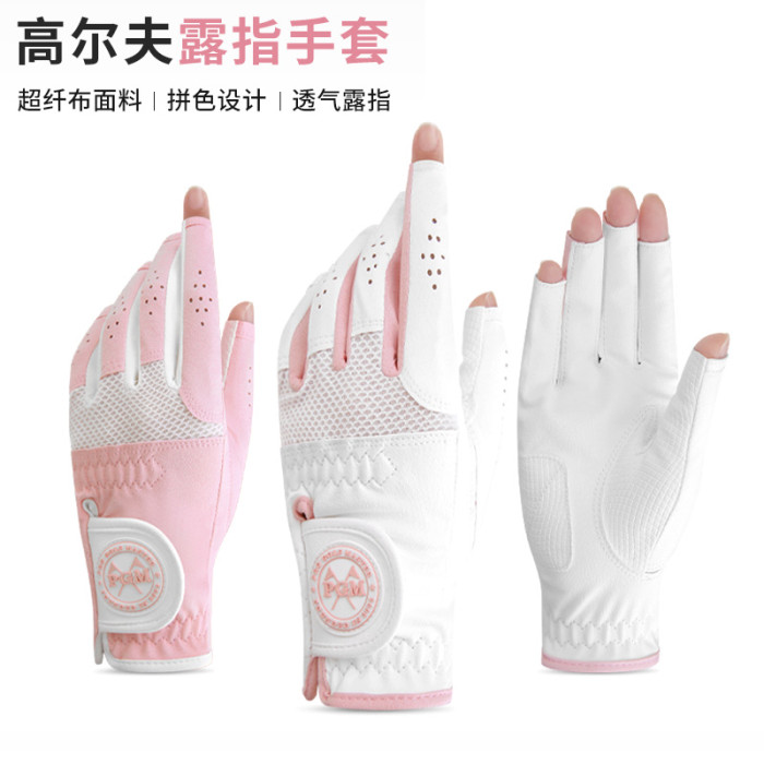 新款PGM高爾夫手套女士粉色透氣露手指半截手套 可觸控螢幕 雙手耐磨