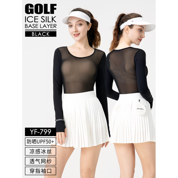 2025高爾夫女裝夏季冰絲防曬衣女士內搭打底衫透氣長袖衣服白上衣