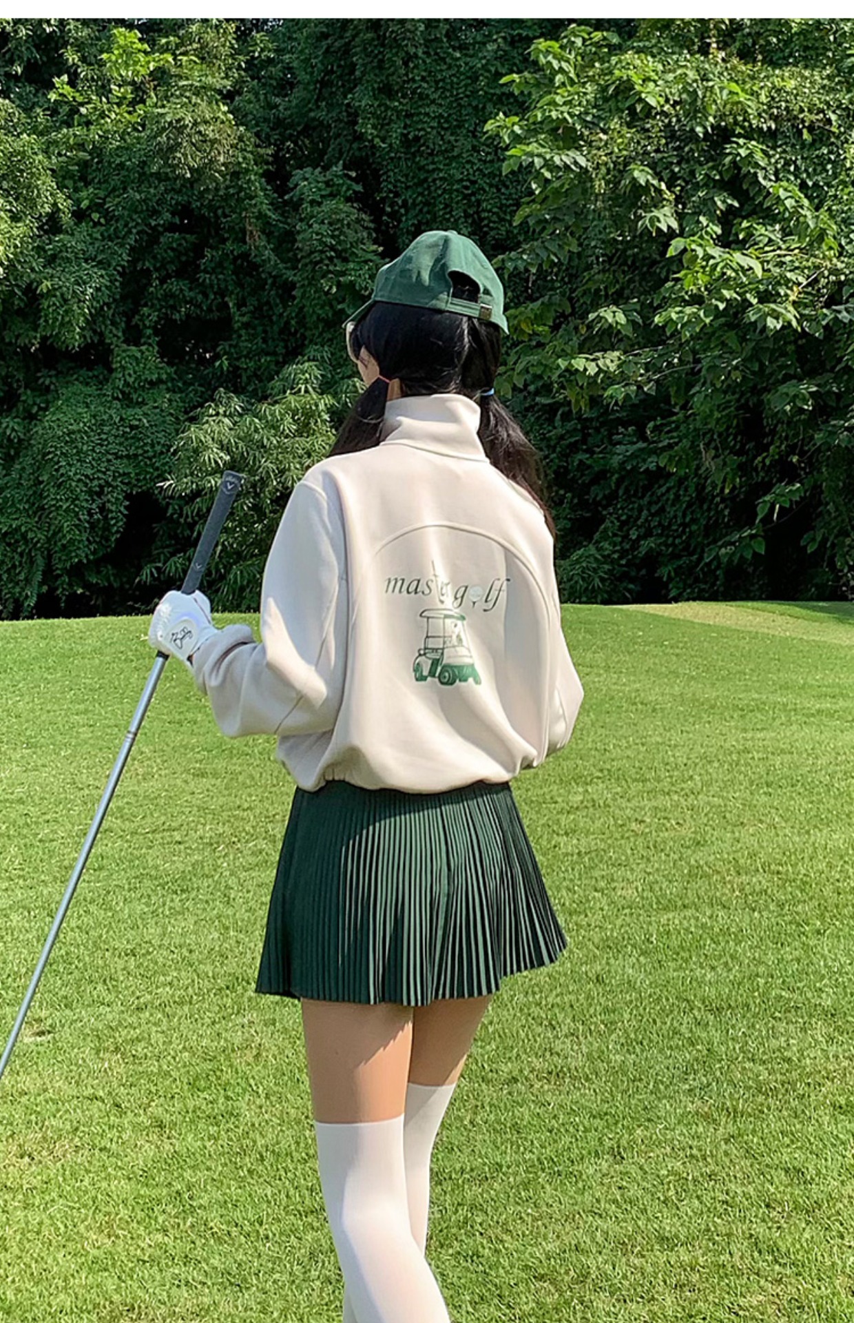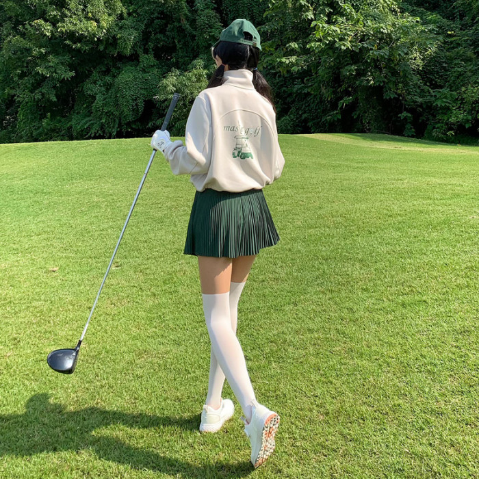 高爾夫春秋新款女網紅高領網球松弛感衛衣套裝韓國運動短裙含底褲