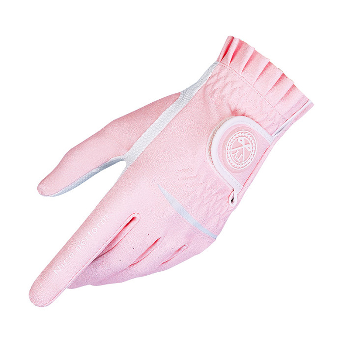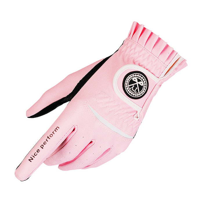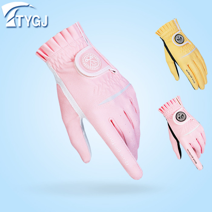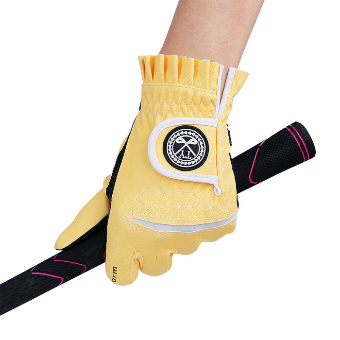 2雙可 高爾夫球女士手套防滑PU皮革耐磨透氣粉黃色左右手1雙