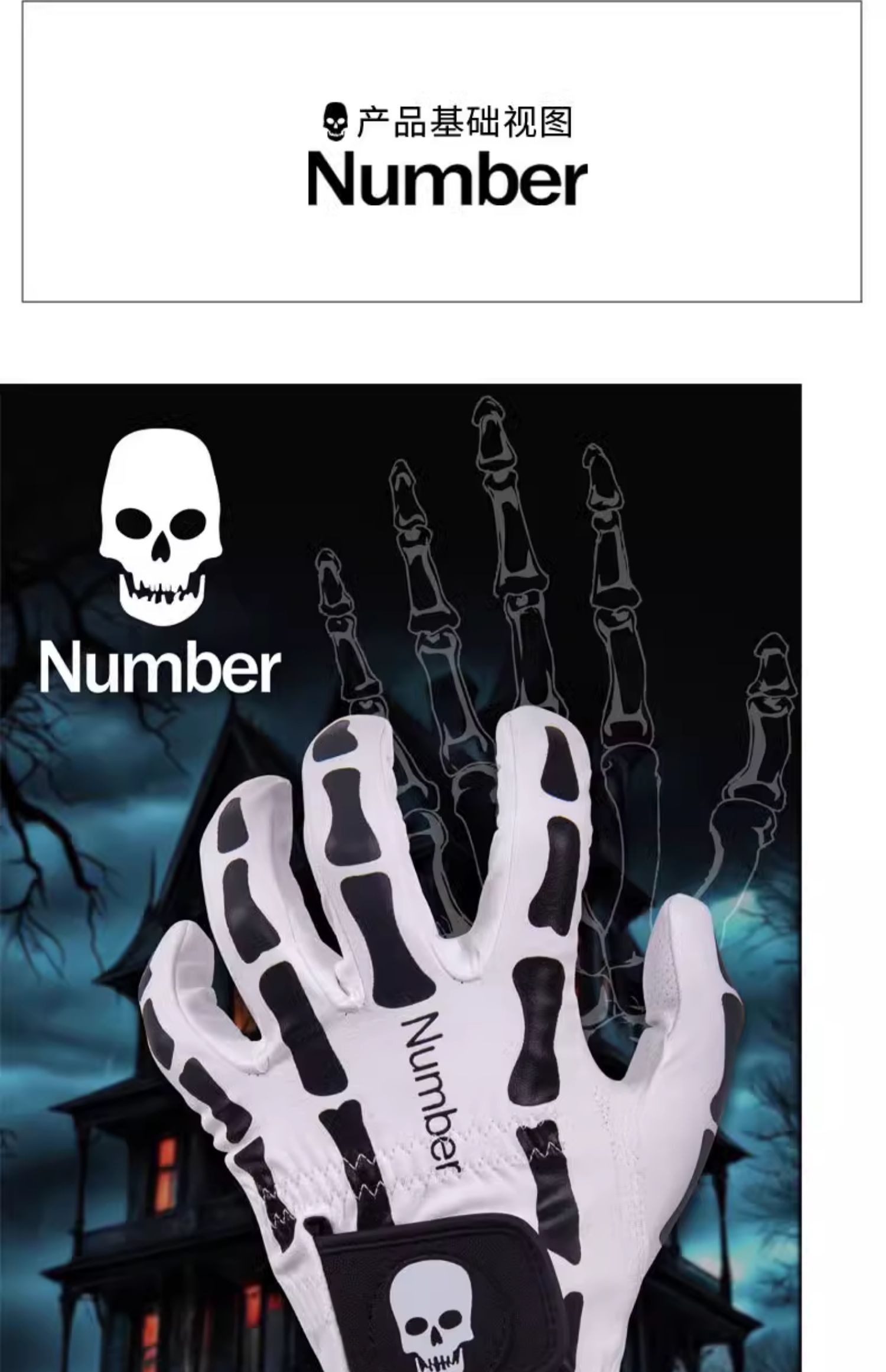 Number高爾夫手套男高彈個性骷髏頭手套防滑舒適耐磨透氣24新品