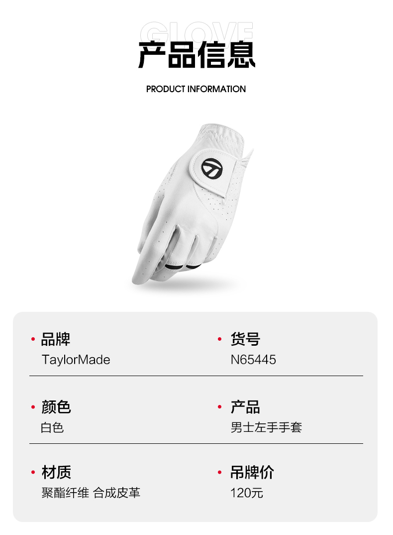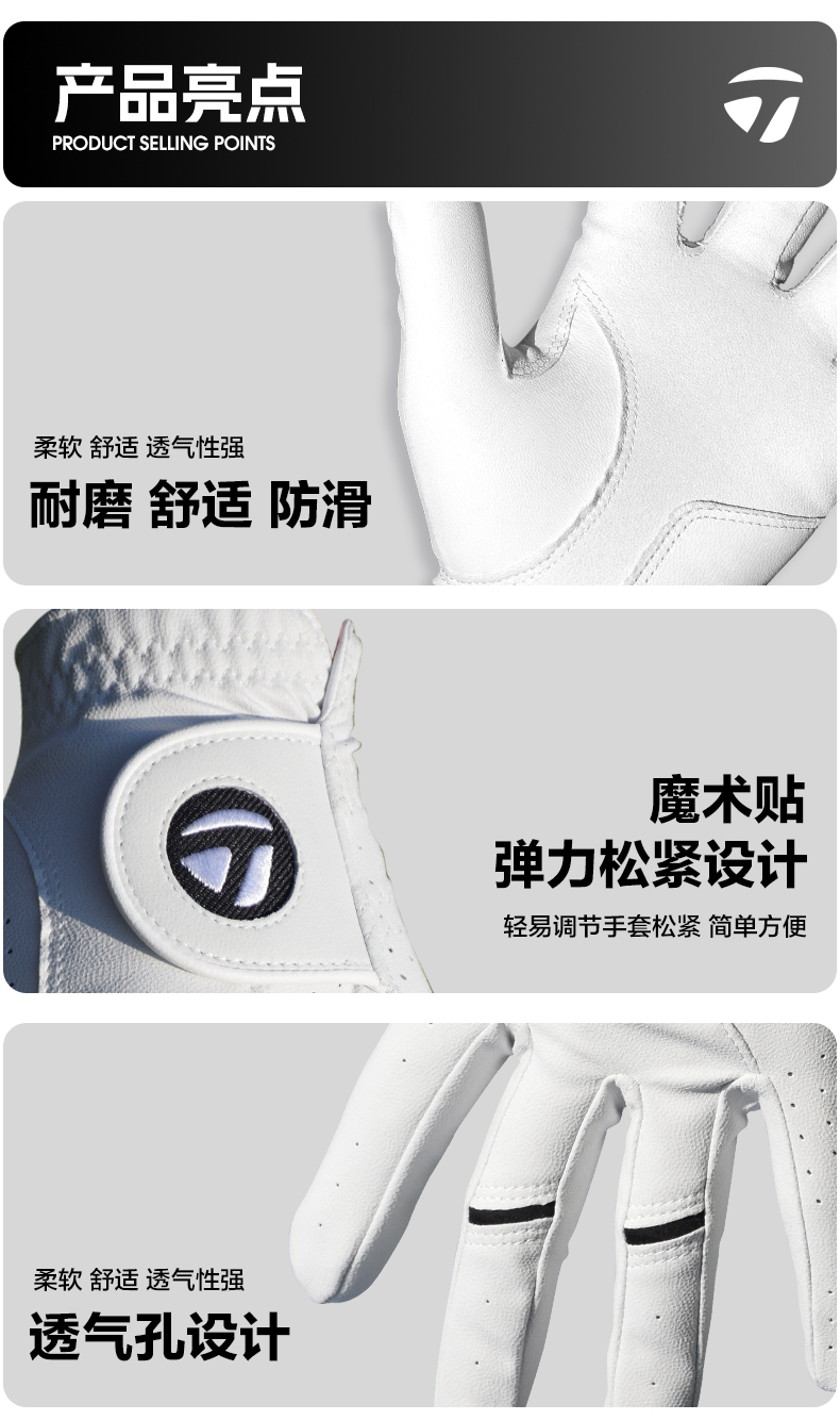 TaylorMade泰勒梅高爾夫手套 golf男士單衹左右手舒適耐磨手套