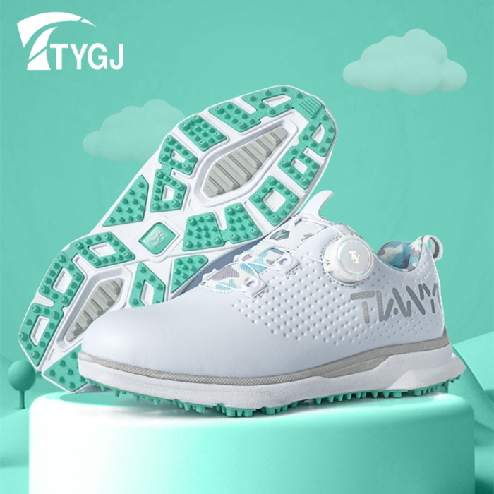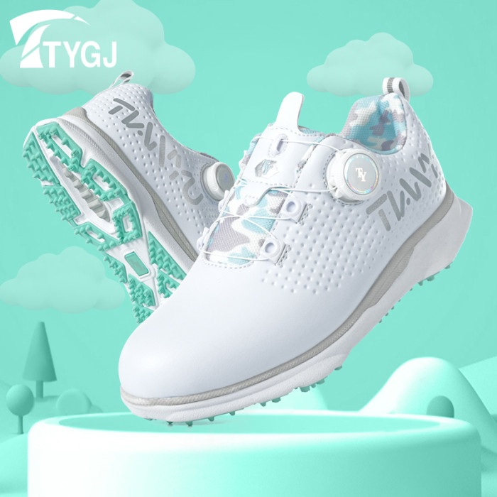 高爾夫兒童球鞋防水透氣旋轉鈕鞋帶運動休閒百搭防滑鞋釘輕便鞋子