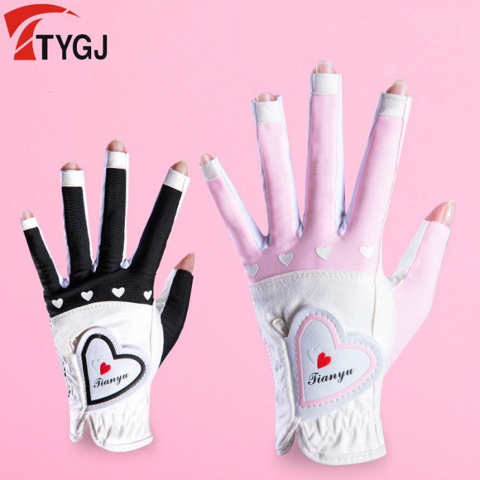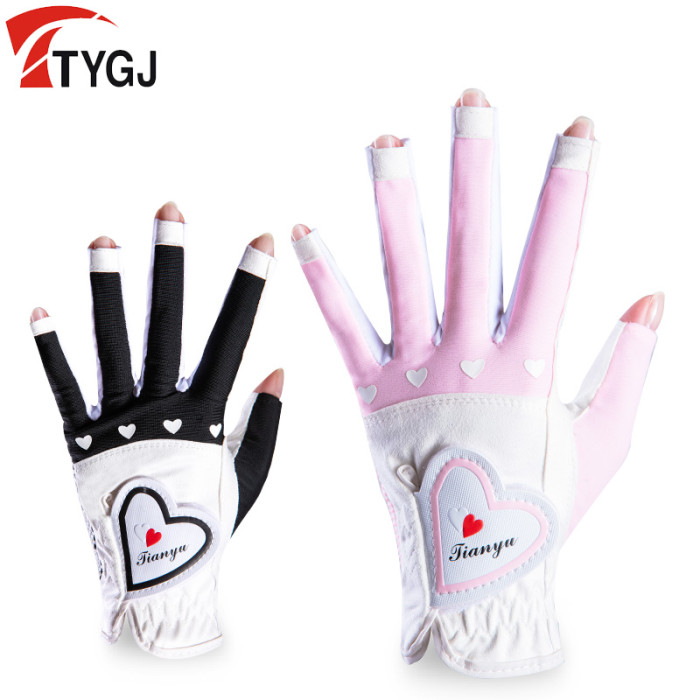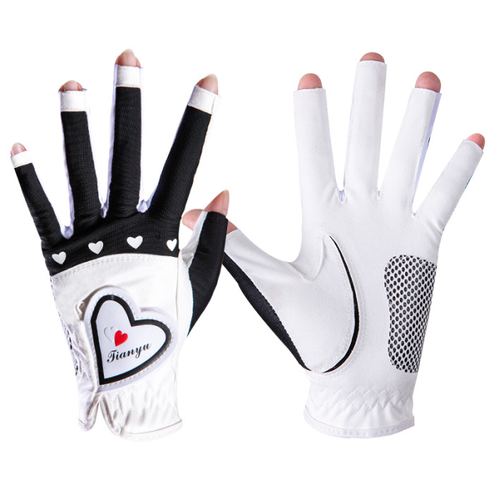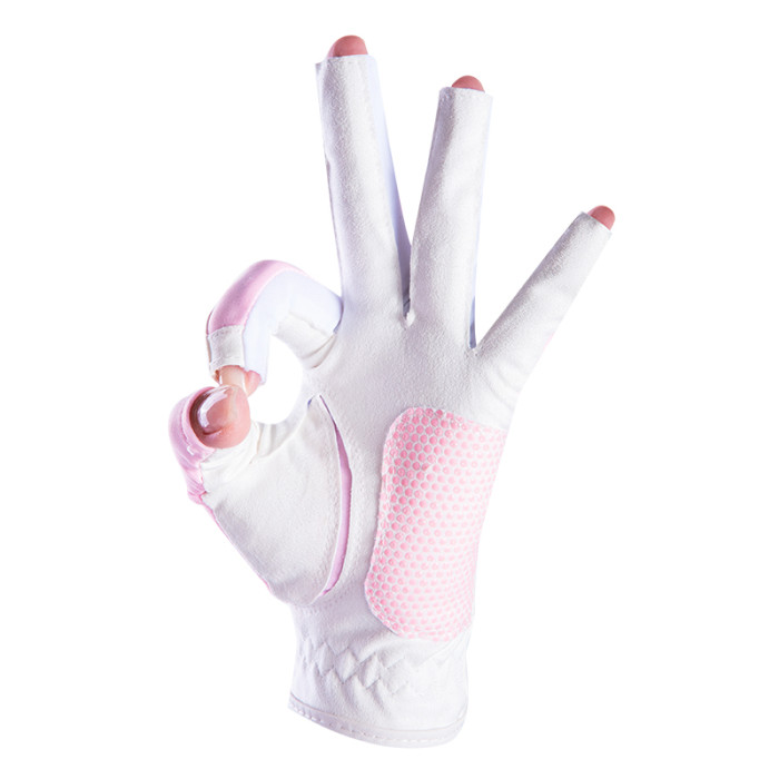 2雙 高爾夫女士手套 夏季超纖布透氣款 露手指手掌帶防滑顆粒