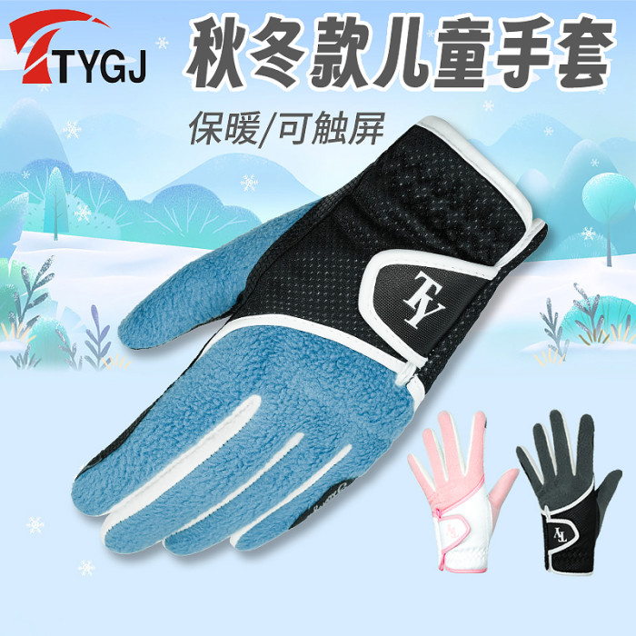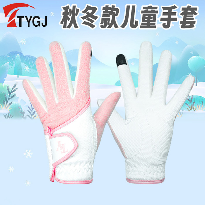2024高爾夫兒童保暖手套 搖粒絨秋冬觸控螢幕防滑運動全指左右手1雙裝