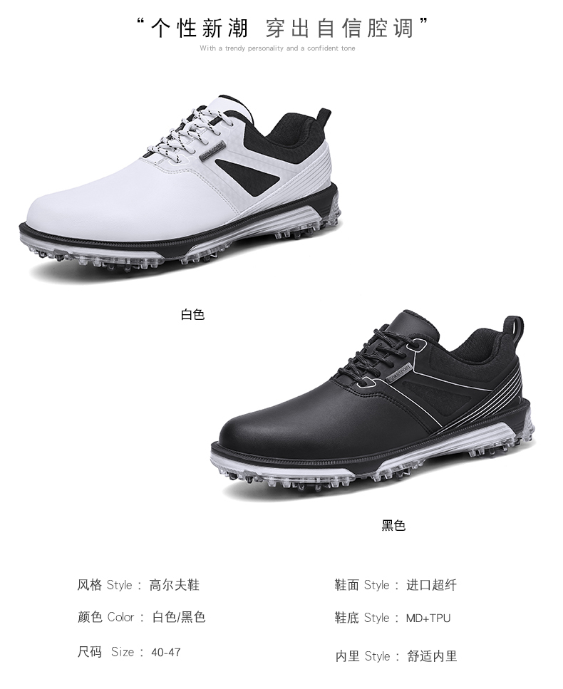 出口歐美高品質真皮專業高爾夫男鞋防水戶外休閒運動鞋大碼鞋