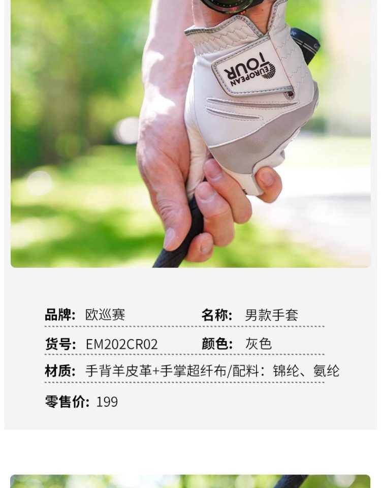 EuropeanTour歐巡賽高爾夫手套男子防滑專業高爾夫手套左右手單衹