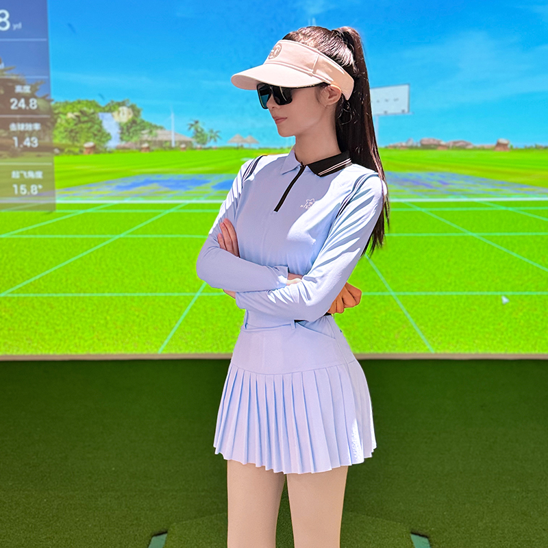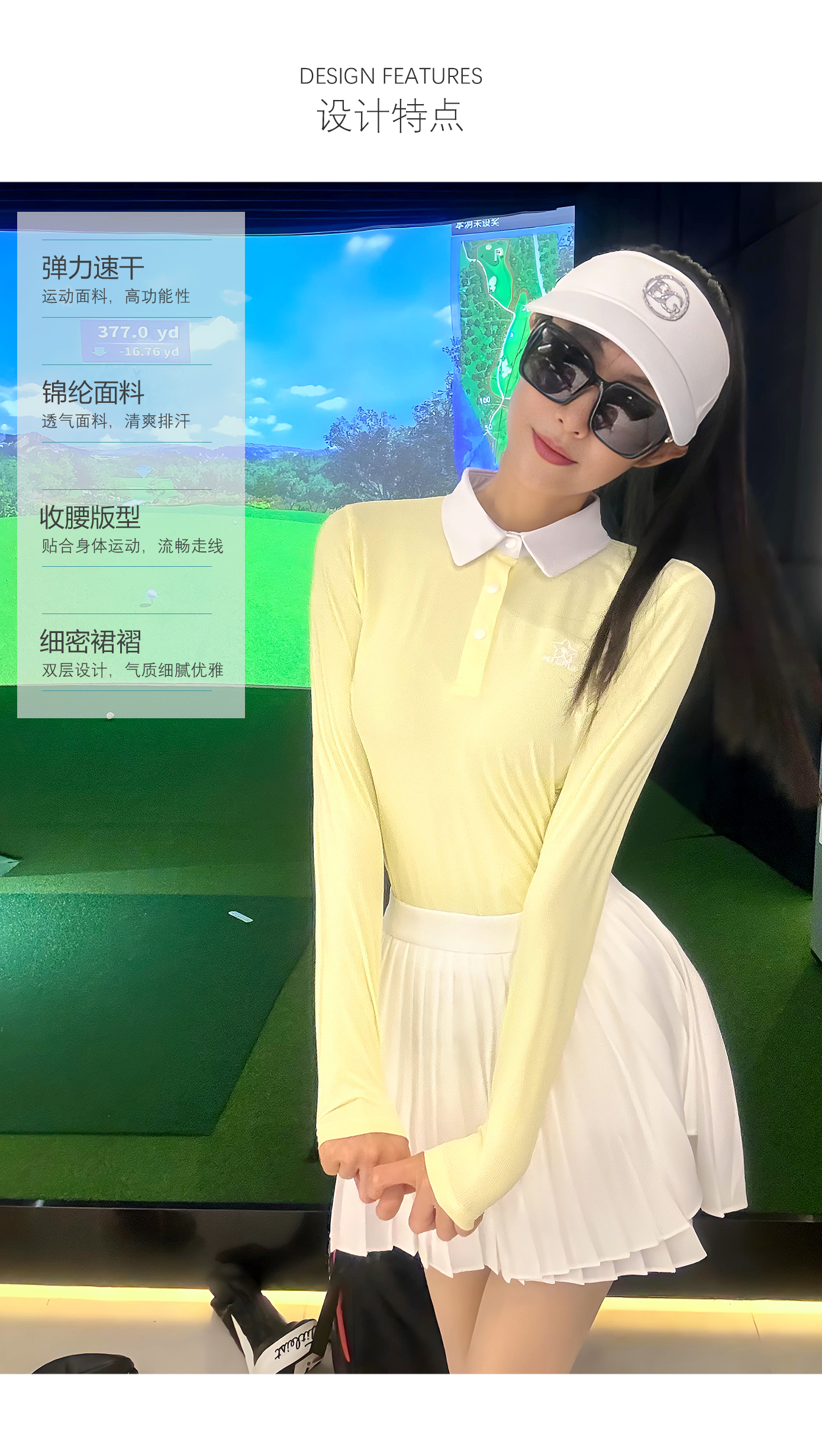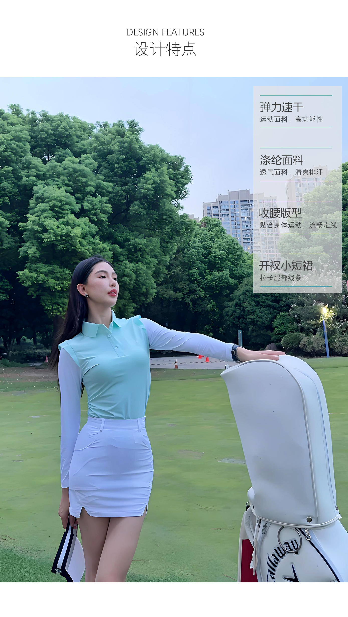 春夏新品韓版高爾夫女裝長袖上衣高級防曬運動透氣修身Polo衫套裝