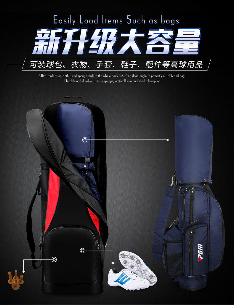 PGM 高爾夫航空包可折曡飛機包航空托運可攜式球包套保護套球袋罩