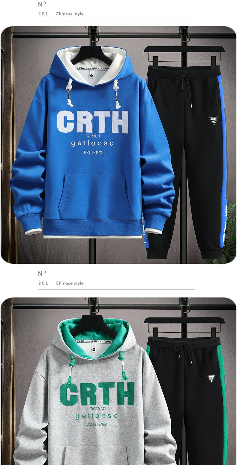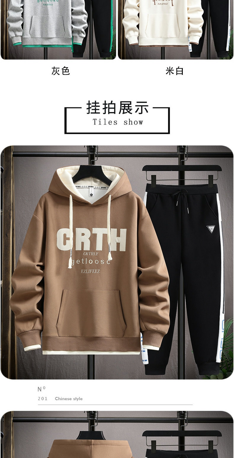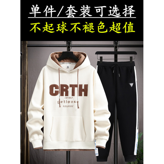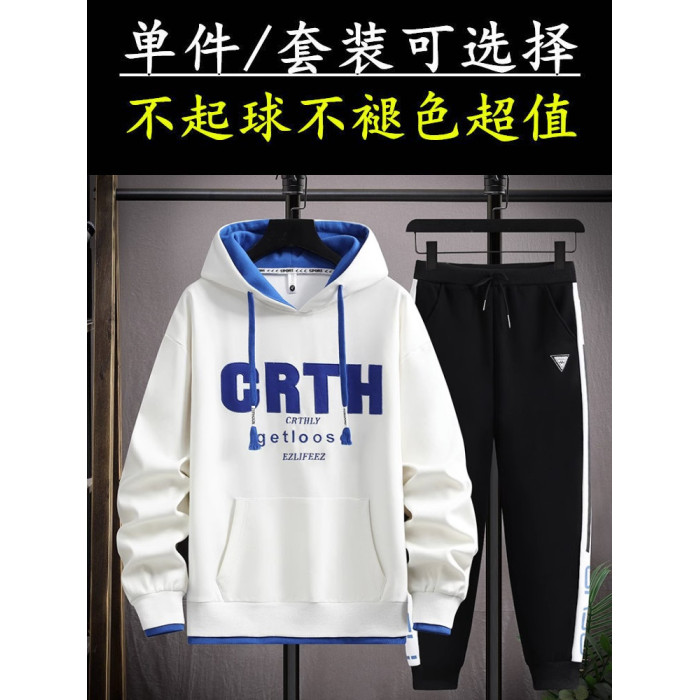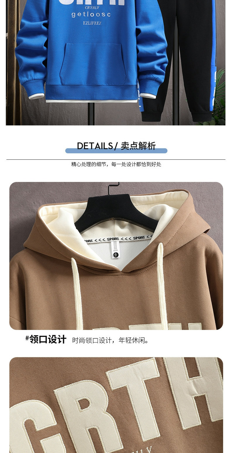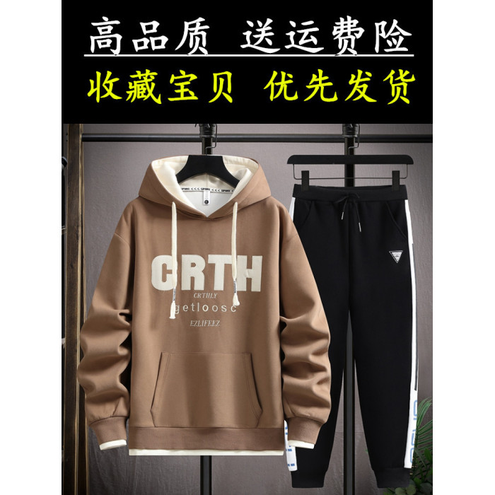 青少年秋冬款加絨衛衣男孩外套初中高中學生帥氣大童男裝潮流套裝