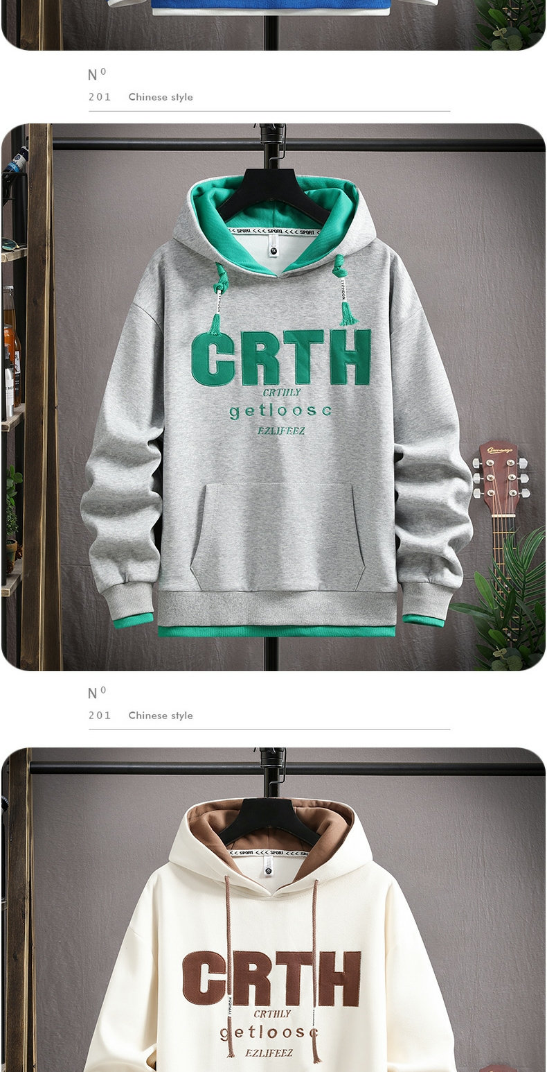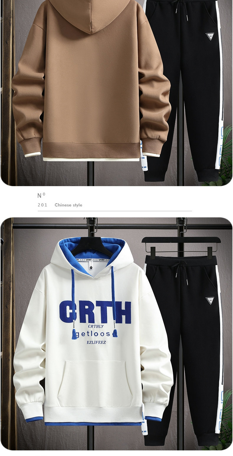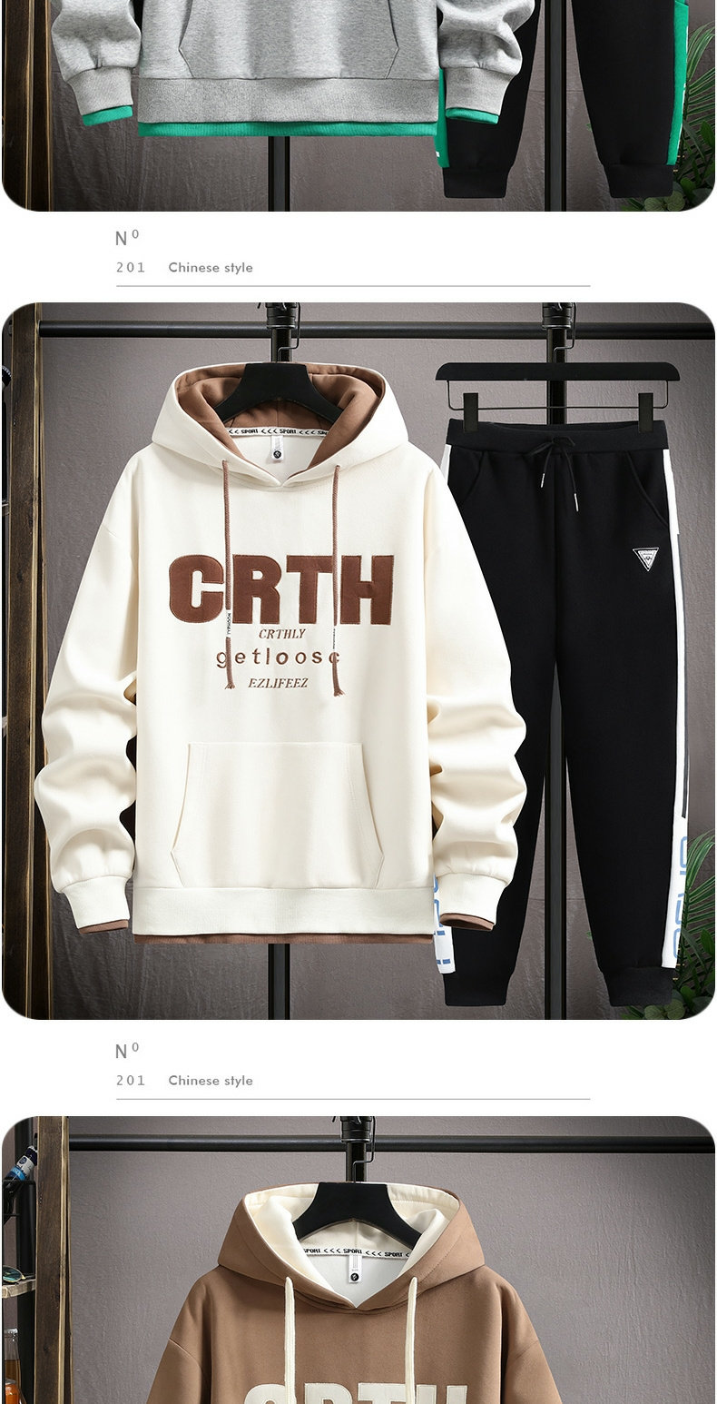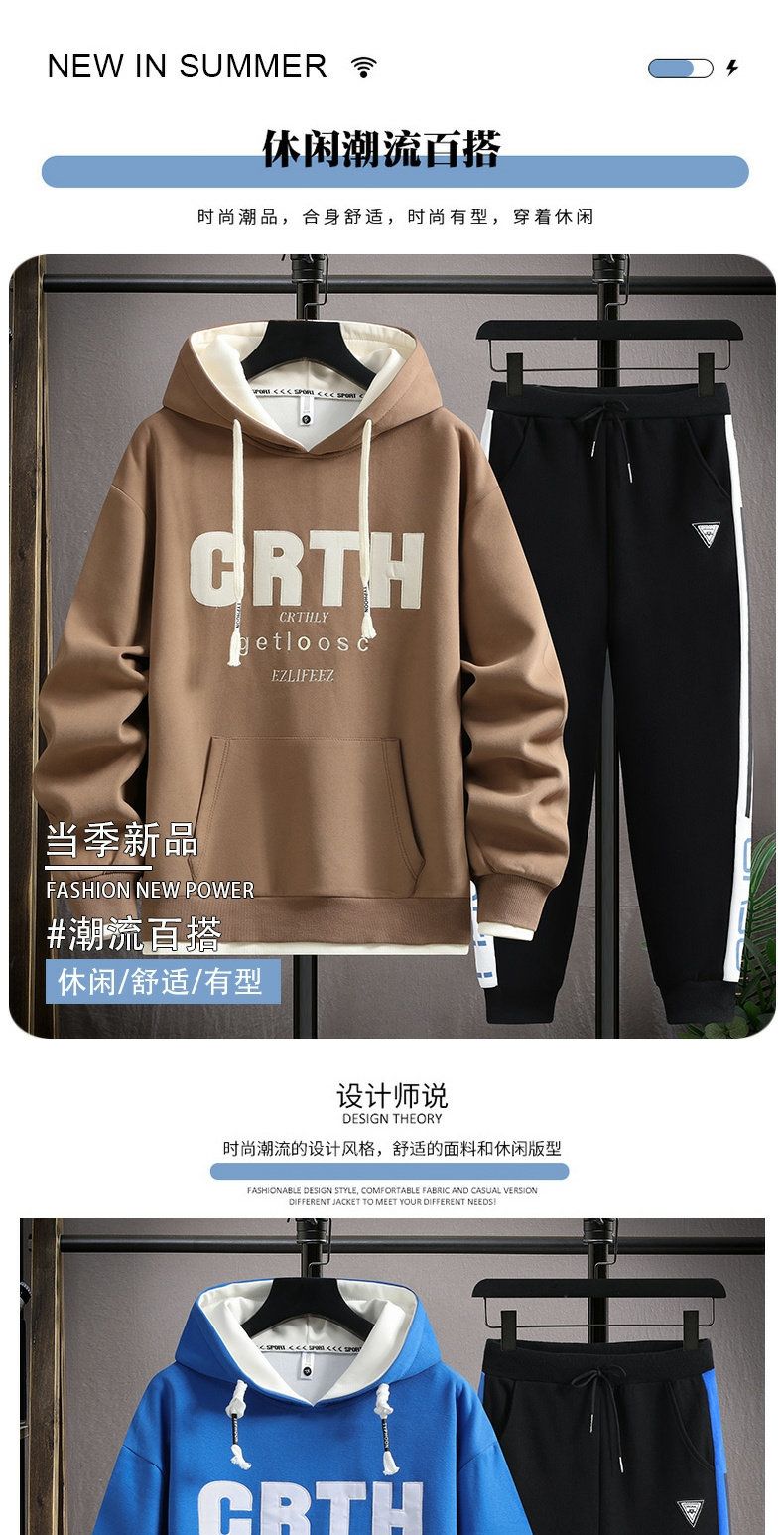 青少年秋冬款加絨衛衣男孩外套初中高中學生帥氣大童男裝潮流套裝