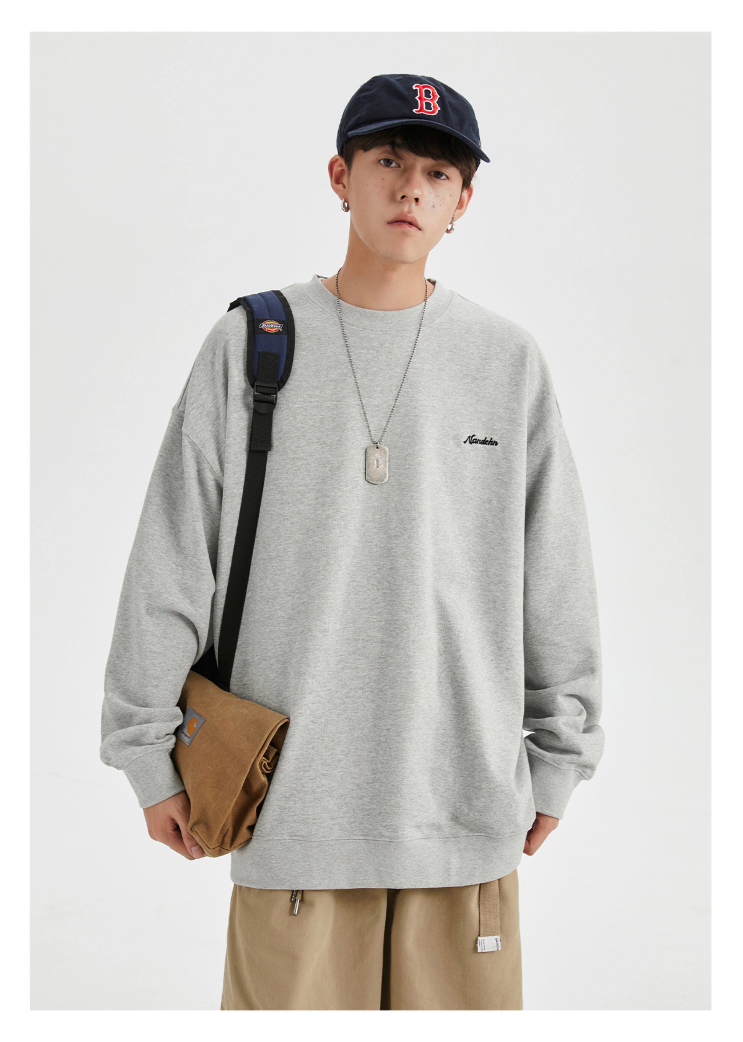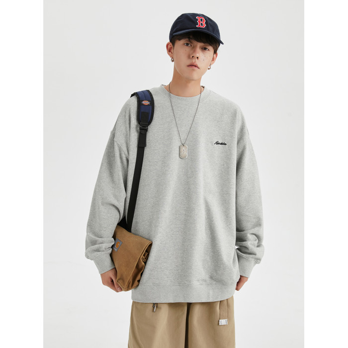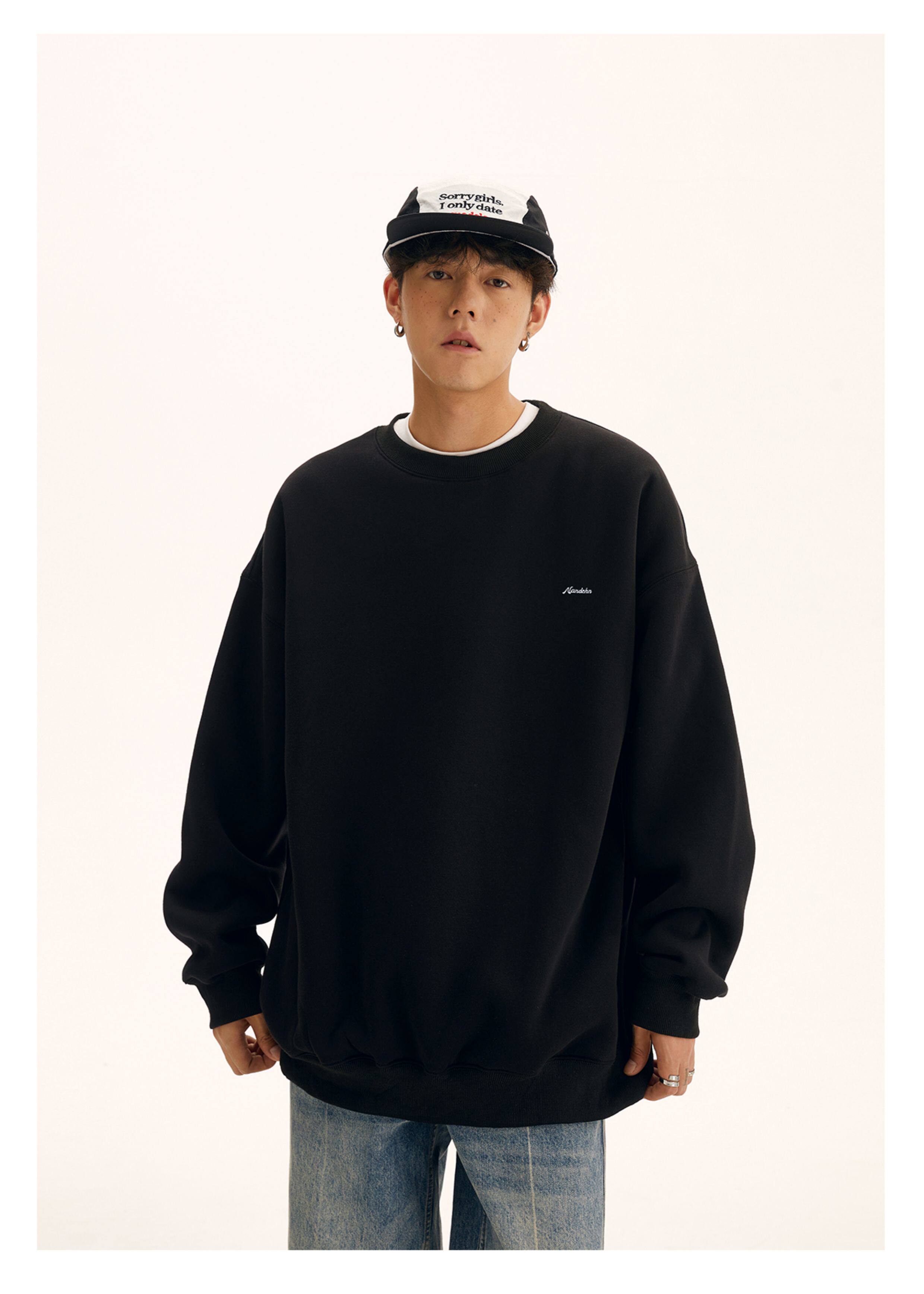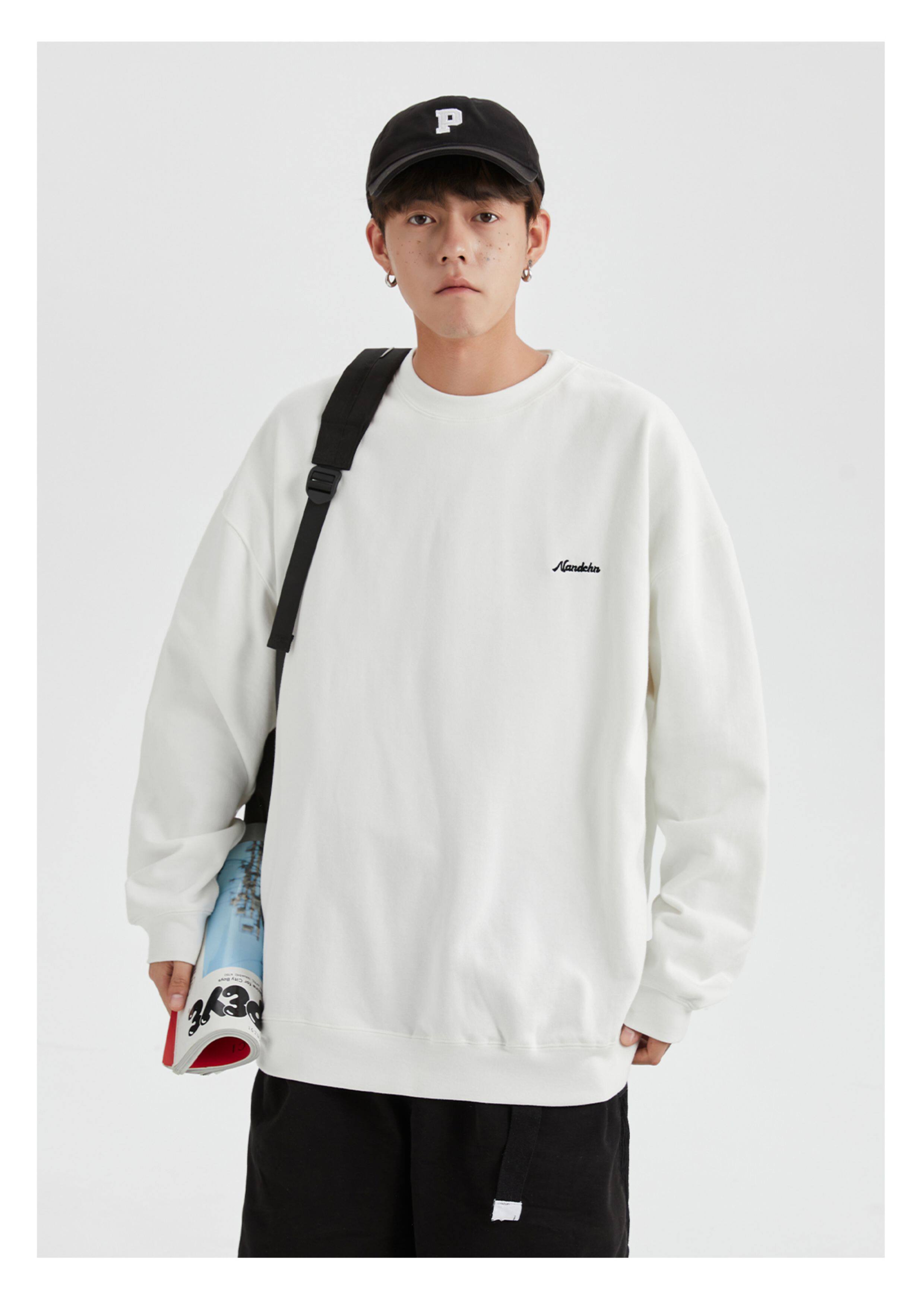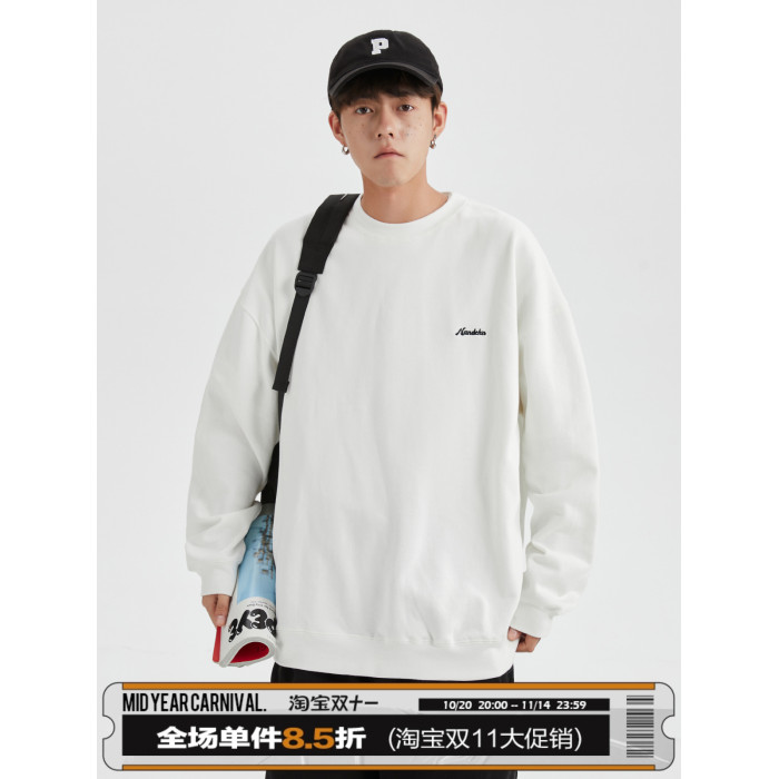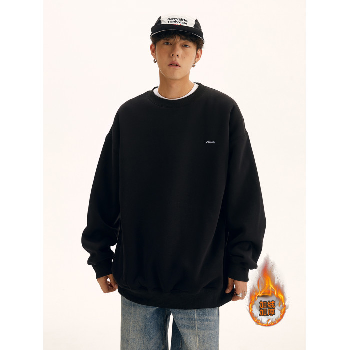 男道秋冬純色字母刺綉圓領衛衣男休閒情侶基礎款加絨長袖套頭上衣