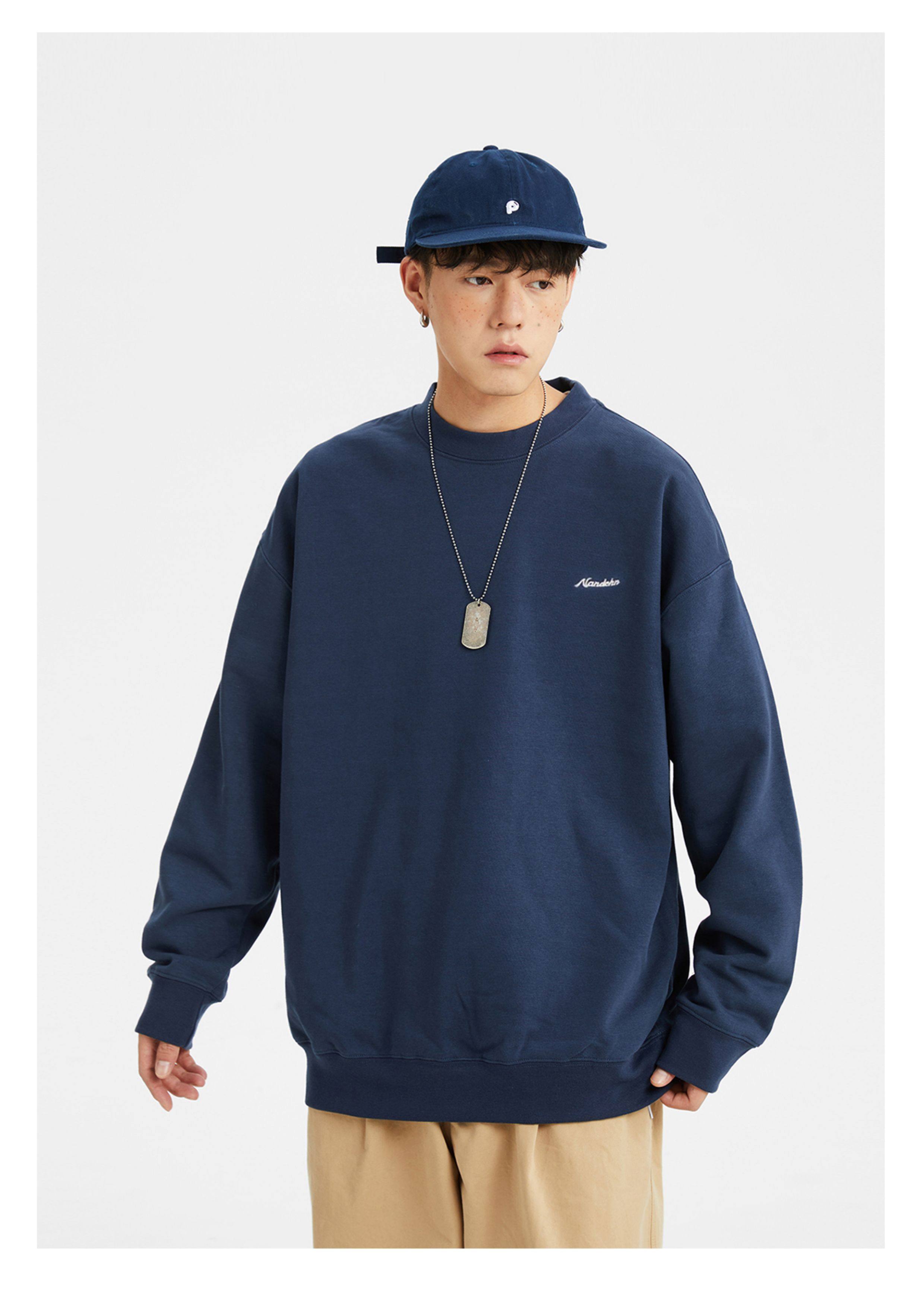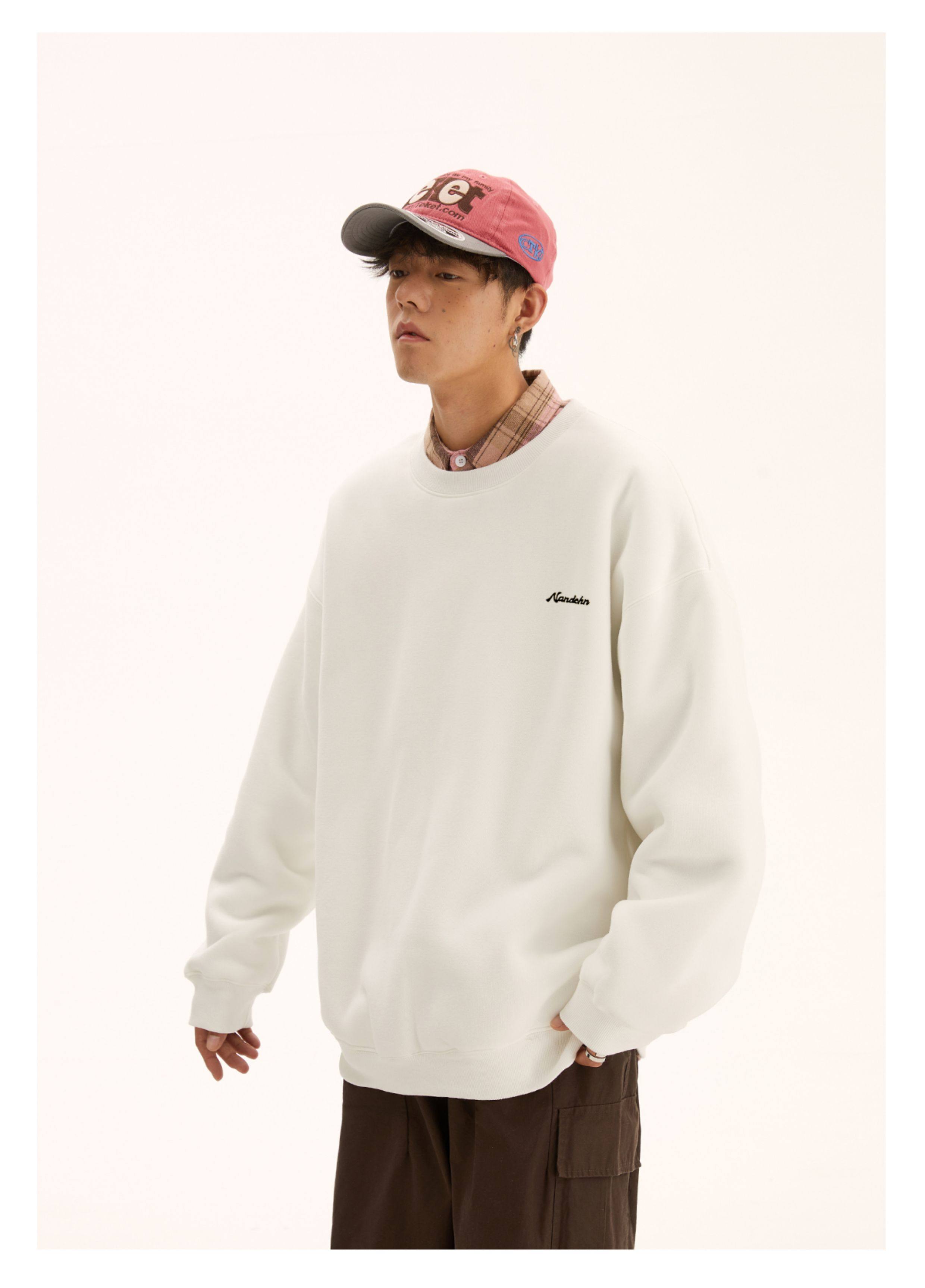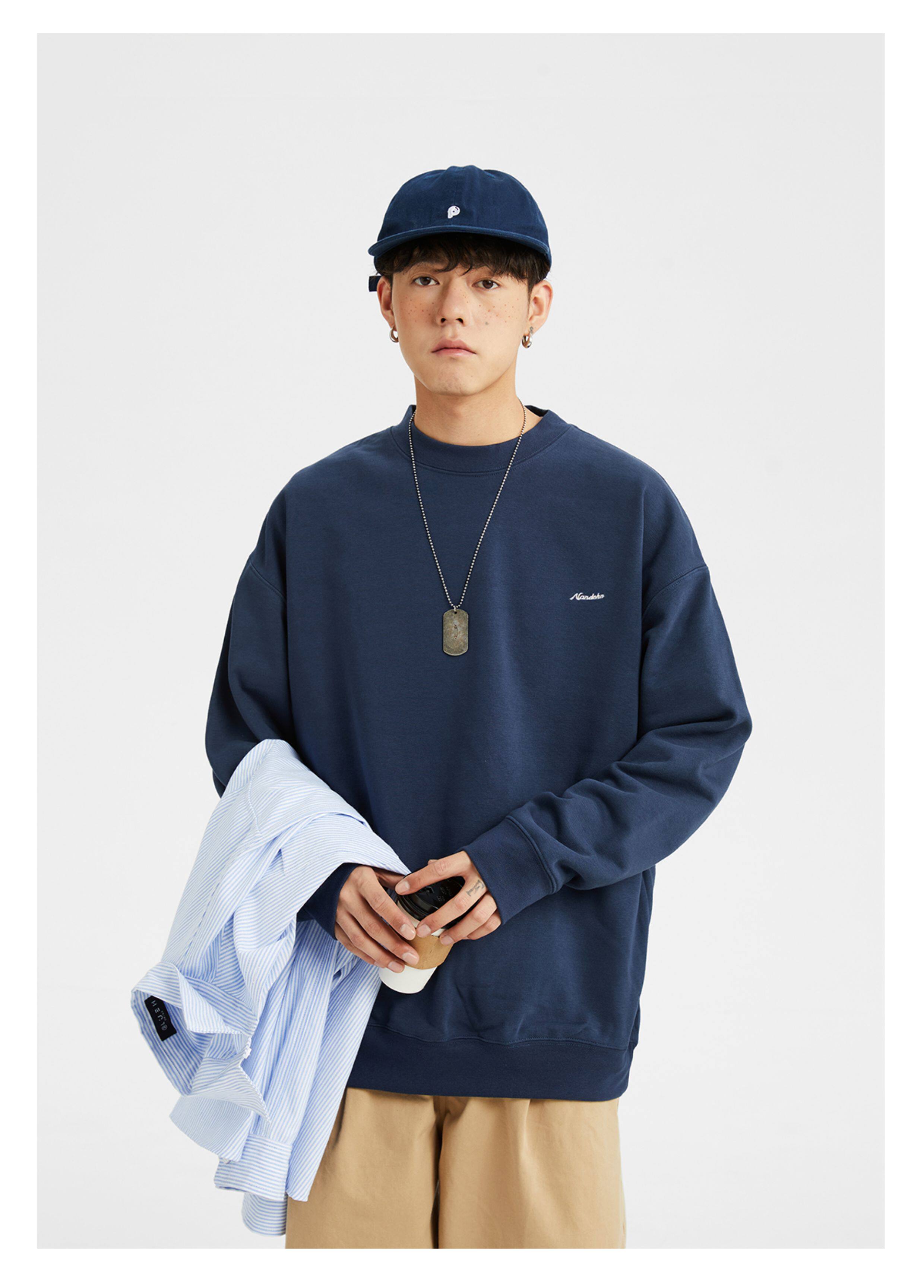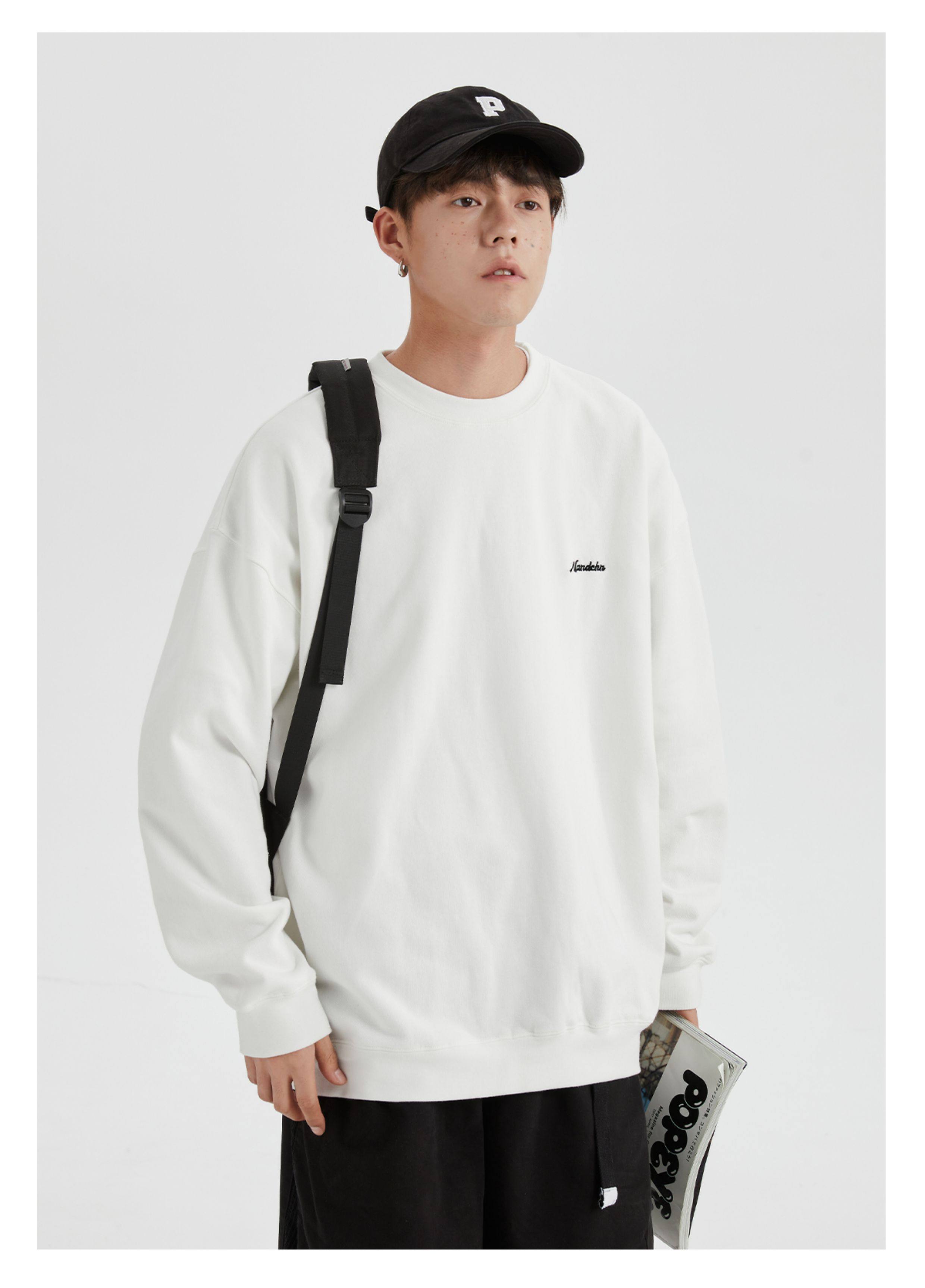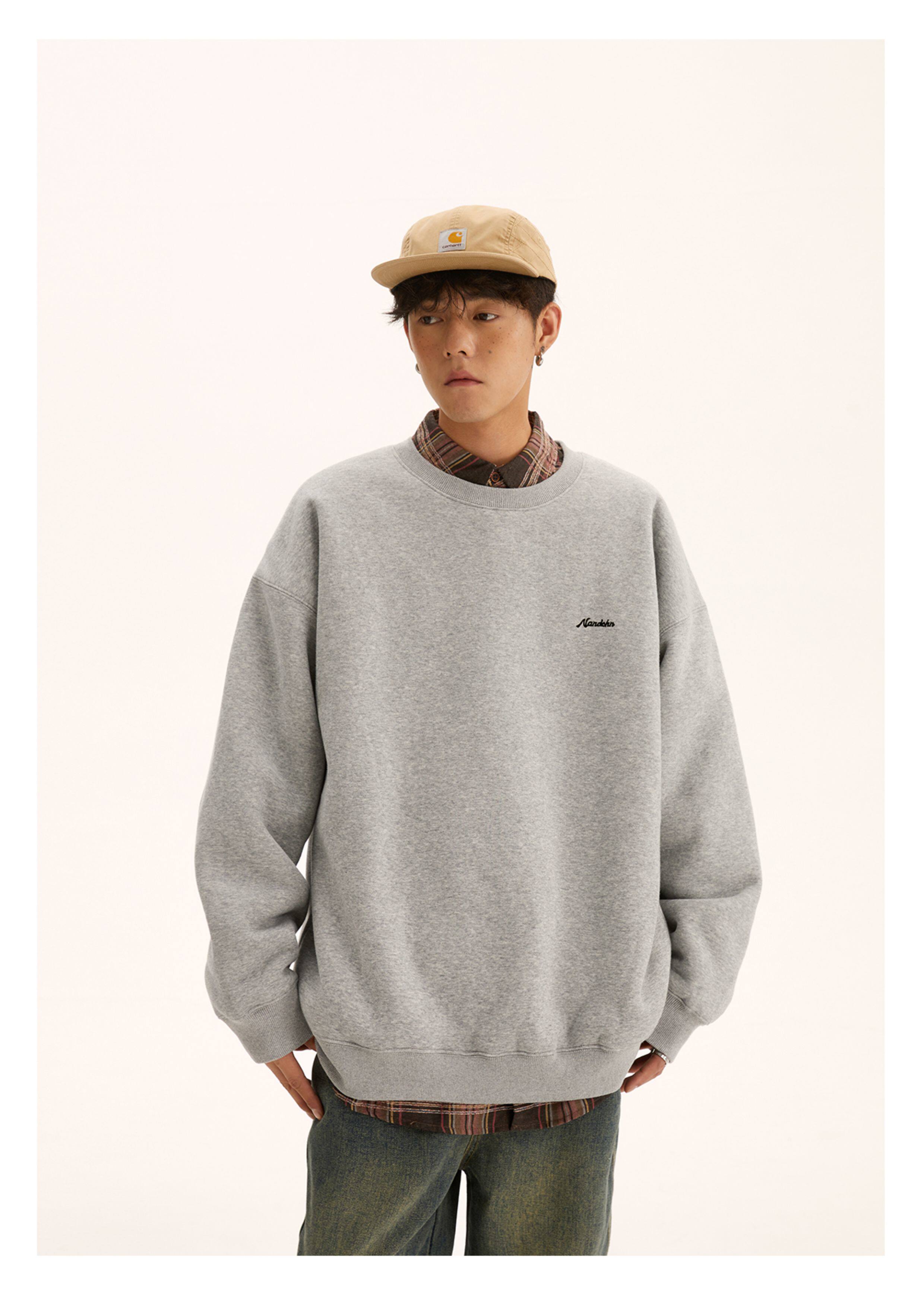 男道秋冬純色字母刺綉圓領衛衣男休閒情侶基礎款加絨長袖套頭上衣