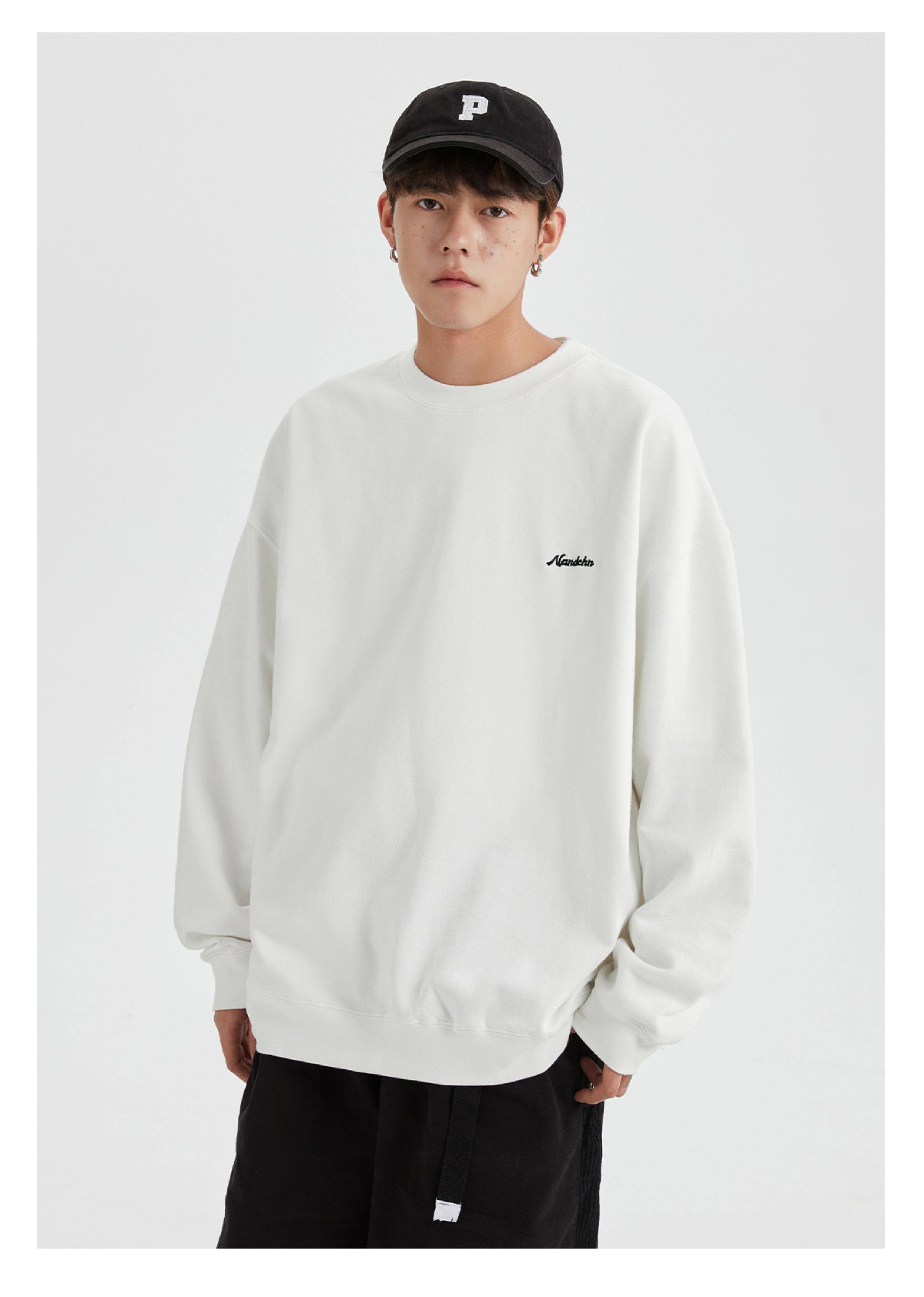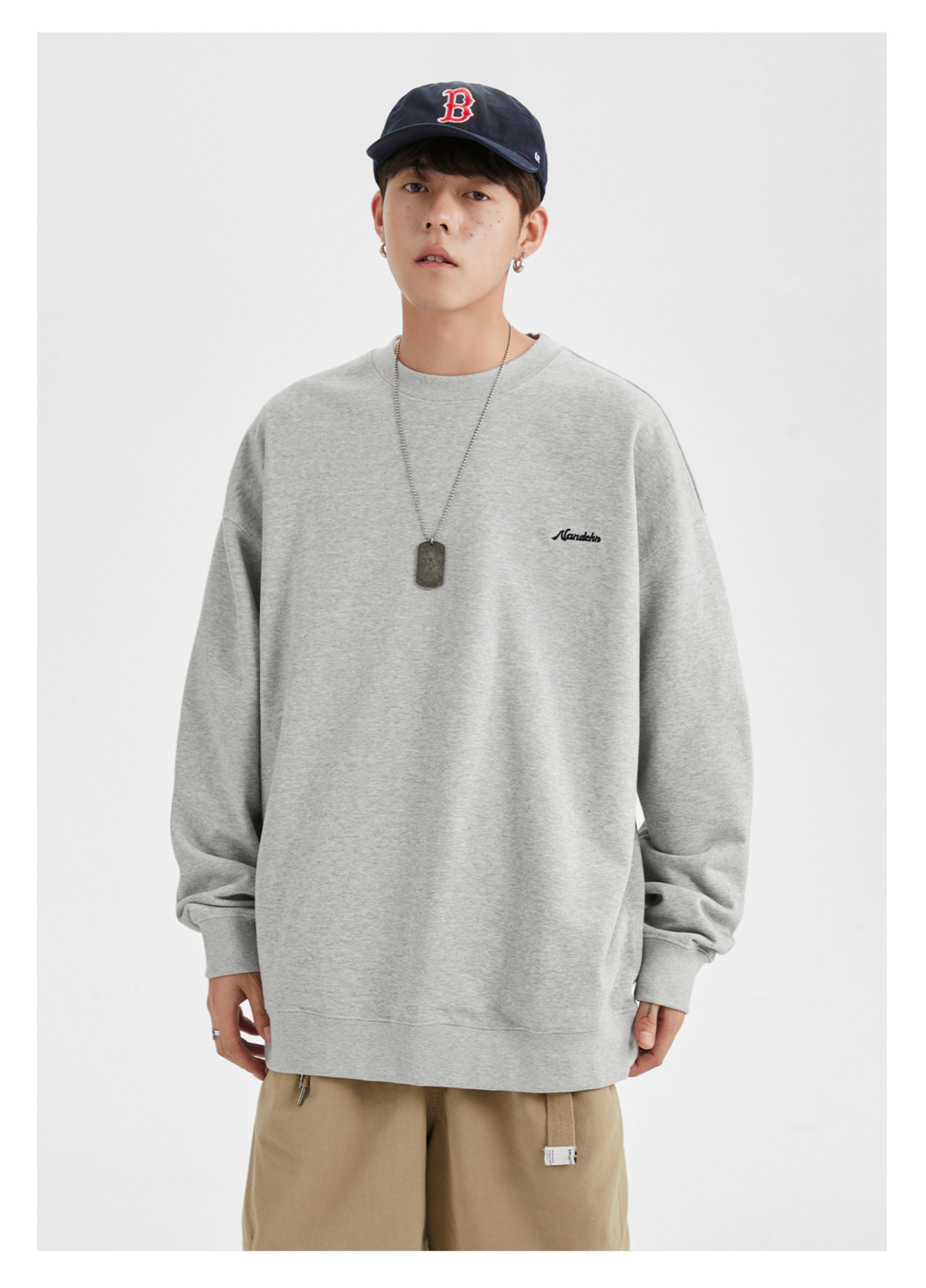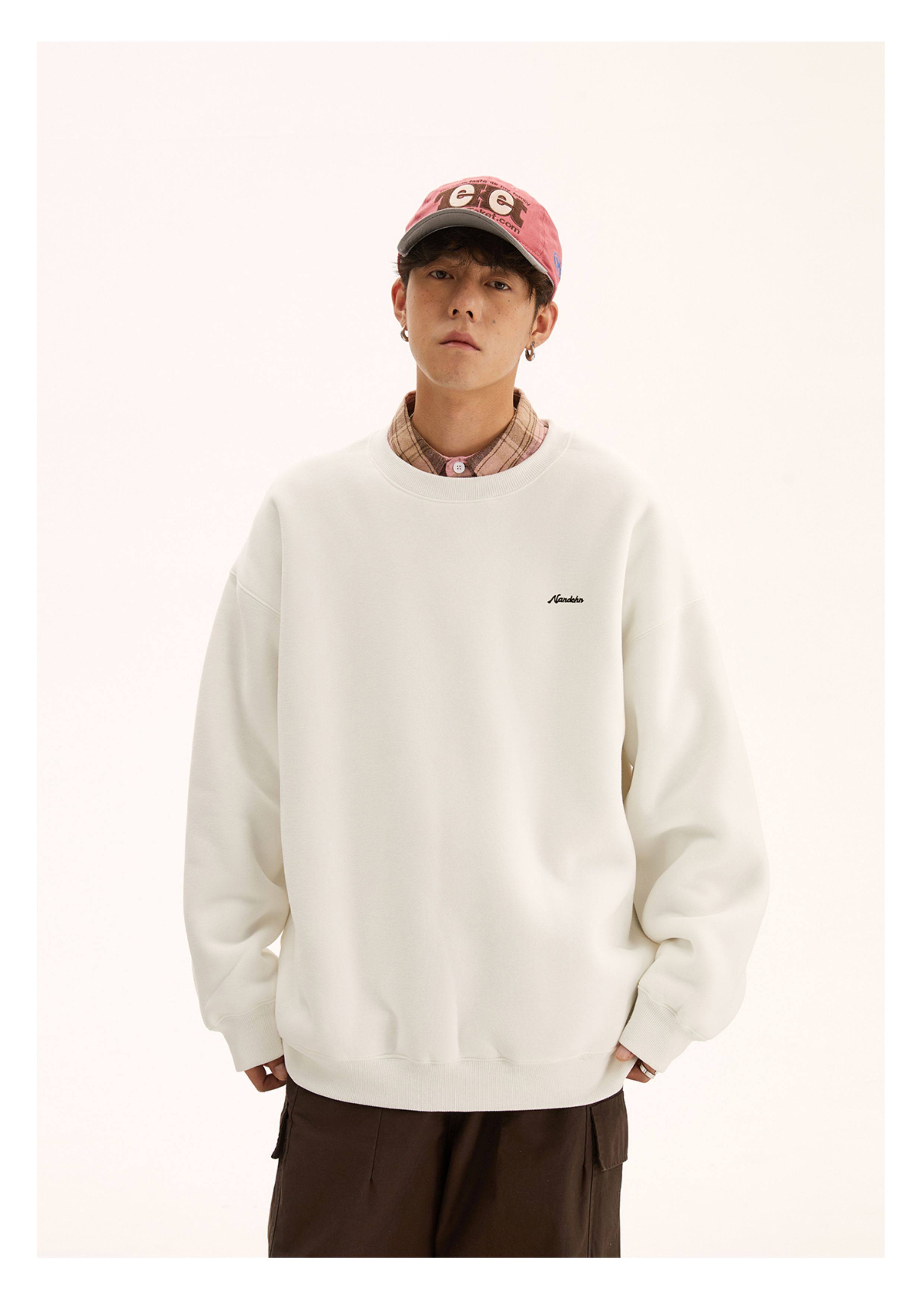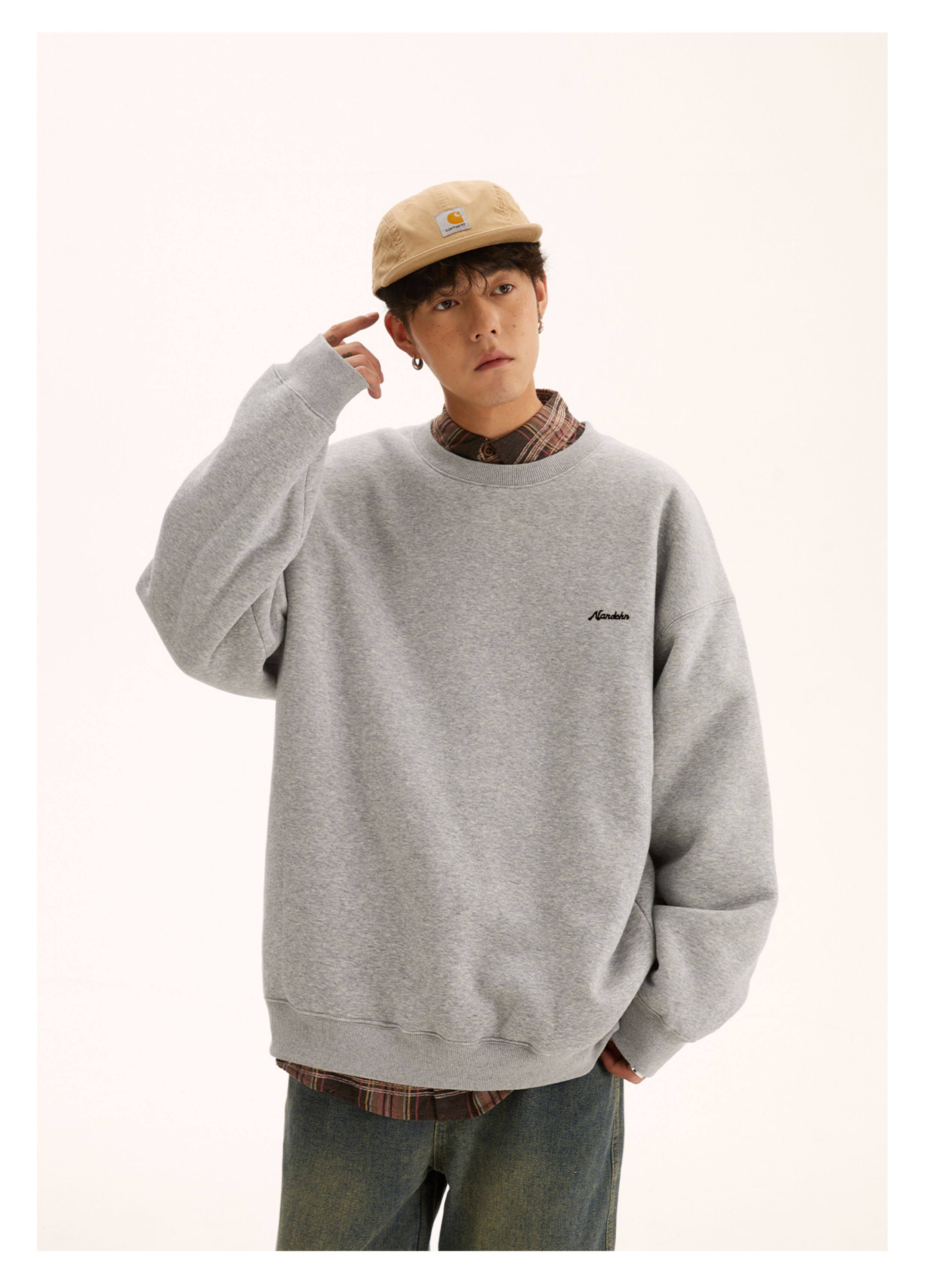 男道秋冬純色字母刺綉圓領衛衣男休閒情侶基礎款加絨長袖套頭上衣