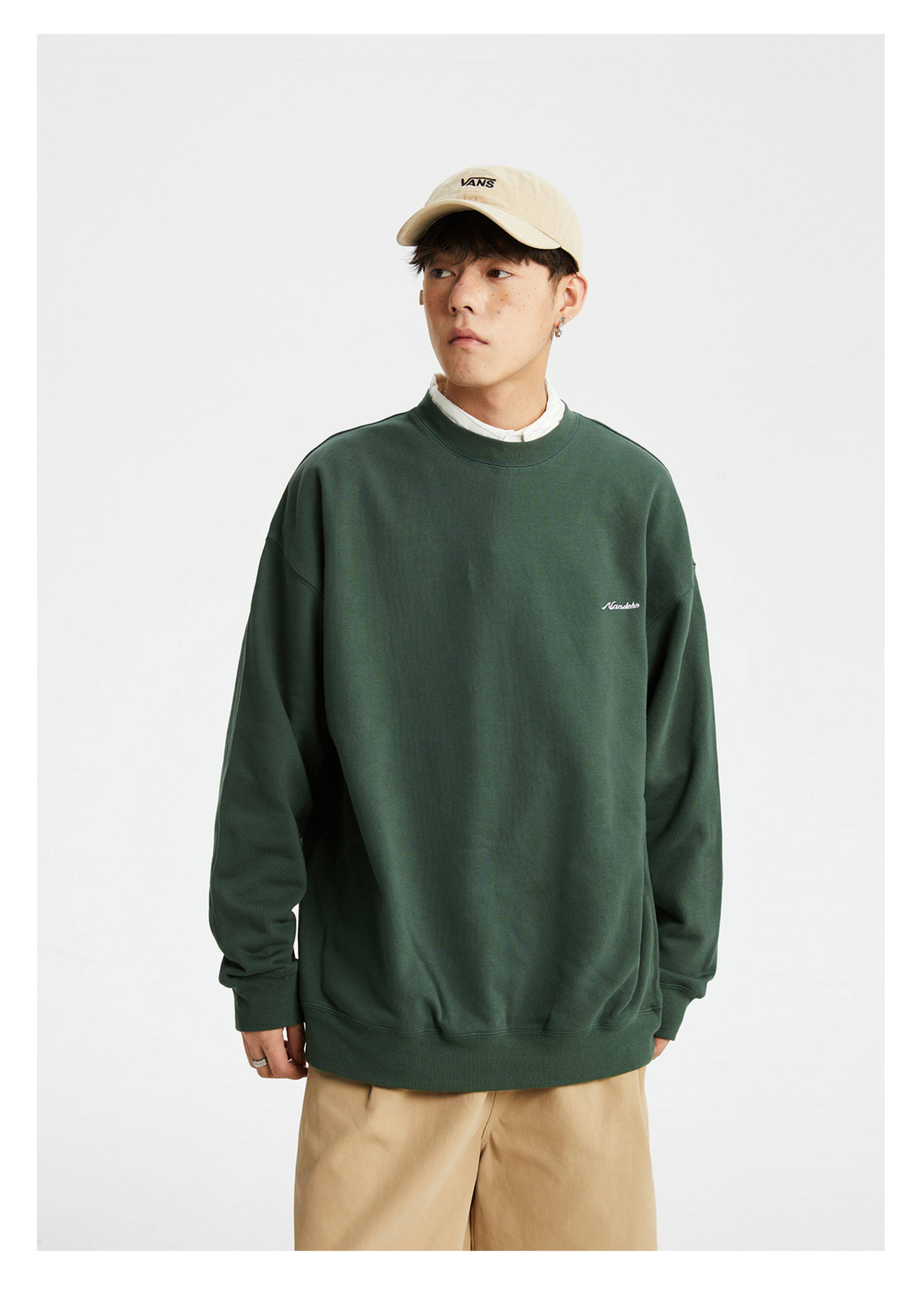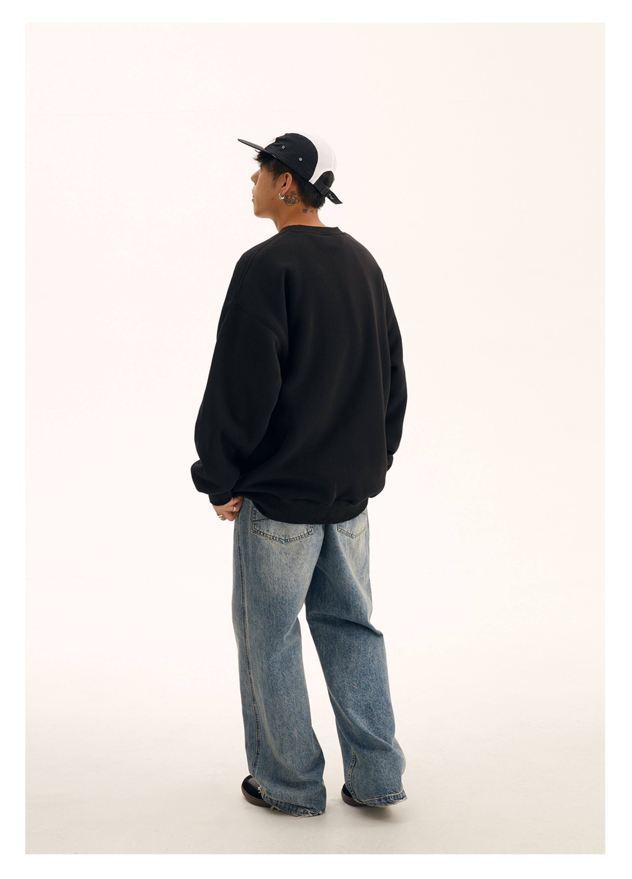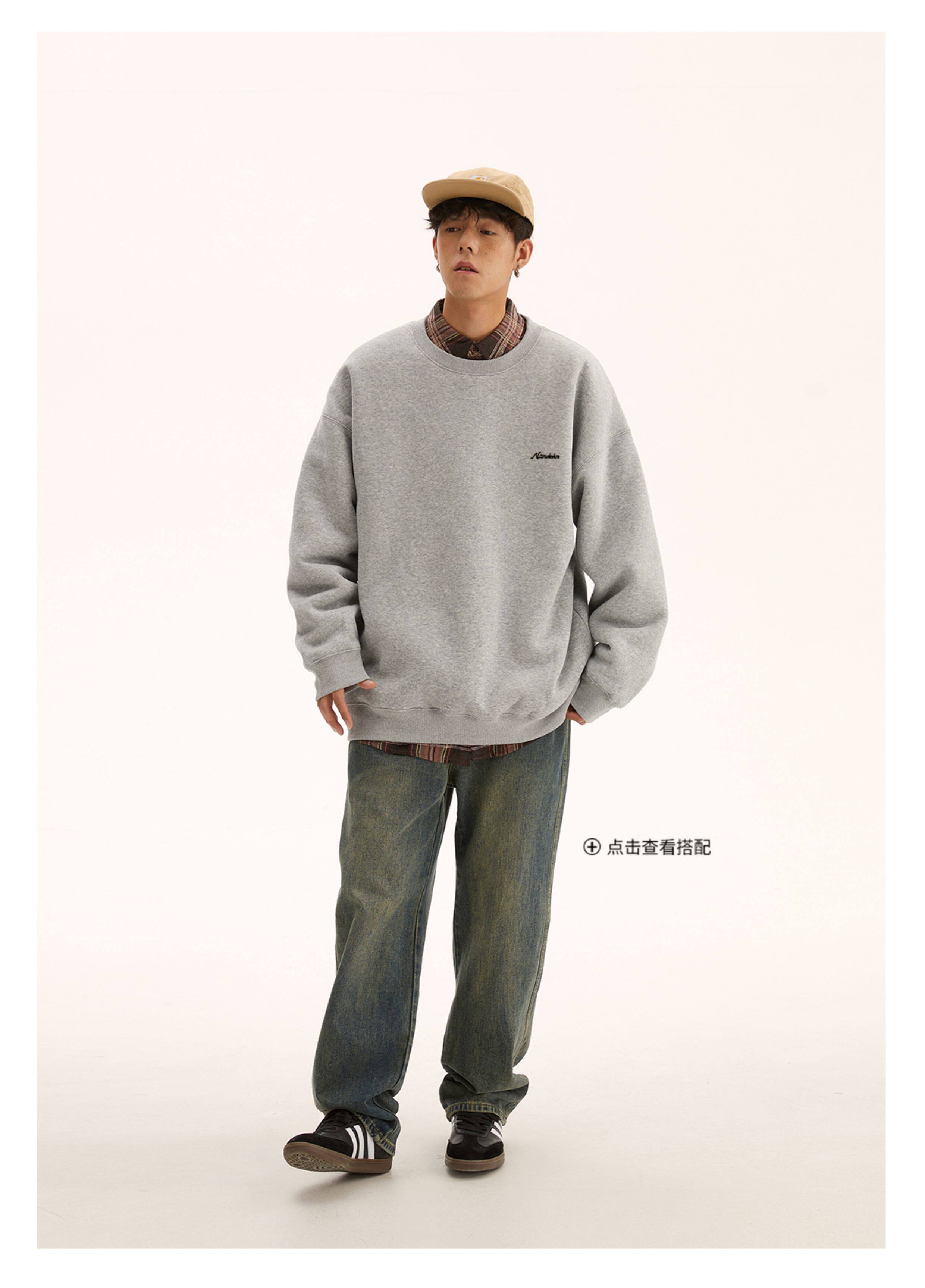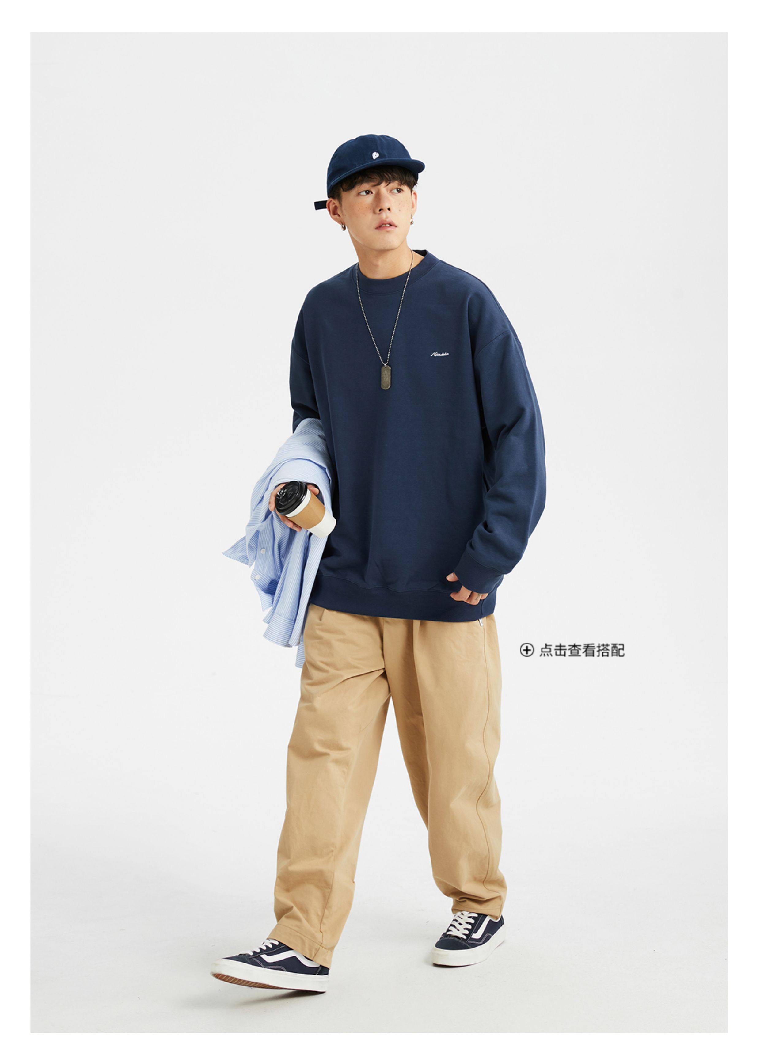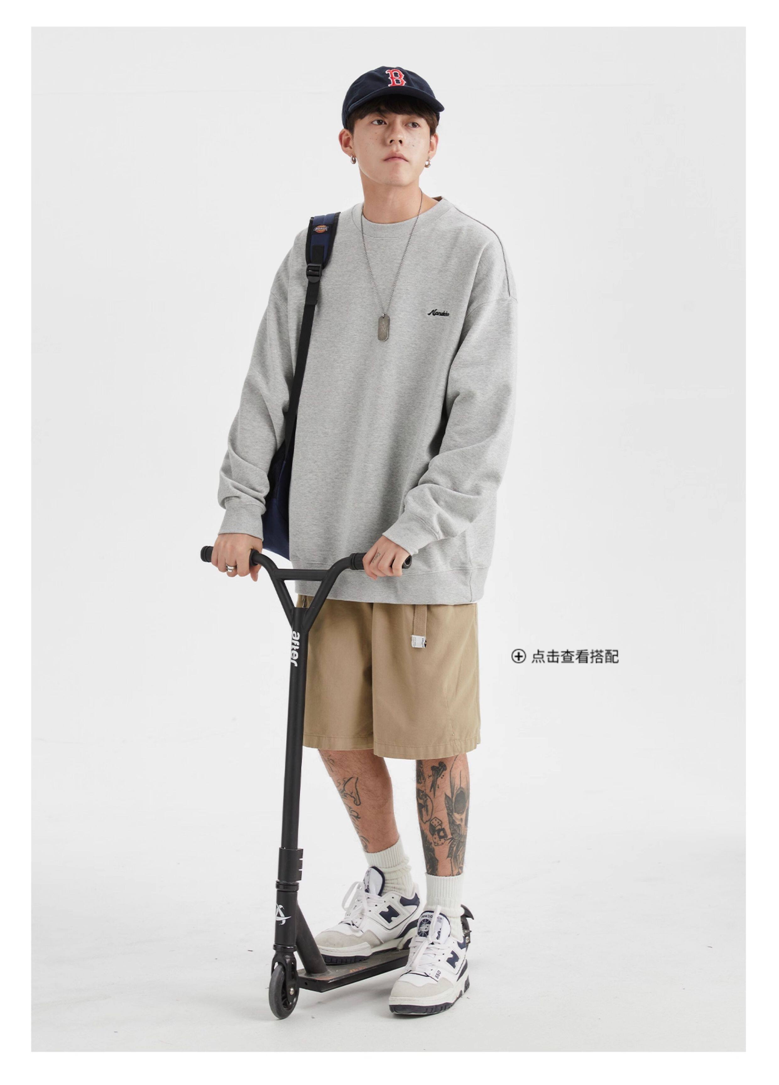 男道秋冬純色字母刺綉圓領衛衣男休閒情侶基礎款加絨長袖套頭上衣