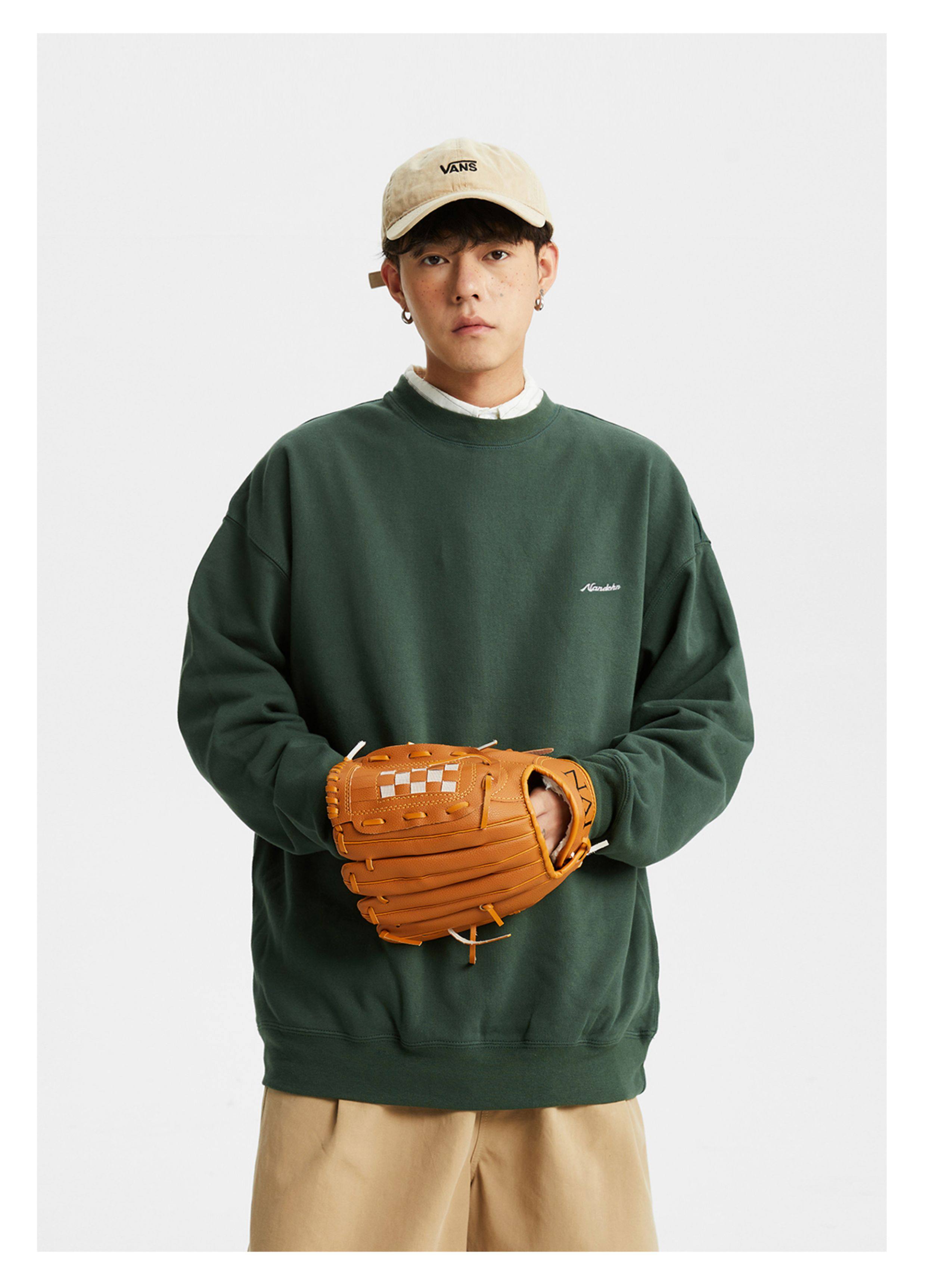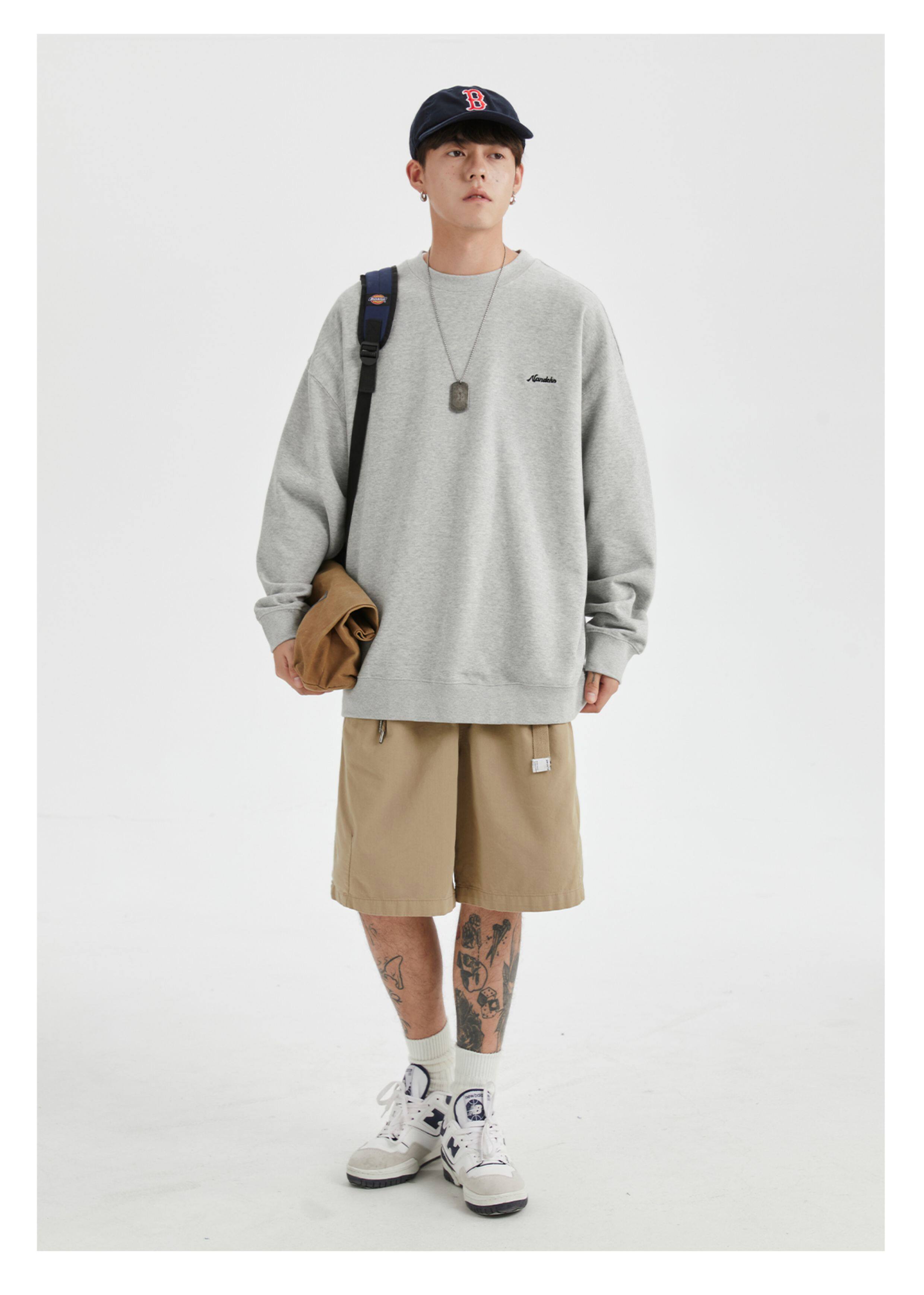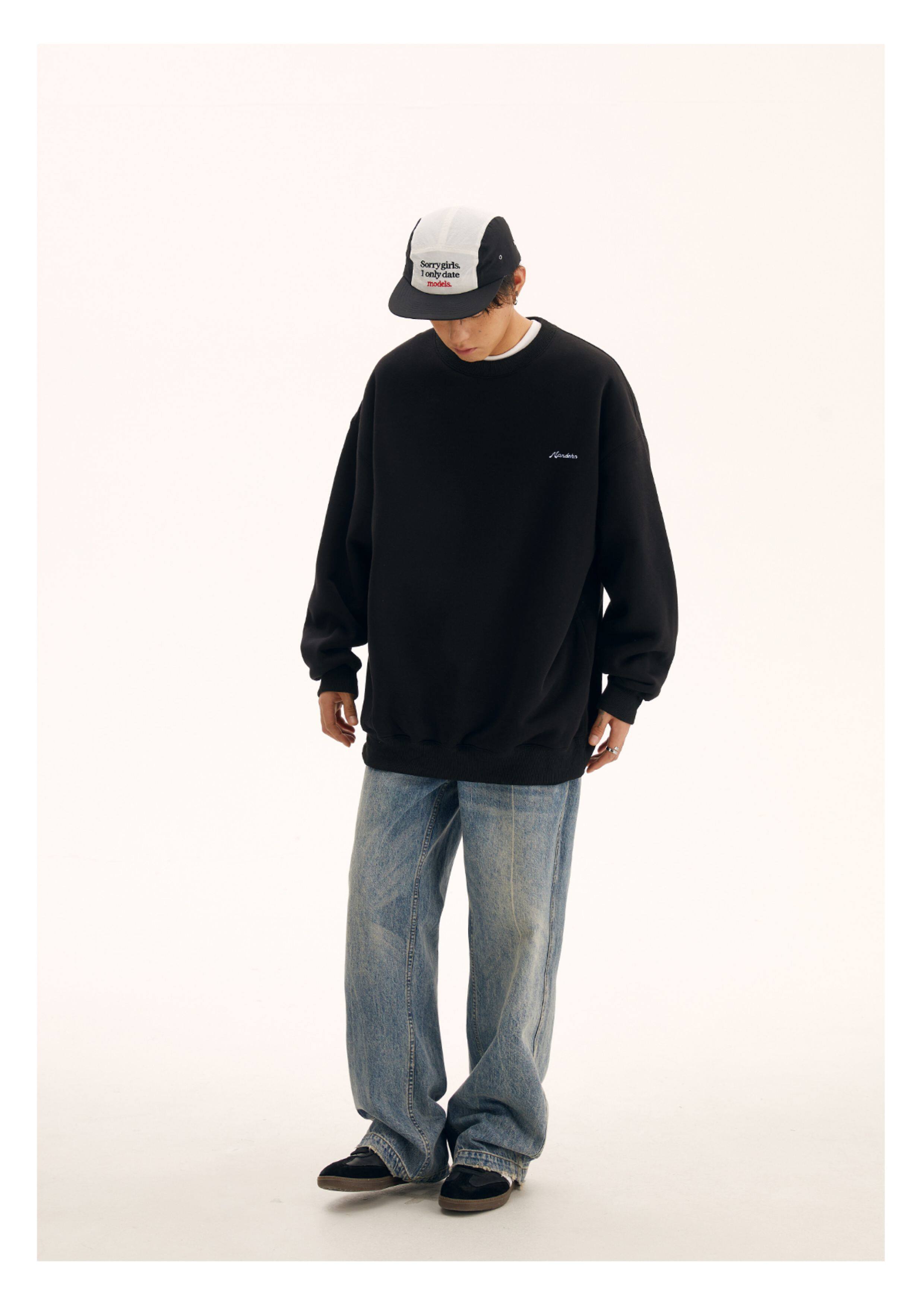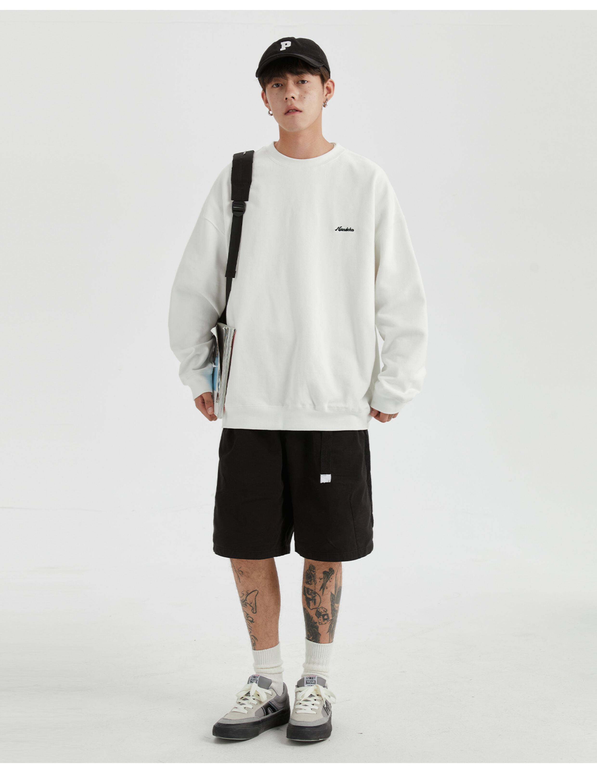 男道秋冬純色字母刺綉圓領衛衣男休閒情侶基礎款加絨長袖套頭上衣