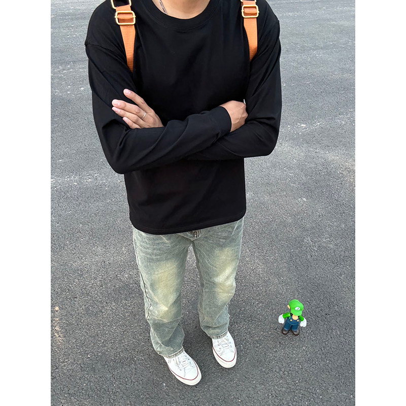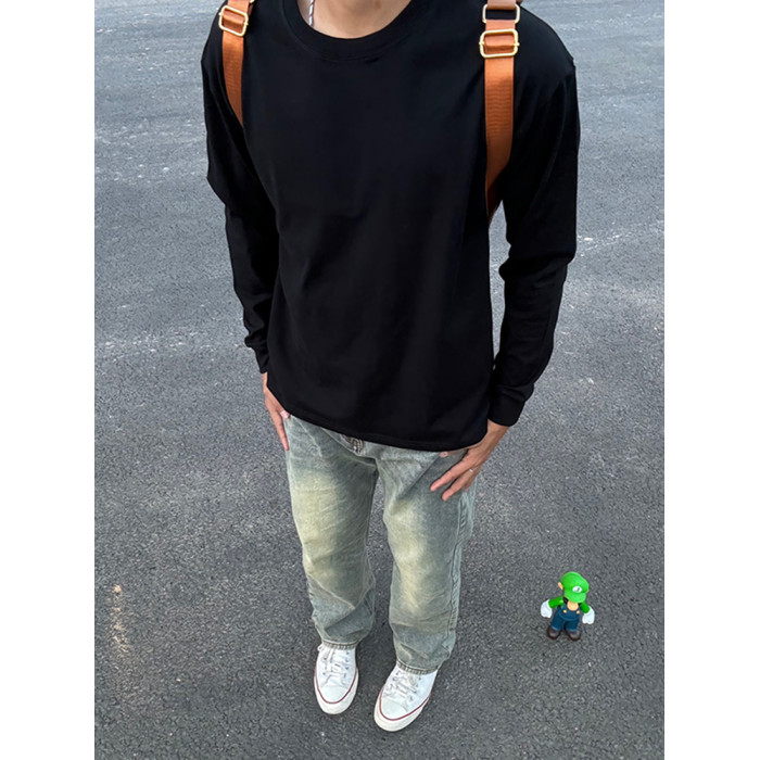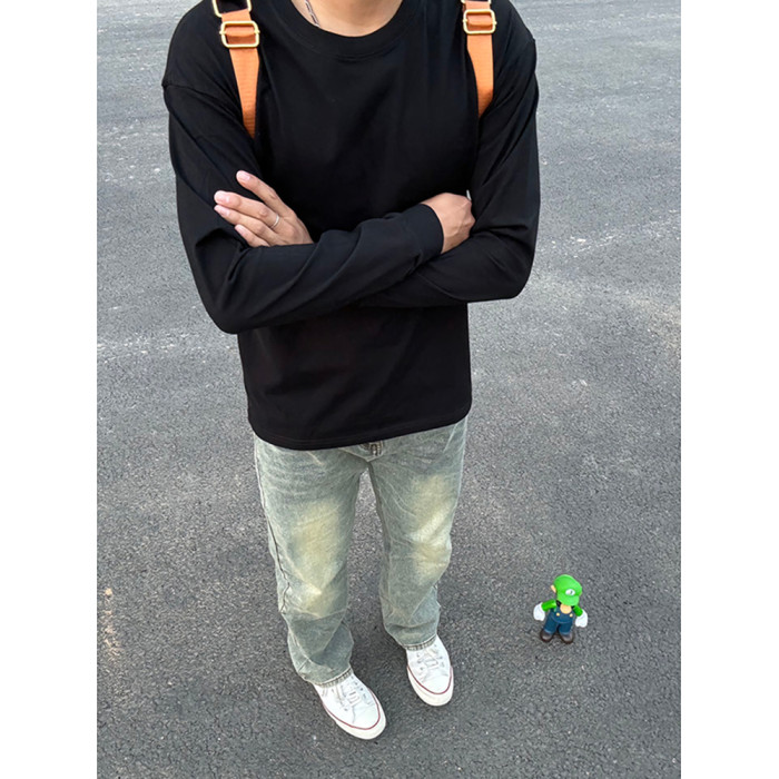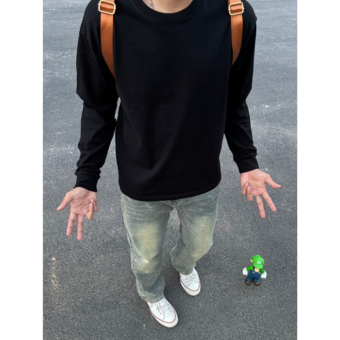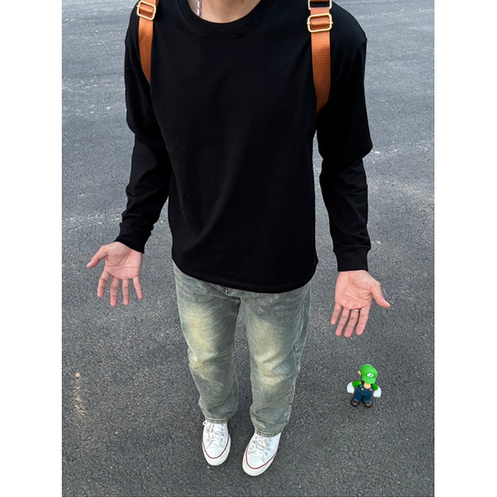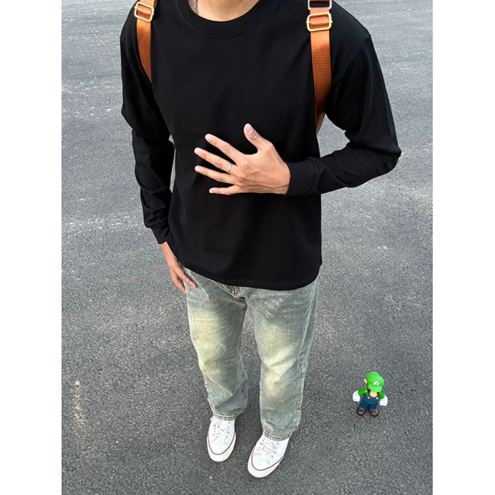 純黑色小領口圓領衛衣男款秋冬痞帥高級感長袖t恤美式內搭打底衫