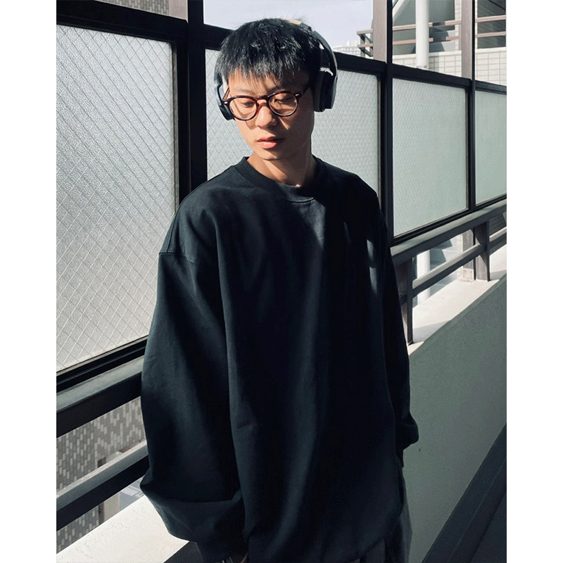 歐美式ins潮牌重磅無帽圓領衛衣男春秋純色簡約寬松情侶百搭上衣
