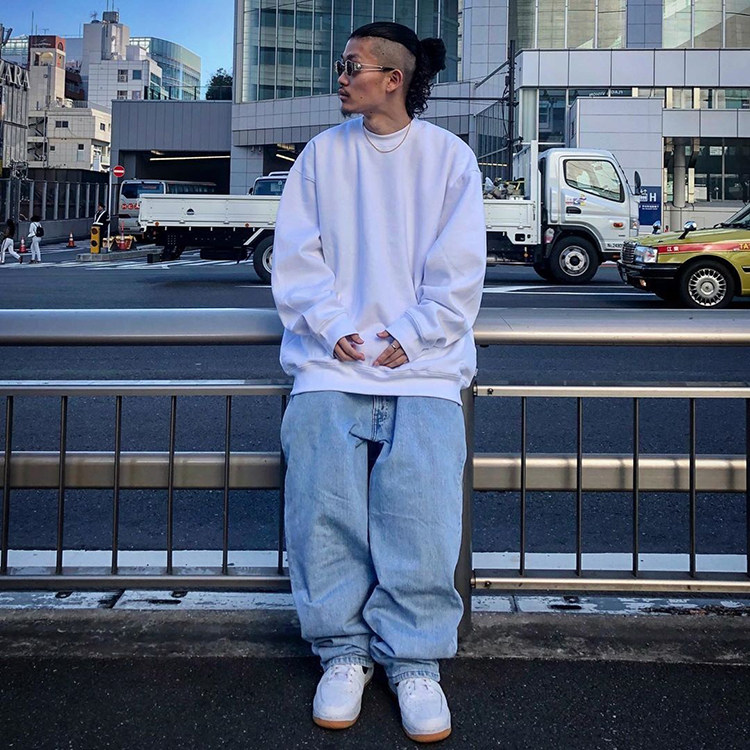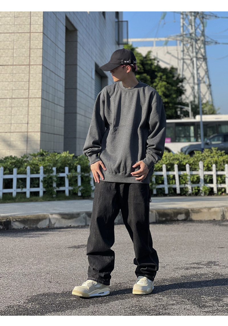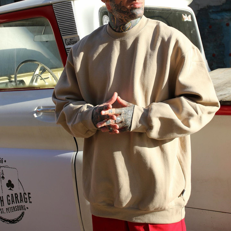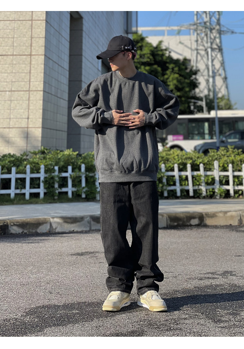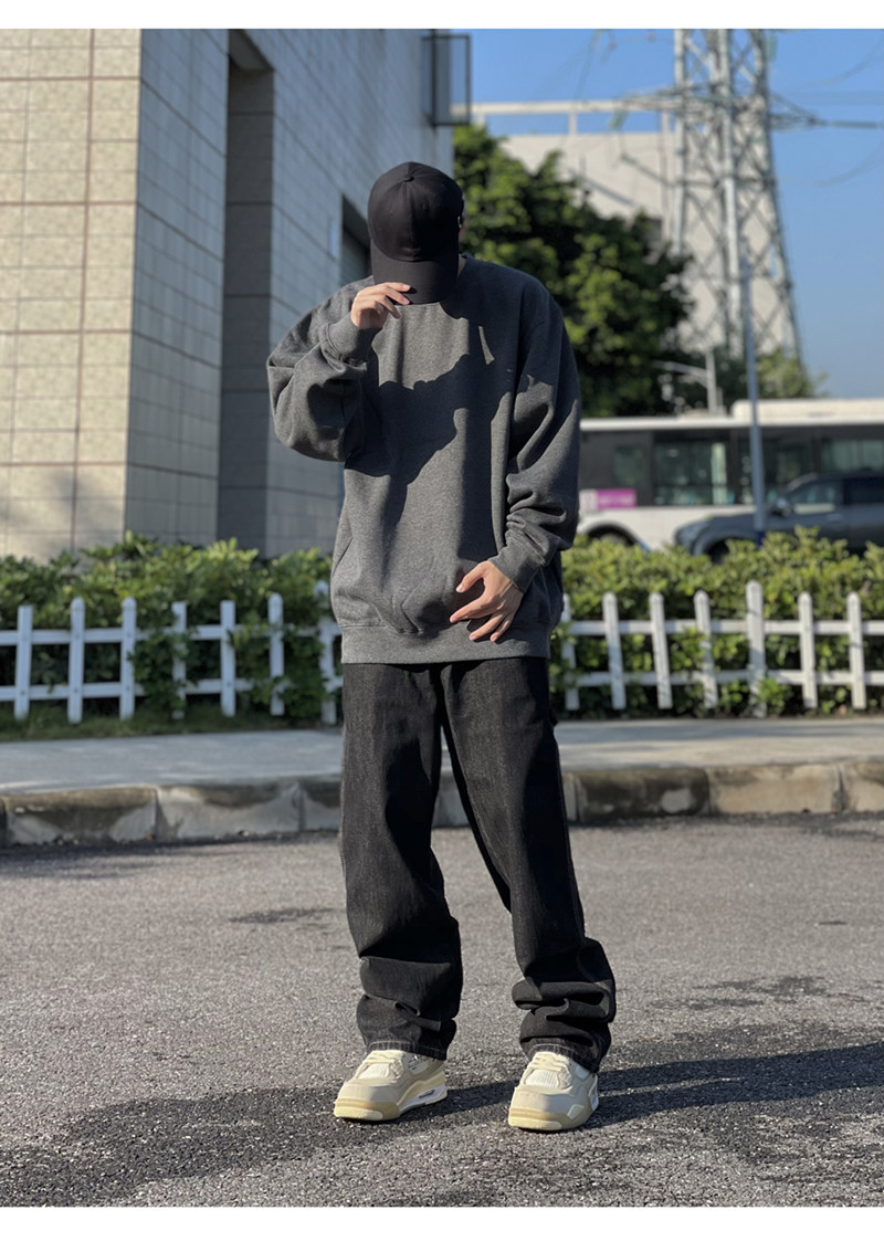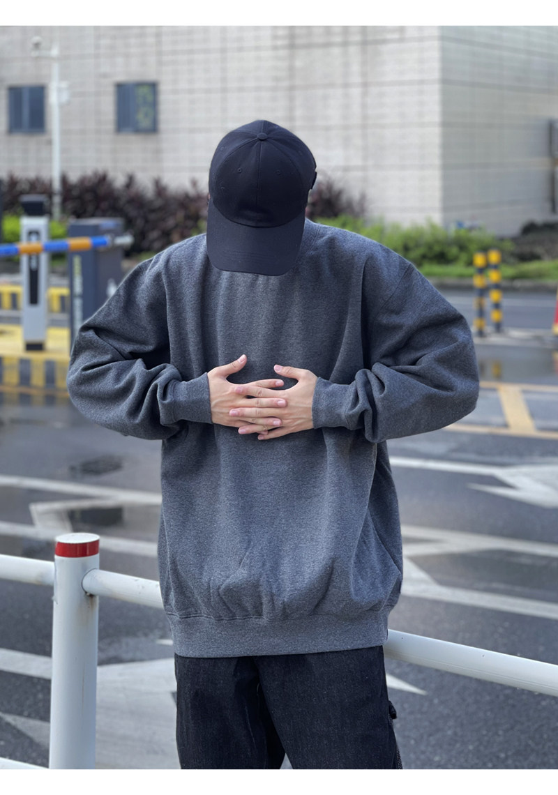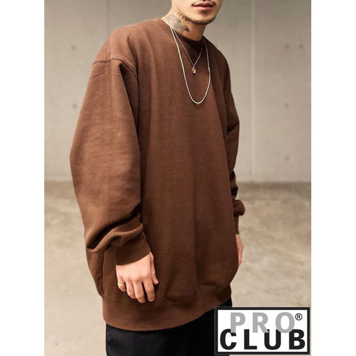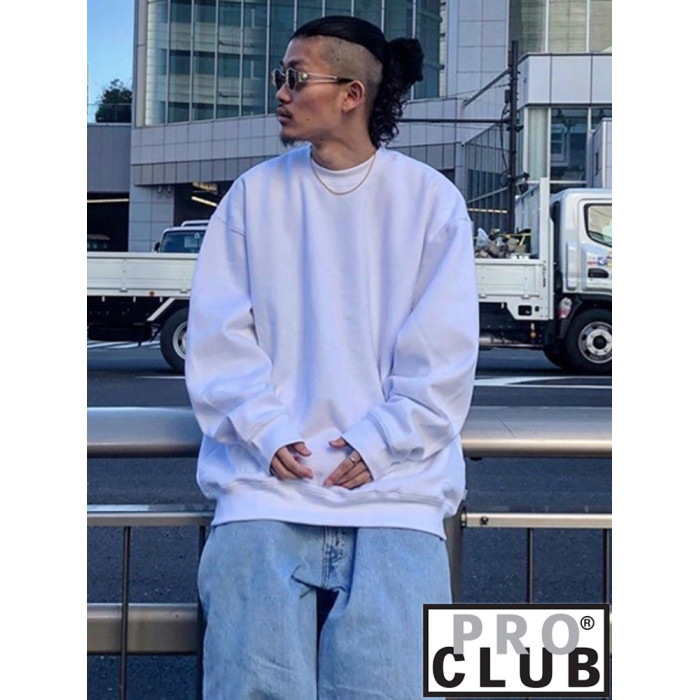 美國PROCLUB嘻哈寬鬆大碼oversize重磅圓領長袖冬季加絨衛衣男女