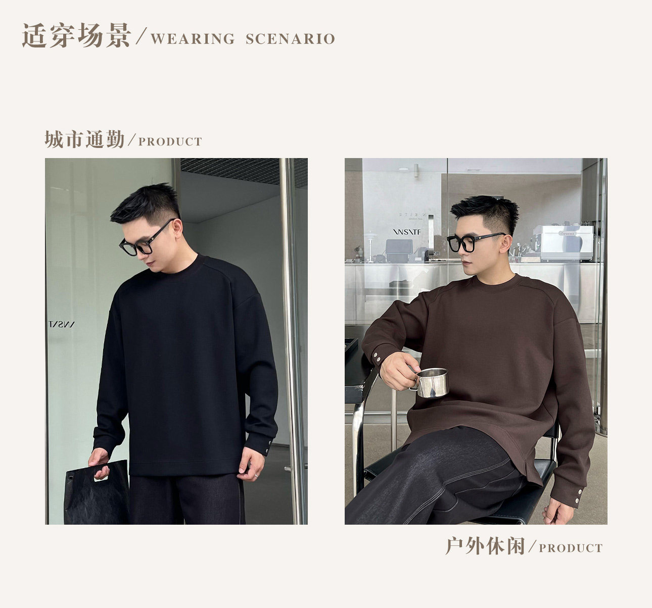 二十二號穿搭【流星雙面空氣棉】設計款衛衣開叉高級感長袖T恤男